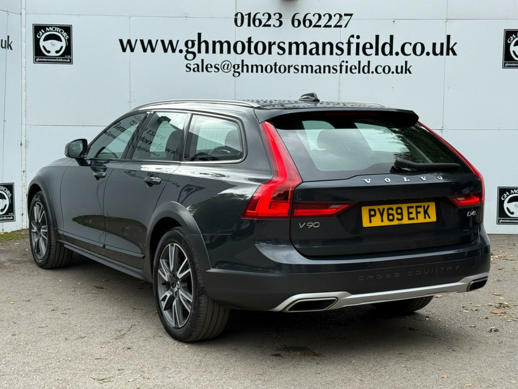 12 MONTHS WARRANTY £299,This 2020 Volvo V90 Cross Country D4 Plus offers a refined driving experience with its robust 2.0L diesel engine and Four Wheel Drive system, ensuring capable performance in various conditions. As a Euro 6 compliant vehicle, it meets stringent emission standards. This model boasts a generous boot space, perfect for accommodating luggage, shopping, or outdoor equipment. The Plus trim level enhances comfort and convenience with features like 2 Zone Electronic Climate Control, which includes a CleanZone Air Quality System with a pollen filter, and Intellisafe Assist, incorporating Pilot Assist and Adaptive Cruise Control for a more relaxed journey.Further enhancing its appeal, the V90 Cross Country features a Power Driver Seat with multi directional lumbar support and memory settings for both the seat and exterior mirrors, allowing for personalised comfort. Parking is made simple with Front and Rear Park Assist, complemented by a Rear Park Assist Camera. With an acceleration of 0-60mph in just 8.5 seconds, this Volvo demonstrates a responsive performance that sets it apart. Additionally, its impressive towing weight of 2400 kg makes it a practical choice for those needing to tow trailers or caravans.. 12.3in Active TFT Crystal Drivers Information Display, 12v Socket - Front and Rear Tunnel Console and Cargo Area, 19in Alloy Wheels - 6 Double Spoke - Diamond Cut-Matt Black, 2-Zone Electronic Climate Control with CleanZone Air Quality System with Pollen Filter, 3 Spoke Leather Steering Wheel and Illuminated Gear Knob with Chrome Trim, 9in Centre Console Portrait Touch Screen, A-Pillar Parking Ticket Holder, Active Bending Headlights with Adaptive Shadow Technology, Active Bonnet, Adaptive Brake Lights including High Level LED Brake Light, Adjustable Steering Force, Ambient Door and Instrument Panel Lighting, Anti-Theft Alarm including Immobiliser - Volume Sensor and Level Sensor, Auto Dimming Interior and Exterior Mirrors, Automatic Headlight Levelling System, Automatic LED Headlights with Active High Beam incorporating Day Running Lights, Automatic Load Cover, B-Pillar Ventilation, Black Walnut Inlays, Bluetooth Handsfree System, Bright Metal Luggage Compartment Threshold, Cargo Divider with Grocery Bag Holder, Centre Console Cupholders and Storage, Charcoal Lower Grille, Charcoal Lower Side Door Mouldings, Charcoal Lower Sill Mouldings, Charcoal Wheel Extensions, City Safety, Colour Co-Ordinated Autofolding Heated Power Door Mirrors, Colour Co-Ordinated Nappa Leather Key Integrated Remote, Cross Country Embossed Rear Bumper, DAB - Digital Audio Broadcasting Radio, Drive Mode Settings, Driver Knee Airbag, Drivers Side Lower Dashboard Storage Compartment, Dual Integrated Exhaust Pipes, Dual Stage Driver and Passenger Airbags, Dynamic Chassis, Enlarged Door Mirrors, First Aid Kit, Floor Mats, Front Footwell and Side Step Illumination, Front LED Fog Lights with Cornering Function, Front Seat Cushion Extensions, Front Tunnel Net Pocket, Front and Rear Aluminium Tread Plates, Front and Rear Door Pocket and Front Cupholder Illumination, Front and Rear Park Assist, Front and Rear Power Windows, Front and Rear Reading Lights - Theatre Lighting and Centre Armrest Storage Illumination, Handsfree Tailgate Opening-Closing, Head-Up Display in Windscreen, Headlight Cleaning System, Heated Front Seats, Height and Reach Adjustable Steering Column, High Gloss Black Front Grille with Chrome Inserts, High Gloss Black Window Trim Surround, Hill Descent Control, Hill Start Assist, Home Safe and Approach Lighting, IC - Inflatable Curtains - Full Length, ISOFIX Attachment - Outer Rear Seats, Illuminated Front and Rear Tread Plates, Illuminated Vanity Mirrors with Ticket Holder, Integrated Sun Curtains - Rear Doors, Intellisafe Assist - Pilot Assist and Adaptive Cruise Control, Key Integrated Remote Control Central Locking including Fuel Flap with Deadlocking System and Auto Open-Close Power Windows, Keyless Drive with Remote Tag, Lane Keeping Aid with Driver Alert Control, Load Protection Net, Lockable Glovebox Compartment with Illumination, Locking Wheel Nuts, Luggage Compartment Illumination, Mechanical Child Locks - Rear Doors, Multicolour Theatre Lighting, Oncoming Lane Mitigation, P-SIM Card - Access to 1 Year - 100GB of Data, Passenger Airbag Cut-Off Switch, Passenger Seat with Power Height Adjustment and Multi-Directional Lumbar Support, Power Driver Seat with Multi-Directional Lumbar Support and Memory for Seat and Exterior Mirrors, Power Folding Rear Headrests, Power Operated Tailgate, Power Parking Brake with Auto Hold Function, Private Locking for Tailgate, Puddle Lights, Rain Sensor - Automatic Windscreen Wiper Activation, Rear Armrest with Storage and Cupholders, Rear Footwell and Side Step Illumination, Rear Park Assist Camera, Road Sign Information Display, Roof Antenna, Roof Rails - Integrated Silver, Roof Spoiler, Run-Off Road Mitigation, Run-Off Road Protection, SIPS - Side Impact Protection System, SIPS Airbags - Front Seats, Seatbelt Reminder and Pretensioners - All Seats, Sensus Connect with High Performance Sound, Sensus Navigation, Ski Hatch in Rear Seat Backrest, Skid Plates - Front and Rear - Silver, Slippery Road and Haza.