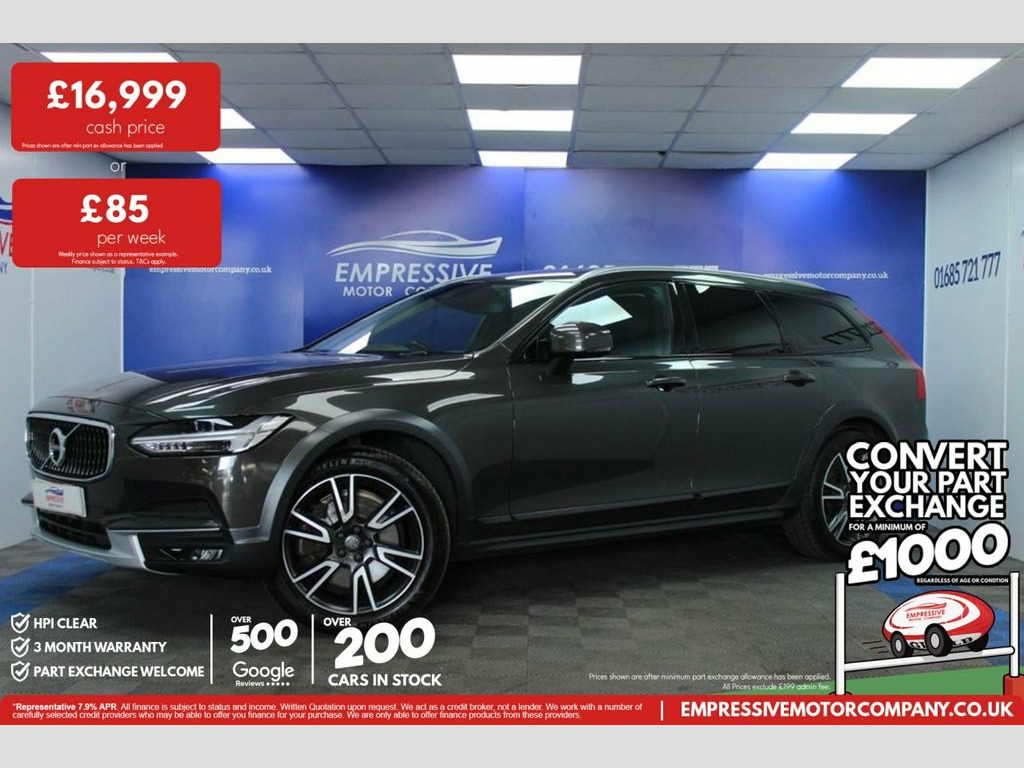 ****VIVACIOUS V90**** Just in! This Stunning 2018 VOLVO V90 Cross Country 2.0 D4 Pro Estate 5dr Diesel Auto AWD Euro 6 (s/s) (190 ps) Finished In Grey! 103,339 miles 2.0L diesel Automatic 4 wheel drive Up to 60 mpg Virtual cockpit Auto led headlights Cornering lights Active bending headlights Powered tailgate Heated windscreen Heated steering wheel Front electric heated seats with driver memory Touch media screen with sat nav Bluetooth connectivity USB Auto climate control Eco mode Off-road mode Sport mode Electric handbrake Parking sensors Road sign information with speed sign assist Cruise control Folding wing mirrors 12.3in Active TFT Crystal Drivers Inform, 12v Socket - Front and Rear Tunnel Conso, 19in Alloy Wheels - 6 Double Spoke - Dia, 2-Zone Electronic Climate Control with C, 3 Spoke Leather Steering Wheel and Illum, 9in Centre Console Portrait Touch Screen, A-Pillar Parking Ticket Holder, Active Bending Headlights with Adaptive , Active Bonnet, Adaptive Brake Lights including High Lev, Adaptive Cruise Control, Adjustable Steering Force, Ambient Door and Instrument Panel Lighti, Anti-Theft Alarm including Immobiliser -, Auto Dimming Rear View Mirror, Automatic Headlight Levelling System, Automatic Load Cover, B-Pillar Ventilation, Black Walnut Trim, Bluetooth Handsfree System, Bright Metal Luggage