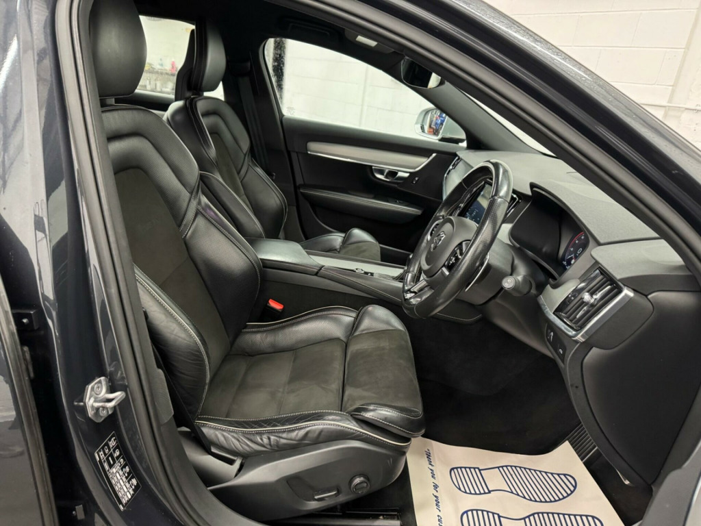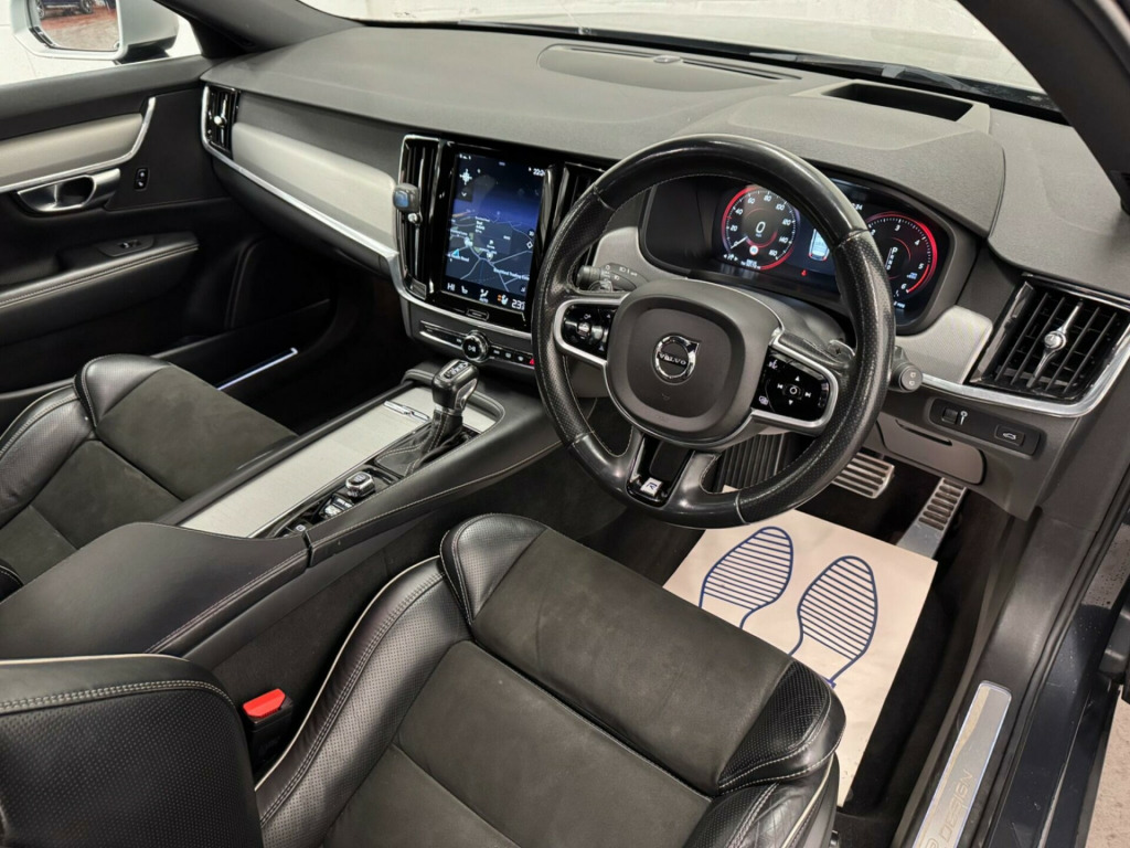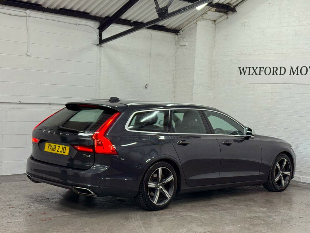 This 2018 Volvo V90 D4 R-Design is presented with a full volvo dealership service history having only had two previous owners. Supplied with two keys, a super specification including heads up display, apple car play, heated steering wheel, heated seats, auto led headlights, power tailgate, parking sensors front and rear, pilot assist, adaptive cruise control and much more.This car also comes with a clear vehicle history check, offering peace of mind for its next owner. This stylish estate car is powered by an efficient 2.0L Euro 6 diesel engine, delivering a smooth and responsive driving experience. Inside, you'll find a host of convenient features designed to enhance your journey, including Smartphone Integration with Apple CarPlay and Android Auto, allowing seamless connection to your digital life. The 2-Zone Electronic Climate Control with CleanZone Air Quality System ensures a comfortable cabin environment for all occupants, while Adaptive Cruise Control takes the strain out of longer journeys. For added convenience, Bluetooth Handsfree System and Rear Park Assist are also included.The Volvo V90 R-Design excels with its generous boot space, making it an ideal choice for families or those who require ample storage. Its performance is equally impressive, with an acceleration of 0-60mph in just 8.2 seconds, demonstrating a capable and engaging drive. These highlights, combined with its sophisticated R-Design trim, position this V90 as a superior option within its class, offering a blend of practicality, comfort, and performance. nter pack with head-up display, winter pack, smartphone integration includes apple carplay and android auto with 2 x usb, nappa-nubuck leather contour sports - charcoal, 12.3in active tft crystal drivers information display, 12v socket - front and rear tunnel console and cargo area, 18in alloy wheels - 5 spoke diamond cut matt black, 2-zone electronic climate control with cleanzone air quality system with pollen filter, 9in centre console portrait touch screen, a-pillar parking ticket holder, active bonnet, adaptive brake lights including high level led brake light, adaptive cruise control, adjustable steering force, ambient door and instrument panel lighting, anti-theft alarm including immobiliser - volume sensor and level sensor, auto dimming rear view mirror, automatic headlight levelling system, automatic load cover, b-pillar ventilation, black headlining, bluetooth handsfree system, bright metal luggage compartment threshold, cargo divider with grocery bag holder, centre console cupholders and storage, city safety with steer assist, colour co-ordinated autofolding heated power door mirrors, dab - digital audio broadcasting radio, drive mode settings, driver knee airbag, drivers side lower dashboard storage compartment, dual integrated exhaust pipes with high gloss black surround, dual stage driver and passenger airbags, first aid kit, front footwell and side step illumination, front led fog lights with cornering function, front seat cushion extensions, front tunnel net pocket, front and rear aluminium tread plates, front and rear door pocket and front cupholder illumination, front and rear power windows, front and rear reading lights - theatre lighting and centre armrest storage illumination, heated front seats, height and reach adjustable steering column, high gloss black deco lower front bumper, high gloss black mesh front grille with silk metal surround, hill start assist, home safe and approach lighting, ic - inflatable curtains - full length, isofix attachment - outer rear seats, illuminated front and rear tread plates, illuminated vanity mirrors with ticket holder, key integrated remote control central locking including fuel flap with deadlocking system and auto open-close power windows, keyless start, led headlights with active high beam incorporating day running lights, lane keeping aid with driver alert control, lockable glovebox compartment with illumination, locking wheel nuts, lowered sports chassis, luggage compartment illumination, mechanical child locks - rear doors, metal mesh inlays, multicolour theatre lighting, oncoming lane mitigation, passenger airbag cut-off switch, perforated leather gear knob, perforated leather key integrated remote, perforated leather steering wheel with gear shift paddles, pilot assist - up to 80mph, power folding rear seat backrest and headrests, power height adjustable driver and passenger seats with multi-directional lumbar support, power operated tailgate, power parking brake with auto hold function, private locking for tailgate, rain sensor - automatic windscreen wiper activation, rear armrest with storage and cupholders, rear footwell and side step illumination, rear park assist, road sign information display, roof antenna, roof rails - integrated silver, roof spoiler, run-off road mitigation, run-off road protection, sips - side impact protection system, sips airbags - front seats, seatbelt reminder and pretensioners - all seats, sensus connect with high performance sound, sensus navigation, silver matt door mirrors and window surrounds, ski hatch in rear seat backrest, speed limiter, speed sensitive steering, sports floor mats, sports pedals, stability and traction control, steering wheel remote infotainment controls, tailgate illumination, tempa spare wheel and jack, tyre pressure monitoring system, underfloor cargo storage, vehicle deceleration control, versatile split folding rear seats - 60-40, visible vin plate, voice activated control for key functions, whips - whiplash protection system - front seats, warning triangle