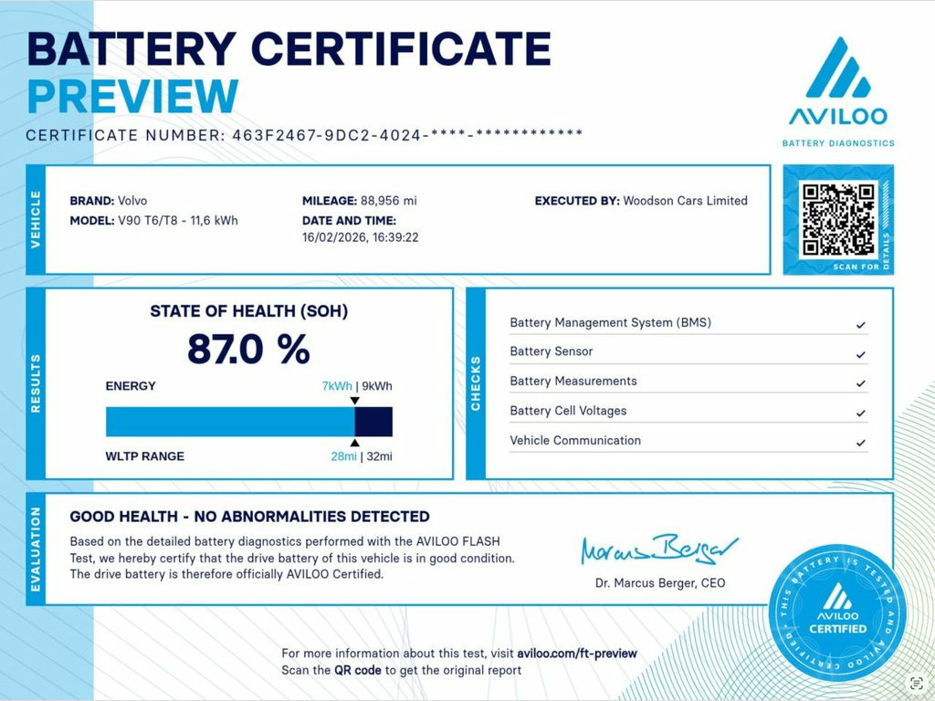 Finance Soft Search Pre Approval. This Volvo V90 2.0h T6 Recharge 11.6kWh Inscription Estate Petrol Plug in Hybrid Auto AWD Euro 6 (340bhp) has covered 88000 miles in metallic bronze with brown heated/cooling leather interior. 1 owner from new, sat nav, reverse camera, bluetooth, isofix, DAB radio, xenon lights, electric boot, parking sensors + much more. *MAIN DEALER PART EXCHANGE* Warranty Included (upgrades are available). Any inspection/test drive always welcome. More than 40 photos are available + Video Walk Around available upon Request. Credit/Debit card payment welcome + Approved finance partner with consumer credit licence held + Part exchange welcome + Private plate transfers, delivery service all available on request + Call 7 days a week to discuss and book an appointment 12.3in Active TFT Crystal Drivers Inform, 12V Socket - Front Tunnel Console and Ca, 19in Alloy Wheels - 10 Spoke - Diamond C, 2-Zone Electronic Climate Control with C, 3 Spoke Leather Steering Wheel and Illum, 7m Charge Cable with 3 Pin Plug, 9in Centre Console Portrait Touch Screen, Active Bending Headlights with Adaptive , Active Bonnet, Adaptive Brake Lights including High Lev, Adjustable Steering Force, Ambient Door and Instrument Panel Lighti, Anti-Theft Alarm including Immobiliser -, Auto Dimming Interior and Exterior Mirro, Automatic Headlight Levelling System, Automatic LED Headlights with Active Hig, Auxiliary Fuel-Fired Heater with Pre-Con, B-Pillar Ventilation, Bluetooth Handsfree