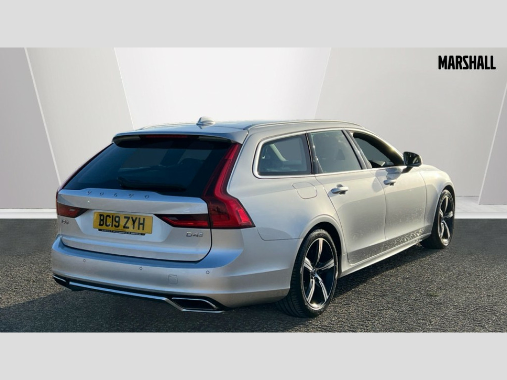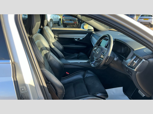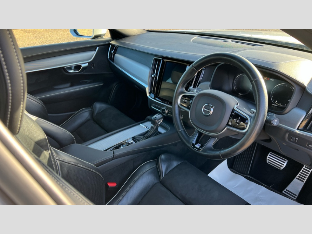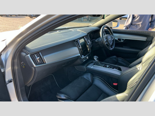Volvo V90 2.0 D4 R DESIGN 5dr Geartronic 12.3" Active TFT crystal driver's instrument display, 9" centre console touch screen, Adaptive cruise control with pilot assist, Adjustable steering wheel force, Bluetooth Handsfree Phone Connection, Drive mode selector, Lane keep assist with driver alert control, Oncoming Lane Mitigation, Road Edge Detection, Sensus navigation with European mapping and traffic information, Service interval indicator, Speed limiter, Speed sensitive steering, Touch screen display, Trip computer, Voice activated control for key functions, Volvo on call, 8 speed automatic transmission with start/stop + manual change functions, DAB Radio (Digital Audio Broadcasting), Steering wheel mounted audio controls, Adaptive brake lights, Auto dimming exterior mirrors, Auto dimming interior mirror, Automatic headlamp levelling, Body coloured bumpers, Dual integrated exhaust pipes with high gloss black surround, Electric adjustable/heated/folding door mirrors, Front and rear electric windows, High gloss black lower front bumper, High gloss black mesh front grille with silk metal surround, High level LED brake light, Home safe and approach lighting, Illuminated side steps, LED front fog lights with static cornering light function, LED Headlights + Active high beam incorporating daytime running lights, Matt silver finish door mirrors, Rain sensor windscreen wipers, Roof antenna, Roof spoiler, Silver matt window frame surround, Silver roof rails, Visible VIN plate, 12V socket in front tunnel console, 60/40 split folding rear seat, A-pillar parking ticket holder, Ambient door and instrument panel lighting, B Pillar ventilation, Black headlining, Bright metal luggage threshold, Centre armrest storage illumination, Centre console cupholder, Centre console storage, Drivers side dashboard storage, Extended front seat cushions, Front and rear aluminium tread plates, Front and rear door pockets, Front footwell and side step illumination, Front headrests, Front tunnel storage net, Front/rear reading lights, Gearshift paddles, Grocery bag holder-luggage area, Heated front seats, Height/reach adjustable steering column, Illuminated front and rear tread plates, Illuminated front cupholder, Illuminated glovebox with lock, Illuminated luggage compartment, Illuminated tailgate, Illuminated vanity mirrors + ticket holder, Isofix system on outer rear seats, Load cover, Multi directional lumbar support, Multicolour theatre lights, Perforated leather gearknob, Perforated Leather Key Integrated Remote, Perforated leather steering wheel, Pollen filter, Power Folding Rear Seat Backrests and Headrests, Rear armrest with storage + cupholders, Rear footwell and side step illumination, Ski hatch, Sport pedals, Sports floor mats, Underfloor cargo storage, 3x3 point rear seatbelts, Active bonnet, City safety with steering support with Pedestrian + cyclist + large animal detection + front collision warning with full auto brake, Drivers knee airbag, Dual stage driver/passenger airbags, Electronic parking brake with auto hold, Fasten seatbelt reminder, Front and rear curtain airbags, Front seats SIPS airbags, Hill start assist, IC (Inflatable Curtains) - Full Length, Passenger airbag cut-off device, Road sign information display, Run off Road Mitigation, Run off Road Protection, Seatbelt pre-tensioners, SIPS (Side Impact Protection System), Stability and Traction Control with Spin control, Engine Drag Control and Corner Traction Control, Tyre pressure monitoring system, Vehicle deceleration control with Anti-lock Brake System, Electronic Brake Distribution and Emergency Brake Assist, Warning triangle and first aid kit, WHIPS whiplash protection system - front, Anti-theft alarm including immobiliser/volume sensor + level sensor, Key integrated remote control central locking + fuel flap with deadlocking system and auto open/close power windows, Locking wheel nuts, Private locking for tailgate, Tailored Instrument Panel and Door Tops with Contrast Stitching, Tempa spare wheel and jack