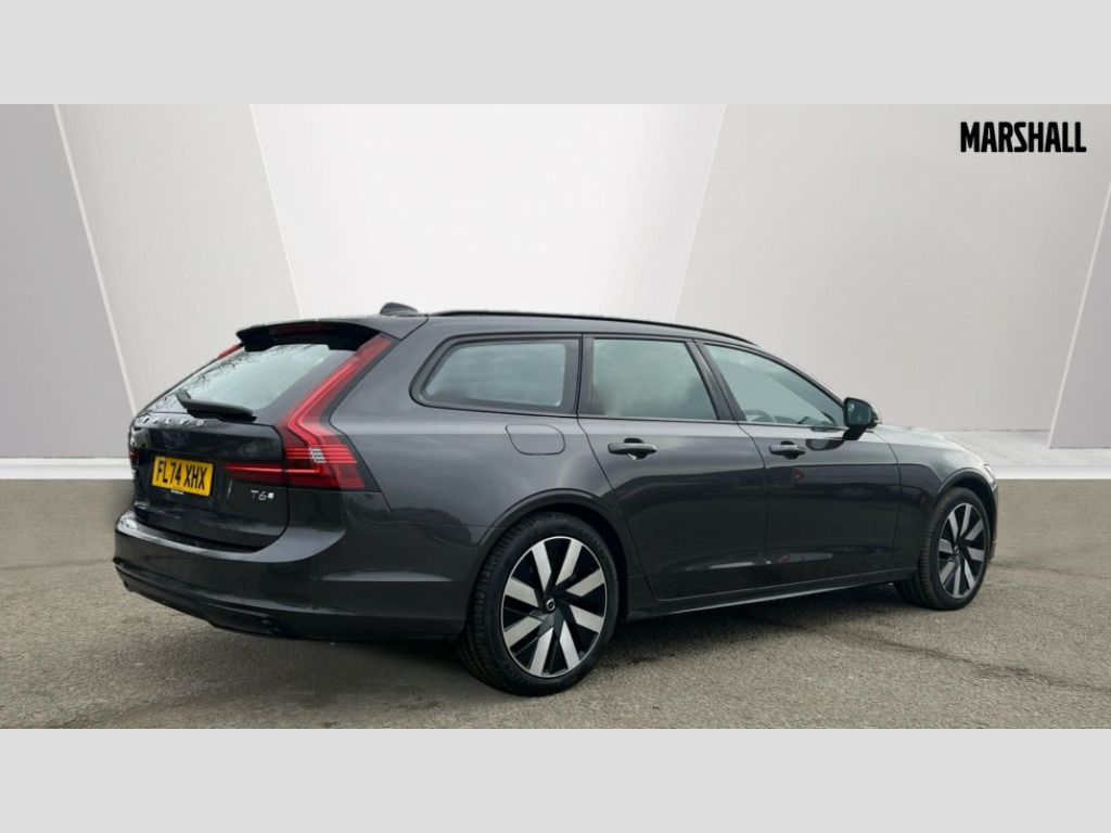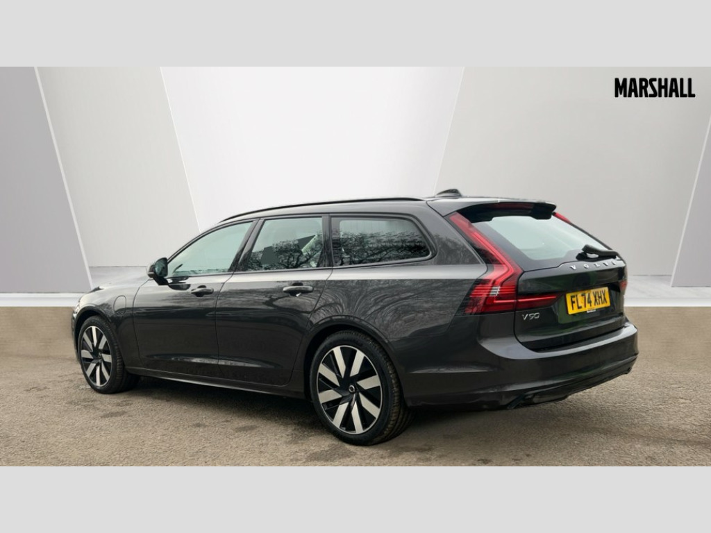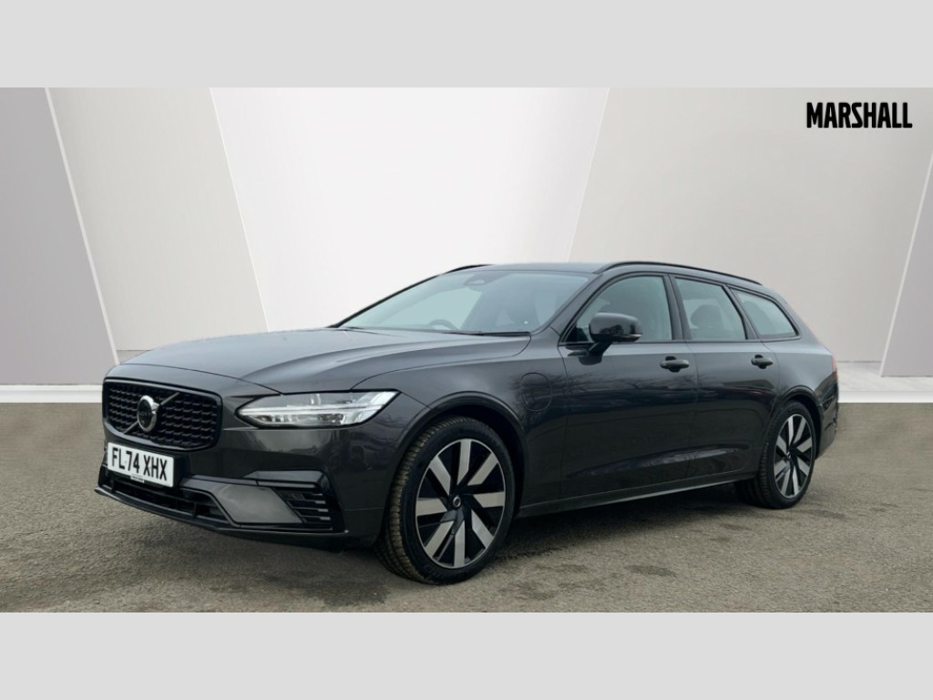 Volvo V90 2.0 T6 [350] PHEV Plus Dark 5dr AWD Auto 12.3" Progressive Driver Display, 360 degree surround view parking camera with side proximity sensors, 9" centre console touch screen, Adjustable steering wheel force, Apple carplay (wired), Bluetooth handsfree system, Drive mode settings, Driver alert control with lane keeping aid, Driver assistance (pilot assist and adaptive cruise control), Driver awareness - Blind spot system + steer assist, cross traffic alert with autobrake, rear collision warning and mitigation, E-call, Emergency assist, Front and rear park assist, Google automotive services - Enabled entertainment apps, navigation with google maps, voice recognition with google assistant, Handsfree bootlid opening/closing, Intelligent speed assistance, Oncoming Lane Mitigation, Power operated tailgate/boot lid, Speed sensitive steering, Volvo on call app, 3.7 kW monophase on board charger, 6m 3 phase 16amp Type 2 / mode 3 charge cable, 7m 10amp charge cable with 3 pin plug, 8 speed automatic transmission with start/stop + manual change functions, Dynamic chassis, Electric rear axle drive, Lithium-Ion Battery 18.8kWh, On board charger - 6.4 kW 2 phase/3.7kW single phase, Recharging port located in nearside front wing, DAB Radio (Digital Audio Broadcasting), Low speed exterior sound speaker, Premium Sound by Harman Kardon, dirac unison, dolby pro logic II surround sound, 13 speakers/600W output and fresh air subwoofer, Steering wheel remote infotainment controls, Adaptive brake lights with high level LED brake lights, Auto dimming interior + exterior mirrors, Automatic headlight levelling system, Automatic LED Headlights + Active high beam incorporating daytime running lights, Chrome window surround, Colour coordinated auto folding and heated power door mirrors, Front and rear power windows, Heated windscreen, High gloss black door mirrors and window surround, High gloss black front and rear bumper decoratives, High gloss black mesh front grille and surround, Home safe and approach lighting, Integrated roof rails in high gloss black, Puddle lights, Rain sensor with automatic windscreen wiper activation, Rear LED lights with sequential indicators, Rear side wing doors, Rear wiper, Roof antenna, Roof spoiler, Variable front intermittent wipers, Visible VIN plate, 2 zone electronic climate control with Clean zone air quality system + pollen filter, 3 seat bench in 2nd row, 3 Spoke tailored steering wheel with chrome trim, A-pillar parking ticket holder, Air purifier particulate matter (PM) 2.5 filter, Ambient door and instrument panel lighting, B Pillar ventilation, Boot lid/tailgate illumination, Bright metal luggage compartment threshold, Cargo divider with grocery bag holder, Centre console cupholder and storage, Charcoal carpets and floor mats, Driver and front passenger seat power height adjustment, Extended front seat cushions, Front 12V socket tunnel console and cargo area, Front and rear cabin courtesy light, Front and rear footwell and side step illumination, Front and rear reading lights and centre armrest Storage Illumination, Front headrests, Front/rear door pockets and front cupholder illumination, Glovebox compartment with illumination, Heated front seats, Heated rear seats outer positions, Heated steering wheel, Height/reach adjustable steering column, Illuminated luggage compartment, Illuminated recharge aluminium tread plates, Illuminated vanity mirrors + ticket holder, Inner door release handle illumination, Integrated sun curtains in rear doors, ISOFIX attachment on outer rear seats, Leather upholstery, Load cover, Load protection net, Luggage compartment load hooks, Multi directional lumbar support, Power driver seat with memory for seat and exterior mirrors, Power folding rear headrests, Rear armrest with cupholder, Single front passenger seat, Underfloor cargo storage, Versatile split folding rear seat - 60/40, 3x3 point rear seatbelts, Active bonnet, City safety with steering support with Pedestrian + cyclist + front collision warning with full auto brake and rear auto brake, Drivers knee airbag, Dual stage driver/passenger airbags, Front seats SIPS airbags, Hill start assist, IC (Inflatable Curtains) - Full Length, Passenger airbag cut-off switch, Power child locks on rear doors, Power parking brake with auto hold function, Road sign information display, Run off Road Mitigation, Run off Road Protection, Seatbelt reminder and pretensioners for all seats, SIPS (Side Impact Protection System), Slippery road and hazard light alert, Stability and Traction Control with Spin control, Engine Drag Control and Corner Traction Control, Tyre pressure monitoring system, Vehicle deceleration control with Anti-lock Brake System, Electronic Brake Distribution and Emergency Brake Assist, Warning triangle and first aid kit, WHIPS whiplash protection system - front, 2x Key integrated remote control central locking + fuel flap with deadlocking system and auto open/close power windows, Anti-theft alarm including immobiliser/volume sensor + level sensor, Care key with user defined top speed, Keyless drive includes keyless entry and keyless start, Locking wheel nuts, Private locking for tailgate, Tailored Instrument Panel and Door Tops with Contrast Stitching, 19'' 8 spoke diamond cut black alloy wheels, Tyre sealant kit and compressor