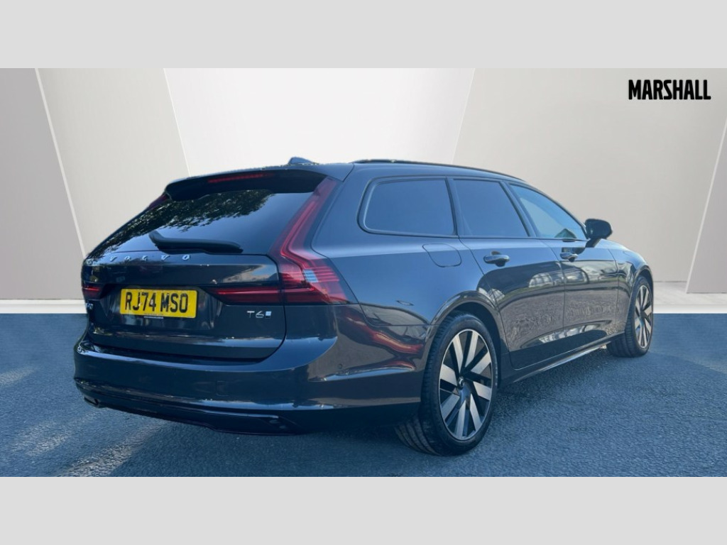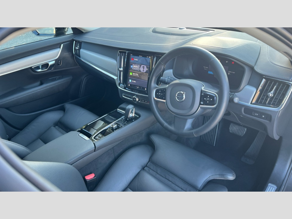 Volvo V90 2.0 T6 [350] PHEV Plus Dark 5dr AWD Auto 12.3" Progressive Driver Display, 360 degree surround view parking camera with side proximity sensors, 9" centre console touch screen, Adjustable steering wheel force, Apple carplay (wired), Bluetooth handsfree system, Drive mode settings, Driver alert control with lane keeping aid, Driver assistance (pilot assist and adaptive cruise control), Driver awareness - Blind spot system + steer assist, cross traffic alert with autobrake, rear collision warning and mitigation, E-call, Emergency assist, Front and rear park assist, Google automotive services - Enabled entertainment apps, navigation with google maps, voice recognition with google assistant, Handsfree bootlid opening/closing, Intelligent speed assistance, Oncoming Lane Mitigation, Power operated tailgate/boot lid, Speed sensitive steering, Volvo on call app, 3.7 kW monophase on board charger, 6m 3 phase 16amp Type 2 / mode 3 charge cable, 7m 10amp charge cable with 3 pin plug, 8 speed automatic transmission with start/stop + manual change functions, Dynamic chassis, Electric rear axle drive, Lithium-Ion Battery 18.8kWh, On board charger - 6.4 kW 2 phase/3.7kW single phase, Recharging port located in nearside front wing, DAB Radio (Digital Audio Broadcasting), Low speed exterior sound speaker, Premium Sound by Harman Kardon, dirac unison, dolby pro logic II surround sound, 13 speakers/600W output and fresh air subwoofer, Steering wheel remote infotainment controls, Adaptive brake lights with high level LED brake lights, Auto dimming interior + exterior mirrors, Automatic headlight levelling system, Automatic LED Headlights + Active high beam incorporating daytime running lights, Chrome window surround, Colour coordinated auto folding and heated power door mirrors, Front and rear power windows, Heated windscreen, High gloss black door mirrors and window surround, High gloss black front and rear bumper decoratives, High gloss black mesh front grille and surround, Home safe and approach lighting, Integrated roof rails in high gloss black, Puddle lights, Rain sensor with automatic windscreen wiper activation, Rear LED lights with sequential indicators, Rear side wing doors, Rear wiper, Roof antenna, Roof spoiler, Variable front intermittent wipers, Visible VIN plate, 2 zone electronic climate control with Clean zone air quality system + pollen filter, 3 seat bench in 2nd row, 3 Spoke tailored steering wheel with chrome trim, Air purifier particulate matter (PM) 2.5 filter, Ambient door and instrument panel lighting, B Pillar ventilation, Boot lid/tailgate illumination, Bright metal luggage compartment threshold, Cargo divider with grocery bag holder, Centre console cupholder and storage, Charcoal carpets and floor mats, Driver and front passenger seat power height adjustment, Extended front seat cushions, Front 12V socket tunnel console and cargo area, Front and rear cabin courtesy light, Front and rear footwell and side step illumination, Front and rear reading lights and centre armrest Storage Illumination, Front headrests, Front/rear door pockets and front cupholder illumination, Glovebox compartment with illumination, Heated front seats, Heated rear seats outer positions, Heated steering wheel, Height/reach adjustable steering column, Illuminated luggage compartment, Illuminated recharge aluminium tread plates, Illuminated vanity mirrors + ticket holder, Inner door release handle illumination, Integrated sun curtains in rear doors, ISOFIX attachment on outer rear seats, Leather upholstery, Load cover, Load protection net, Luggage compartment load hooks, Multi directional lumbar support, Power driver seat with memory for seat and exterior mirrors, Power folding rear headrests, Rear armrest with cupholder, Single front passenger seat, Underfloor cargo storage, Versatile split folding rear seat - 60/40, 3x3 point rear seatbelts, Active bonnet, City safety with steering support with Pedestrian + cyclist + front collision warning with full auto brake and rear auto brake, Drivers knee airbag, Dual stage driver/passenger airbags, Front seats SIPS airbags, Hill start assist, IC (Inflatable Curtains) - Full Length, Passenger airbag cut-off switch, Power child locks on rear doors, Power parking brake with auto hold function, Road sign information display, Run off Road Mitigation, Run off Road Protection, Seatbelt reminder and pretensioners for all seats, SIPS (Side Impact Protection System), Slippery road and hazard light alert, Stability and Traction Control with Spin control, Engine Drag Control and Corner Traction Control, Tyre pressure monitoring system, Vehicle deceleration control with Anti-lock Brake System, Electronic Brake Distribution and Emergency Brake Assist, Warning triangle and first aid kit, WHIPS whiplash protection system - front, 2x Key integrated remote control central locking + fuel flap with deadlocking system and auto open/close power windows, Anti-theft alarm including immobiliser/volume sensor + level sensor, Care key with user defined top speed, Keyless drive includes keyless entry and keyless start, Locking wheel nuts, Private locking for tailgate, Tailored Instrument Panel and Door Tops with Contrast Stitching, 19'' 8 spoke diamond cut black alloy wheels, Tyre sealant kit and compressor