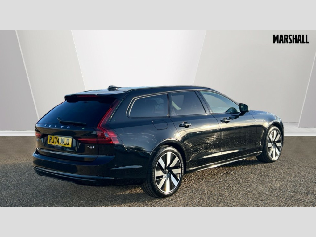 Volvo V90 2.0 T6 [350] PHEV Plus Dark 5dr AWD Auto 12.3" Progressive Driver Display, 360 degree surround view parking camera with side proximity sensors, 9" centre console touch screen, Adjustable steering wheel force, Apple carplay (wired), Bluetooth handsfree system, Drive mode settings, Driver alert control with lane keeping aid, Driver assistance (pilot assist and adaptive cruise control), Driver awareness - Blind spot system + steer assist, cross traffic alert with autobrake, rear collision warning and mitigation, E-call, Emergency assist, Front and rear park assist, Google automotive services - Enabled entertainment apps, navigation with google maps, voice recognition with google assistant, Handsfree bootlid opening/closing, Intelligent speed assistance, Oncoming Lane Mitigation, Power operated tailgate/boot lid, Speed sensitive steering, Volvo on call app, 3.7 kW monophase on board charger, 6m 3 phase 16amp Type 2 / mode 3 charge cable, 7m 10amp charge cable with 3 pin plug, 8 speed automatic transmission with start/stop + manual change functions, Dynamic chassis, Electric rear axle drive, Lithium-Ion Battery 18.8kWh, On board charger - 6.4 kW 2 phase/3.7kW single phase, Recharging port located in nearside front wing, DAB Radio (Digital Audio Broadcasting), Low speed exterior sound speaker, Premium Sound by Harman Kardon, dirac unison, dolby pro logic II surround sound, 13 speakers/600W output and fresh air subwoofer, Steering wheel remote infotainment controls, Adaptive brake lights with high level LED brake lights, Auto dimming interior + exterior mirrors, Automatic headlight levelling system, Automatic LED Headlights + Active high beam incorporating daytime running lights, Chrome window surround, Colour coordinated auto folding and heated power door mirrors, Front and rear power windows, Heated windscreen, High gloss black door mirrors and window surround, High gloss black front and rear bumper decoratives, High gloss black mesh front grille and surround, Home safe and approach lighting, Integrated roof rails in high gloss black, Puddle lights, Rain sensor with automatic windscreen wiper activation, Rear LED lights with sequential indicators, Rear side wing doors, Rear wiper, Roof antenna, Roof spoiler, Variable front intermittent wipers, Visible VIN plate, 2 zone electronic climate control with Clean zone air quality system + pollen filter, 3 seat bench in 2nd row, 3 Spoke tailored steering wheel with chrome trim, Air purifier particulate matter (PM) 2.5 filter, Ambient door and instrument panel lighting, B Pillar ventilation, Boot lid/tailgate illumination, Bright metal luggage compartment threshold, Cargo divider with grocery bag holder, Centre console cupholder and storage, Charcoal carpets and floor mats, Driver and front passenger seat power height adjustment, Extended front seat cushions, Front 12V socket tunnel console and cargo area, Front and rear cabin courtesy light, Front and rear footwell and side step illumination, Front and rear reading lights and centre armrest Storage Illumination, Front headrests, Front/rear door pockets and front cupholder illumination, Glovebox compartment with illumination, Heated front seats, Heated rear seats outer positions, Heated steering wheel, Height/reach adjustable steering column, Illuminated luggage compartment, Illuminated recharge aluminium tread plates, Illuminated vanity mirrors + ticket holder, Inner door release handle illumination, Integrated sun curtains in rear doors, ISOFIX attachment on outer rear seats, Leather upholstery, Load cover, Load protection net, Luggage compartment load hooks, Multi directional lumbar support, Power driver seat with memory for seat and exterior mirrors, Power folding rear headrests, Rear armrest with cupholder, Single front passenger seat, Underfloor cargo storage, Versatile split folding rear seat - 60/40, 3x3 point rear seatbelts, Active bonnet, City safety with steering support with Pedestrian + cyclist + front collision warning with full auto brake and rear auto brake, Drivers knee airbag, Dual stage driver/passenger airbags, Front seats SIPS airbags, Hill start assist, IC (Inflatable Curtains) - Full Length, Passenger airbag cut-off switch, Power child locks on rear doors, Power parking brake with auto hold function, Road sign information display, Run off Road Mitigation, Run off Road Protection, Seatbelt reminder and pretensioners for all seats, SIPS (Side Impact Protection System), Slippery road and hazard light alert, Stability and Traction Control with Spin control, Engine Drag Control and Corner Traction Control, Tyre pressure monitoring system, Vehicle deceleration control with Anti-lock Brake System, Electronic Brake Distribution and Emergency Brake Assist, Warning triangle and first aid kit, WHIPS whiplash protection system - front, 2x Key integrated remote control central locking + fuel flap with deadlocking system and auto open/close power windows, Anti-theft alarm including immobiliser/volume sensor + level sensor, Care key with user defined top speed, Keyless drive includes keyless entry and keyless start, Locking wheel nuts, Private locking for tailgate, Tailored Instrument Panel and Door Tops with Contrast Stitching, 19'' 8 spoke diamond cut black alloy wheels, Tyre sealant kit and compressor