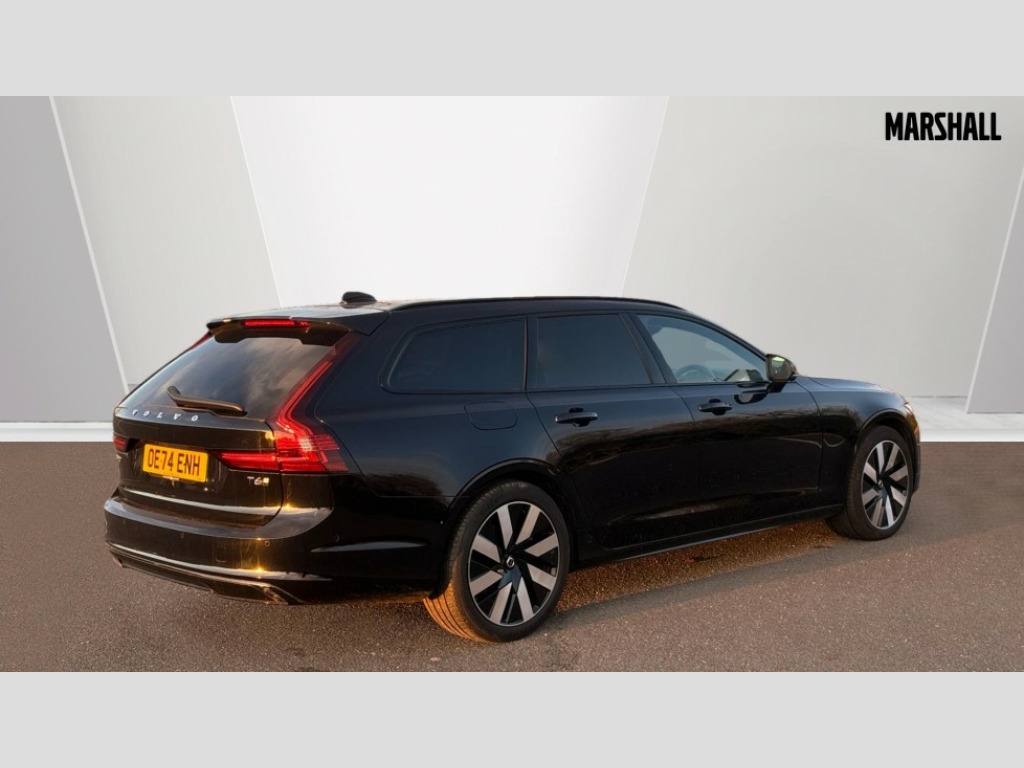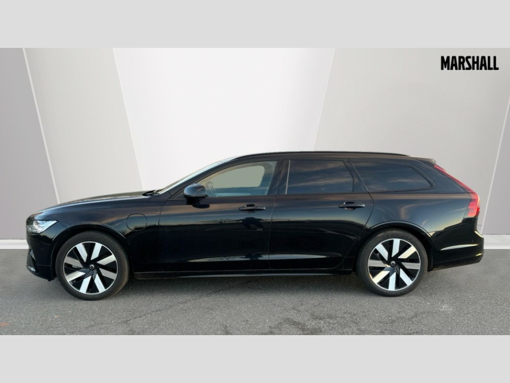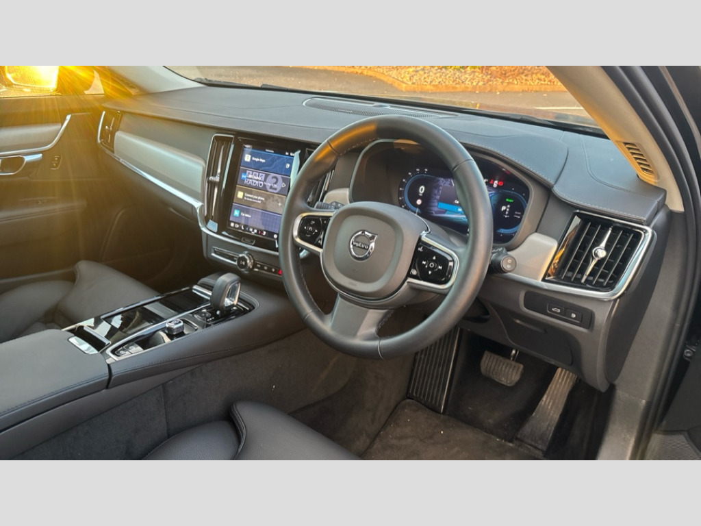 Volvo V90 2.0 T6 [350] PHEV Plus Dark 5dr AWD Auto 12.3" Progressive Driver Display, 360 degree surround view parking camera with side proximity sensors, 9" centre console touch screen, Adjustable steering wheel force, Apple carplay (wired), Bluetooth handsfree system, Drive mode settings, Driver alert control with lane keeping aid, Driver assistance (pilot assist and adaptive cruise control), Driver awareness - Blind spot system + steer assist, cross traffic alert with autobrake, rear collision warning and mitigation, E-call, Emergency assist, Front and rear park assist, Google automotive services - Enabled entertainment apps, navigation with google maps, voice recognition with google assistant, Handsfree bootlid opening/closing, Intelligent speed assistance, Oncoming Lane Mitigation, Power operated tailgate/boot lid, Speed sensitive steering, Volvo on call app, 3.7 kW monophase on board charger, 6m 3 phase 16amp Type 2 / mode 3 charge cable, 7m 10amp charge cable with 3 pin plug, 8 speed automatic transmission with start/stop + manual change functions, Dynamic chassis, Electric rear axle drive, Lithium-Ion Battery 18.8kWh, On board charger - 6.4 kW 2 phase/3.7kW single phase, Recharging port located in nearside front wing, DAB Radio (Digital Audio Broadcasting), Low speed exterior sound speaker, Premium Sound by Harman Kardon, dirac unison, dolby pro logic II surround sound, 13 speakers/600W output and fresh air subwoofer, Steering wheel remote infotainment controls, Adaptive brake lights with high level LED brake lights, Auto dimming interior + exterior mirrors, Automatic headlight levelling system, Automatic LED Headlights + Active high beam incorporating daytime running lights, Chrome window surround, Colour coordinated auto folding and heated power door mirrors, Front and rear power windows, Heated windscreen, High gloss black door mirrors and window surround, High gloss black front and rear bumper decoratives, High gloss black mesh front grille and surround, Home safe and approach lighting, Integrated roof rails in high gloss black, Puddle lights, Rain sensor with automatic windscreen wiper activation, Rear LED lights with sequential indicators, Rear side wing doors, Rear wiper, Roof antenna, Roof spoiler, Variable front intermittent wipers, Visible VIN plate, 2 zone electronic climate control with Clean zone air quality system + pollen filter, 3 seat bench in 2nd row, 3 Spoke tailored steering wheel with chrome trim, Air purifier particulate matter (PM) 2.5 filter, Ambient door and instrument panel lighting, B Pillar ventilation, Boot lid/tailgate illumination, Bright metal luggage compartment threshold, Cargo divider with grocery bag holder, Centre console cupholder and storage, Charcoal carpets and floor mats, Driver and front passenger seat power height adjustment, Extended front seat cushions, Front 12V socket tunnel console and cargo area, Front and rear cabin courtesy light, Front and rear footwell and side step illumination, Front and rear reading lights and centre armrest Storage Illumination, Front headrests, Front/rear door pockets and front cupholder illumination, Glovebox compartment with illumination, Heated front seats, Heated rear seats outer positions, Heated steering wheel, Height/reach adjustable steering column, Illuminated luggage compartment, Illuminated recharge aluminium tread plates, Illuminated vanity mirrors + ticket holder, Inner door release handle illumination, Integrated sun curtains in rear doors, ISOFIX attachment on outer rear seats, Leather upholstery, Load cover, Load protection net, Luggage compartment load hooks, Multi directional lumbar support, Power driver seat with memory for seat and exterior mirrors, Power folding rear headrests, Rear armrest with cupholder, Single front passenger seat, Underfloor cargo storage, Versatile split folding rear seat - 60/40, 3x3 point rear seatbelts, Active bonnet, City safety with steering support with Pedestrian + cyclist + front collision warning with full auto brake and rear auto brake, Drivers knee airbag, Dual stage driver/passenger airbags, Front seats SIPS airbags, Hill start assist, IC (Inflatable Curtains) - Full Length, Passenger airbag cut-off switch, Power child locks on rear doors, Power parking brake with auto hold function, Road sign information display, Run off Road Mitigation, Run off Road Protection, Seatbelt reminder and pretensioners for all seats, SIPS (Side Impact Protection System), Slippery road and hazard light alert, Stability and Traction Control with Spin control, Engine Drag Control and Corner Traction Control, Tyre pressure monitoring system, Vehicle deceleration control with Anti-lock Brake System, Electronic Brake Distribution and Emergency Brake Assist, Warning triangle and first aid kit, WHIPS whiplash protection system - front, 2x Key integrated remote control central locking + fuel flap with deadlocking system and auto open/close power windows, Anti-theft alarm including immobiliser/volume sensor + level sensor, Care key with user defined top speed, Keyless drive includes keyless entry and keyless start, Locking wheel nuts, Private locking for tailgate, Tailored Instrument Panel and Door Tops with Contrast Stitching, 19'' 8 spoke diamond cut black alloy wheels, Tyre sealant kit and compressor