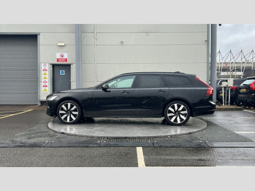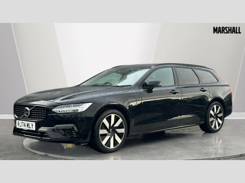 Volvo V90 2.0 T6 [350] PHEV Plus Dark 5dr AWD Auto 12.3" Progressive Driver Display, 360 degree surround view parking camera with side proximity sensors, 9" centre console touch screen, Adjustable steering wheel force, Apple carplay (wired), Bluetooth handsfree system, Drive mode settings, Driver alert control with lane keeping aid, Driver assistance (pilot assist and adaptive cruise control), Driver awareness - Blind spot system + steer assist, cross traffic alert with autobrake, rear collision warning and mitigation, E-call, Emergency assist, Front and rear park assist, Google automotive services - Enabled entertainment apps, navigation with google maps, voice recognition with google assistant, Handsfree bootlid opening/closing, Intelligent speed assistance, Oncoming Lane Mitigation, Power operated tailgate/boot lid, Speed sensitive steering, Volvo on call app, 3.7 kW monophase on board charger, 6m 3 phase 16amp Type 2 / mode 3 charge cable, 7m 10amp charge cable with 3 pin plug, 8 speed automatic transmission with start/stop + manual change functions, Dynamic chassis, Electric rear axle drive, Lithium-Ion Battery 18.8kWh, On board charger - 6.4 kW 2 phase/3.7kW single phase, Recharging port located in nearside front wing, DAB Radio (Digital Audio Broadcasting), Low speed exterior sound speaker, Premium Sound by Harman Kardon, dirac unison, dolby pro logic II surround sound, 13 speakers/600W output and fresh air subwoofer, Steering wheel remote infotainment controls, Adaptive brake lights with high level LED brake lights, Auto dimming interior + exterior mirrors, Automatic headlight levelling system, Automatic LED Headlights + Active high beam incorporating daytime running lights, Chrome window surround, Colour coordinated auto folding and heated power door mirrors, Front and rear power windows, Heated windscreen, High gloss black door mirrors and window surround, High gloss black front and rear bumper decoratives, High gloss black mesh front grille and surround, Home safe and approach lighting, Integrated roof rails in high gloss black, Puddle lights, Rain sensor with automatic windscreen wiper activation, Rear LED lights with sequential indicators, Rear side wing doors, Rear wiper, Roof antenna, Roof spoiler, Variable front intermittent wipers, Visible VIN plate, 2 zone electronic climate control with Clean zone air quality system + pollen filter, 3 seat bench in 2nd row, 3 Spoke tailored steering wheel with chrome trim, Air purifier particulate matter (PM) 2.5 filter, Ambient door and instrument panel lighting, B Pillar ventilation, Boot lid/tailgate illumination, Bright metal luggage compartment threshold, Cargo divider with grocery bag holder, Centre console cupholder and storage, Charcoal carpets and floor mats, Driver and front passenger seat power height adjustment, Extended front seat cushions, Front 12V socket tunnel console and cargo area, Front and rear cabin courtesy light, Front and rear footwell and side step illumination, Front and rear reading lights and centre armrest Storage Illumination, Front headrests, Front/rear door pockets and front cupholder illumination, Glovebox compartment with illumination, Heated front seats, Heated rear seats outer positions, Heated steering wheel, Height/reach adjustable steering column, Illuminated luggage compartment, Illuminated recharge aluminium tread plates, Illuminated vanity mirrors + ticket holder, Inner door release handle illumination, Integrated sun curtains in rear doors, ISOFIX attachment on outer rear seats, Leather upholstery, Load cover, Load protection net, Luggage compartment load hooks, Multi directional lumbar support, Power driver seat with memory for seat and exterior mirrors, Power folding rear headrests, Rear armrest with cupholder, Single front passenger seat, Underfloor cargo storage, Versatile split folding rear seat - 60/40, 3x3 point rear seatbelts, Active bonnet, City safety with steering support with Pedestrian + cyclist + front collision warning with full auto brake and rear auto brake, Drivers knee airbag, Dual stage driver/passenger airbags, Front seats SIPS airbags, Hill start assist, IC (Inflatable Curtains) - Full Length, Passenger airbag cut-off switch, Power child locks on rear doors, Power parking brake with auto hold function, Road sign information display, Run off Road Mitigation, Run off Road Protection, Seatbelt reminder and pretensioners for all seats, SIPS (Side Impact Protection System), Slippery road and hazard light alert, Stability and Traction Control with Spin control, Engine Drag Control and Corner Traction Control, Tyre pressure monitoring system, Vehicle deceleration control with Anti-lock Brake System, Electronic Brake Distribution and Emergency Brake Assist, Warning triangle and first aid kit, WHIPS whiplash protection system - front, 2x Key integrated remote control central locking + fuel flap with deadlocking system and auto open/close power windows, Anti-theft alarm including immobiliser/volume sensor + level sensor, Care key with user defined top speed, Keyless drive includes keyless entry and keyless start, Locking wheel nuts, Private locking for tailgate, Tailored Instrument Panel and Door Tops with Contrast Stitching, 19'' 8 spoke diamond cut black alloy wheels, Tyre sealant kit and compressor