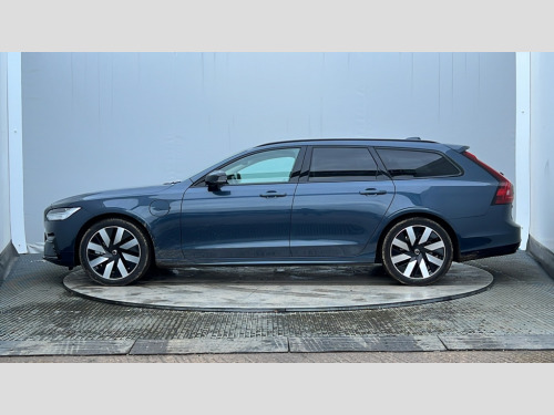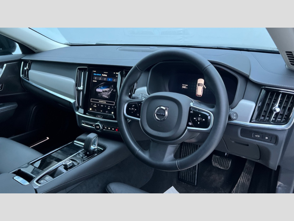 Volvo V90 2.0 T6 [350] PHEV Plus Dark 5dr AWD Auto 12.3" Progressive Driver Display, 360 degree surround view parking camera with side proximity sensors, 9" centre console touch screen, Adjustable steering wheel force, Apple CarPlay and Android Auto, Bluetooth handsfree system, Drive mode settings, Driver alert control with lane keeping aid, Driver assistance (pilot assist and adaptive cruise control), Driver awareness - Blind spot system + steer assist, cross traffic alert with autobrake, rear collision warning and mitigation, E-call, Emergency assist, Front and rear park assist, Google automotive services - Enabled entertainment apps, navigation with google maps, voice recognition with google assistant, Handsfree bootlid opening/closing, Intelligent speed assistance, Oncoming Lane Mitigation, Power operated tailgate/boot lid, Speed sensitive steering, Volvo on call app, 6m 3 phase 16amp Type 2 / mode 3 charge cable, 8 speed automatic transmission with start/stop + manual change functions, Dynamic chassis, Electric rear axle drive, Lithium-Ion Battery 18.8kWh, On board charger - 6.4 kW 2 phase/3.7kW single phase, Recharging port located in nearside front wing, DAB Radio (Digital Audio Broadcasting), Low speed exterior sound speaker, Premium Sound by Harman Kardon, dirac unison, dolby pro logic II surround sound, 13 speakers/600W output and fresh air subwoofer, Steering wheel remote infotainment controls, Adaptive brake lights with high level LED brake lights, Auto dimming interior + exterior mirrors, Automatic headlight levelling system, Automatic LED Headlights + Active high beam incorporating daytime running lights, Front and rear power windows, Heated windscreen, High gloss black door mirrors and window surround, High gloss black front and rear bumper decoratives, High gloss black mesh front grille and surround, Home safe and approach lighting, Integrated roof rails in high gloss black, Power heated autofolding door mirrors, Puddle lights, Rain sensor with automatic windscreen wiper activation, Rear LED lights with sequential indicators, Rear side wing doors, Rear wiper, Roof antenna, Roof spoiler, Variable front intermittent wipers, Visible VIN plate, 2 zone electronic climate control with Clean zone air quality system + pollen filter, 3 seat bench in 2nd row, 3 Spoke tailored steering wheel with chrome trim, Air purifier particulate matter (PM) 2.5 filter, Ambient door and instrument panel lighting, B Pillar ventilation, Boot lid/tailgate illumination, Bright metal luggage scuff plate, Cargo divider with grocery bag holder, Centre console cupholder and storage, Charcoal carpets and floor mats, Driver and front passenger seat power height adjustment, Extended front seat cushions, Front 12V socket tunnel console and cargo area, Front and rear cabin courtesy light, Front and rear door pocket lights, Front and rear footwell and side step illumination, Front and rear reading lights and centre armrest Storage Illumination, Front headrests, Glovebox compartment with illumination, Heated front seats, Heated rear seats outer positions, Heated steering wheel, Height/reach adjustable steering column, Illuminated luggage compartment, Illuminated recharge aluminium tread plates, Illuminated vanity mirrors + ticket holder, Inner door release handle illumination, Integrated sun curtains in rear doors, ISOFIX attachment on outer rear seats, Leather upholstery, Load cover, Load protection net, Luggage compartment load hooks, Memory function for drivers seat and exterior mirrors, Multi directional lumbar support, Power folding rear headrests, Rear armrest with cupholder, Single front passenger seat, Underfloor cargo storage, Versatile split folding rear seat - 60/40, 3x3 point rear seatbelts, Active bonnet, City safety with steering support with Pedestrian + cyclist + front collision warning with full auto brake and rear auto brake, Driver and front passenger airbags, Drivers knee airbag, Front seats SIPS airbags, Hill start assist, IC (Inflatable Curtains) - Full Length, Passenger airbag cut-off switch, Power child locks on rear doors, Power parking brake with auto hold function, Road sign information display, Run off Road Mitigation, Run off Road Protection, Seatbelt reminder and pretensioners for all seats, SIPS (Side Impact Protection System), Slippery road and hazard light alert, Stability and Traction Control with Spin control, Engine Drag Control and Corner Traction Control, Tyre pressure monitoring system, Vehicle deceleration control with Anti-lock Brake System, Electronic Brake Distribution and Emergency Brake Assist, Warning triangle and first aid kit, WHIPS whiplash protection system - front, 2x Key integrated remote control central locking + fuel flap with deadlocking system and auto open/close power windows, Anti-theft alarm including immobiliser/volume sensor + level sensor, Care key with user defined top speed, Keyless drive includes keyless entry and keyless start, Locking wheel nuts, Private locking for tailgate, Tailored Instrument Panel and Door Tops with Contrast Stitching, 19'' 8 spoke diamond cut black alloy wheels, Tyre sealant kit and compressor