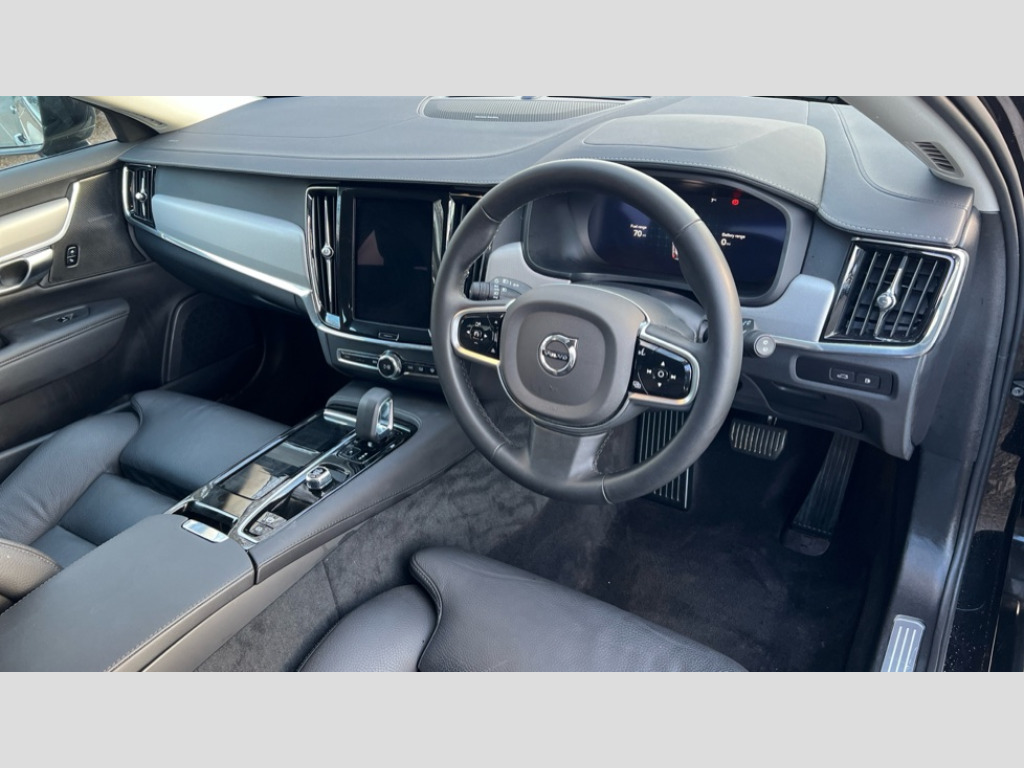 Volvo V90 2.0 T6 [350] PHEV Plus Dark 5dr AWD Auto 12.3" Progressive Driver Display, 360 degree surround view parking camera with side proximity sensors, 9" centre console touch screen, Adjustable steering wheel force, Apple CarPlay and Android Auto, Bluetooth handsfree system, Drive mode settings, Driver alert control with lane keeping aid, Driver assistance (pilot assist and adaptive cruise control), Driver awareness - Blind spot system + steer assist, cross traffic alert with autobrake, rear collision warning and mitigation, E-call, Emergency assist, Front and rear park assist, Google automotive services - Enabled entertainment apps, navigation with google maps, voice recognition with google assistant, Handsfree bootlid opening/closing, Intelligent speed assistance, Oncoming Lane Mitigation, Power operated tailgate/boot lid, Speed sensitive steering, Volvo on call app, 6m 3 phase 16amp Type 2 / mode 3 charge cable, 7m 10amp charge cable with 3 pin plug, 8 speed automatic transmission with start/stop + manual change functions, Dynamic chassis, Electric rear axle drive, Lithium-Ion Battery 18.8kWh, On board charger - 6.4 kW 2 phase/3.7kW single phase, Recharging port located in nearside front wing, DAB Radio (Digital Audio Broadcasting), Low speed exterior sound speaker, Premium Sound by Harman Kardon, dirac unison, dolby pro logic II surround sound, 13 speakers/600W output and fresh air subwoofer, Steering wheel remote infotainment controls, Adaptive brake lights with high level LED brake lights, Auto dimming interior + exterior mirrors, Automatic headlight levelling system, Automatic LED Headlights + Active high beam incorporating daytime running lights, Front and rear power windows, Heated windscreen, High gloss black door mirrors and window surround, High gloss black front and rear bumper decoratives, High gloss black mesh front grille and surround, Home safe and approach lighting, Integrated roof rails in high gloss black, Puddle lights, Rain sensor with automatic windscreen wiper activation, Rear LED lights with sequential indicators, Rear side wing doors, Rear wiper, Roof antenna, Roof spoiler, Variable front intermittent wipers, Visible VIN plate, 2 zone electronic climate control with Clean zone air quality system + pollen filter, 3 seat bench in 2nd row, 3 Spoke tailored steering wheel with chrome trim, Air purifier particulate matter (PM) 2.5 filter, Ambient door and instrument panel lighting, B Pillar ventilation, Boot lid/tailgate illumination, Bright metal luggage scuff plate, Cargo divider with grocery bag holder, Centre console cupholder and storage, Charcoal carpets and floor mats, Driver and front passenger seat power height adjustment, Extended front seat cushions, Front 12V socket tunnel console and cargo area, Front and rear cabin courtesy light, Front and rear door pocket lights, Front and rear footwell and side step illumination, Front and rear reading lights and centre armrest Storage Illumination, Front headrests, Glovebox compartment with illumination, Heated front seats, Heated rear seats outer positions, Heated steering wheel, Height/reach adjustable steering column, Illuminated luggage compartment, Illuminated recharge aluminium tread plates, Illuminated vanity mirrors + ticket holder, Inner door release handle illumination, Integrated sun curtains in rear doors, ISOFIX attachment on outer rear seats, Leather upholstery, Load cover, Load protection net, Luggage compartment load hooks, Memory function for drivers seat and exterior mirrors, Multi directional lumbar support, Power folding rear headrests, Rear armrest with cupholder, Single front passenger seat, Underfloor cargo storage, Versatile split folding rear seat - 60/40, 3x3 point rear seatbelts, Active bonnet, City safety with steering support with Pedestrian + cyclist + front collision warning with full auto brake and rear auto brake, Driver and front passenger airbags, Drivers knee airbag, Front seats SIPS airbags, Hill start assist, IC (Inflatable Curtains) - Full Length, Passenger airbag cut-off switch, Power child locks on rear doors, Power parking brake with auto hold function, Road sign information display, Run off Road Mitigation, Run off Road Protection, Seatbelt reminder and pretensioners for all seats, SIPS (Side Impact Protection System), Slippery road and hazard light alert, Stability and Traction Control with Spin control, Engine Drag Control and Corner Traction Control, Tyre pressure monitoring system, Vehicle deceleration control with Anti-lock Brake System, Electronic Brake Distribution and Emergency Brake Assist, Warning triangle and first aid kit, WHIPS whiplash protection system - front, 2x Key integrated remote control central locking + fuel flap with deadlocking system and auto open/close power windows, Anti-theft alarm including immobiliser/volume sensor + level sensor, Care key with user defined top speed, Keyless drive includes keyless entry and keyless start, Locking wheel nuts, Private locking for tailgate, Tailored Instrument Panel and Door Tops with Contrast Stitching, 19'' 8 spoke diamond cut black alloy wheels, Tyre sealant kit and compressor
