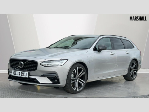 Volvo V90 2.0 T8 [455] PHEV Ultra Dark 5dr AWD Auto 12.3" Progressive Driver Display, 360 degree surround view parking camera with side proximity sensors, 9" centre console touch screen, Adjustable steering wheel force, Apple carplay (wired), Bluetooth handsfree system, Drive mode settings, Driver alert control with lane keeping aid, Driver assistance (pilot assist and adaptive cruise control), Driver awareness - Blind spot system + steer assist, cross traffic alert with autobrake, rear collision warning and mitigation, E-call, Emergency assist, Front and rear park assist, Google automotive services - Enabled entertainment apps, navigation with google maps, voice recognition with google assistant, Handsfree bootlid opening/closing, Intelligent speed assistance, Oncoming Lane Mitigation, Power operated tailgate/boot lid, Speed sensitive steering, Volvo on call app, 3.7 kW monophase on board charger, 6m 3 phase 16amp Type 2 / mode 3 charge cable, 7m 10amp charge cable with 3 pin plug, 8 speed automatic transmission with start/stop + manual change functions, Active four C chassis - Four corner adaptive dampers with two corner rear electronic air suspension, Electric rear axle drive, Lithium-Ion Battery 18.8kWh, On board charger - 6.4 kW 2 phase/3.7kW single phase, Recharging port located in nearside front wing, DAB Radio (Digital Audio Broadcasting), Low speed exterior sound speaker, Premium Sound by Bowers and Wilkins, dirac live, dolby pro logic II surround sound, 18 speakers/1400W output and fresh air subwoofer, Steering wheel remote infotainment controls, Active bending headlights with adaptive shadow technology, Adaptive brake lights with high level LED brake lights, Auto dimming interior + exterior mirrors, Automatic headlight levelling system, Automatic LED Headlights + Active high beam incorporating daytime running lights, Chrome window surround, Colour coordinated auto folding and heated power door mirrors, Dark tinted windows for rear side windows and rear screen, Front and rear power windows, Headlight cleaning system, High gloss black door mirrors and window surround, High gloss black front and rear bumper decoratives, High gloss black mesh front grille and surround, Home safe and approach lighting, Integrated roof rails in high gloss black, Laminated rear and side windows, Power glass tilt and slide panoramic sunroof with sun curtain, Puddle lights, Rain sensor with automatic windscreen wiper activation, Rear LED lights with sequential indicators, Rear side wing doors, Rear wiper, Roof antenna, Roof spoiler, Variable front intermittent wipers, Visible VIN plate, 2 zone electronic climate control with Clean zone air quality system + pollen filter, 3 seat bench in 2nd row, 3 Spoke tailored steering wheel with chrome trim, Air purifier particulate matter (PM) 2.5 filter, Ambient door and instrument panel lighting, B Pillar ventilation, Boot lid/tailgate illumination, Bright metal luggage compartment threshold, Cargo divider with grocery bag holder, Centre console cupholder and storage, Charcoal carpets and floor mats, Driver and front passenger seat power height adjustment, Extended front seat cushions, Front 12V socket tunnel console and cargo area, Front and rear cabin courtesy light, Front and rear footwell and side step illumination, Front and rear reading lights and centre armrest Storage Illumination, Front headrests, Front/rear door pockets and front cupholder illumination, Glovebox compartment with illumination, Heated front seats, Heated rear seats outer positions, Heated steering wheel, Height/reach adjustable steering column, Illuminated luggage compartment, Illuminated recharge aluminium tread plates, Illuminated vanity mirrors + ticket holder, Inner door release handle illumination, Integrated sun curtains in rear doors, ISOFIX attachment on outer rear seats, Load cover, Load protection net, Luggage compartment load hooks, Multi directional lumbar support, Power driver seat with memory for seat and exterior mirrors, Power folding rear headrests, Power passenger seat with memory, Rear armrest with cupholder, Single front passenger seat, Underfloor cargo storage, Versatile split folding rear seat - 60/40, 3x3 point rear seatbelts, Active bonnet, City safety with steering support with Pedestrian + cyclist + front collision warning with full auto brake and rear auto brake, Drivers knee airbag, Dual stage driver/passenger airbags, Front seats SIPS airbags, Hill start assist, IC (Inflatable Curtains) - Full Length, Passenger airbag cut-off switch, Power child locks on rear doors, Power parking brake with auto hold function, Run off Road Mitigation, Run off Road Protection, Seatbelt reminder and pretensioners for all seats, SIPS (Side Impact Protection System), Slippery road and hazard light alert, Stability and Traction Control with Spin control, Engine Drag Control and Corner Traction Control, Tyre pressure monitoring system, Vehicle deceleration control with Anti-lock Brake System, Electronic Brake Distribution and Emergency Brake Assist, Warning triangle and first aid kit, WHIPS whiplash protection system - front, 2x Key integrated remote control central locking + fuel flap with deadlocking system and auto open/close power windows, Anti-theft alarm including immobiliser/volume sensor + level sensor, Care key with user defined top speed, Keyless drive includes keyless entry and keyless start, Locking wheel nuts, Private locking for tailgate, Tailored Instrument Panel and Door Tops with Contrast Stitching, 20'' 5 double spoke diamond cut black alloy wheels, Tyre sealant kit and compressor
