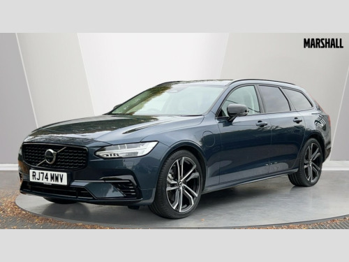 Volvo V90 2.0 T8 [455] PHEV Ultra Dark 5dr AWD Auto 12.3" Progressive Driver Display, 360 degree surround view parking camera with side proximity sensors, 9" centre console touch screen, Adjustable steering wheel force, Apple carplay (wired), Bluetooth handsfree system, Drive mode settings, Driver alert control with lane keeping aid, Driver assistance (pilot assist and adaptive cruise control), Driver awareness - Blind spot system + steer assist, cross traffic alert with autobrake, rear collision warning and mitigation, E-call, Emergency assist, Front and rear park assist, Google automotive services - Enabled entertainment apps, navigation with google maps, voice recognition with google assistant, Handsfree bootlid opening/closing, Intelligent speed assistance, Oncoming Lane Mitigation, Power operated tailgate/boot lid, Speed sensitive steering, Volvo on call app, 3.7 kW monophase on board charger, 6m 3 phase 16amp Type 2 / mode 3 charge cable, 7m 10amp charge cable with 3 pin plug, 8 speed automatic transmission with start/stop + manual change functions, Active four C chassis - Four corner adaptive dampers with two corner rear electronic air suspension, Electric rear axle drive, Lithium-Ion Battery 18.8kWh, On board charger - 6.4 kW 2 phase/3.7kW single phase, Recharging port located in nearside front wing, DAB Radio (Digital Audio Broadcasting), Low speed exterior sound speaker, Premium Sound by Bowers and Wilkins, dirac live, dolby pro logic II surround sound, 18 speakers/1400W output and fresh air subwoofer, Steering wheel remote infotainment controls, Active bending headlights with adaptive shadow technology, Adaptive brake lights with high level LED brake lights, Auto dimming interior + exterior mirrors, Automatic headlight levelling system, Automatic LED Headlights + Active high beam incorporating daytime running lights, Chrome window surround, Colour coordinated auto folding and heated power door mirrors, Dark tinted windows for rear side windows and rear screen, Front and rear power windows, Headlight cleaning system, High gloss black door mirrors and window surround, High gloss black front and rear bumper decoratives, High gloss black mesh front grille and surround, Home safe and approach lighting, Integrated roof rails in high gloss black, Laminated rear and side windows, Power glass tilt and slide panoramic sunroof with sun curtain, Puddle lights, Rain sensor with automatic windscreen wiper activation, Rear LED lights with sequential indicators, Rear side wing doors, Rear wiper, Roof antenna, Roof spoiler, Variable front intermittent wipers, Visible VIN plate, 2 zone electronic climate control with Clean zone air quality system + pollen filter, 3 seat bench in 2nd row, 3 Spoke tailored steering wheel with chrome trim, Air purifier particulate matter (PM) 2.5 filter, Ambient door and instrument panel lighting, B Pillar ventilation, Boot lid/tailgate illumination, Bright metal luggage compartment threshold, Cargo divider with grocery bag holder, Centre console cupholder and storage, Charcoal carpets and floor mats, Driver and front passenger seat power height adjustment, Extended front seat cushions, Front 12V socket tunnel console and cargo area, Front and rear cabin courtesy light, Front and rear footwell and side step illumination, Front and rear reading lights and centre armrest Storage Illumination, Front headrests, Front/rear door pockets and front cupholder illumination, Glovebox compartment with illumination, Heated front seats, Heated rear seats outer positions, Heated steering wheel, Height/reach adjustable steering column, Illuminated luggage compartment, Illuminated recharge aluminium tread plates, Illuminated vanity mirrors + ticket holder, Inner door release handle illumination, Integrated sun curtains in rear doors, ISOFIX attachment on outer rear seats, Load cover, Load protection net, Luggage compartment load hooks, Multi directional lumbar support, Power driver seat with memory for seat and exterior mirrors, Power folding rear headrests, Power passenger seat with memory, Rear armrest with cupholder, Single front passenger seat, Underfloor cargo storage, Versatile split folding rear seat - 60/40, 3x3 point rear seatbelts, Active bonnet, City safety with steering support with Pedestrian + cyclist + front collision warning with full auto brake and rear auto brake, Drivers knee airbag, Dual stage driver/passenger airbags, Front seats SIPS airbags, Hill start assist, IC (Inflatable Curtains) - Full Length, Passenger airbag cut-off switch, Power child locks on rear doors, Power parking brake with auto hold function, Run off Road Mitigation, Run off Road Protection, Seatbelt reminder and pretensioners for all seats, SIPS (Side Impact Protection System), Slippery road and hazard light alert, Stability and Traction Control with Spin control, Engine Drag Control and Corner Traction Control, Tyre pressure monitoring system, Vehicle deceleration control with Anti-lock Brake System, Electronic Brake Distribution and Emergency Brake Assist, Warning triangle and first aid kit, WHIPS whiplash protection system - front, 2x Key integrated remote control central locking + fuel flap with deadlocking system and auto open/close power windows, Anti-theft alarm including immobiliser/volume sensor + level sensor, Care key with user defined top speed, Keyless drive includes keyless entry and keyless start, Locking wheel nuts, Private locking for tailgate, Tailored Instrument Panel and Door Tops with Contrast Stitching, 20'' 5 double spoke diamond cut black alloy wheels, Tyre sealant kit and compressor