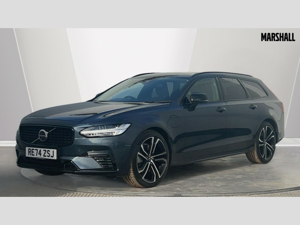 Volvo V90 2.0 T8 [455] PHEV Ultra Dark 5dr AWD Auto 12.3" Progressive Driver Display, 360 degree surround view parking camera with side proximity sensors, 9" centre console touch screen, Adjustable steering wheel force, Apple carplay (wired), Bluetooth handsfree system, Drive mode settings, Driver alert control with lane keeping aid, Driver assistance (pilot assist and adaptive cruise control), Driver awareness - Blind spot system + steer assist, cross traffic alert with autobrake, rear collision warning and mitigation, E-call, Emergency assist, Front and rear park assist, Google automotive services - Enabled entertainment apps, navigation with google maps, voice recognition with google assistant, Handsfree bootlid opening/closing, Intelligent speed assistance, Oncoming Lane Mitigation, Power operated tailgate/boot lid, Speed sensitive steering, Volvo on call app, 3.7 kW monophase on board charger, 6m 3 phase 16amp Type 2 / mode 3 charge cable, 7m 10amp charge cable with 3 pin plug, 8 speed automatic transmission with start/stop + manual change functions, Active four C chassis - Four corner adaptive dampers with two corner rear electronic air suspension, Electric rear axle drive, Lithium-Ion Battery 18.8kWh, On board charger - 6.4 kW 2 phase/3.7kW single phase, Recharging port located in nearside front wing, DAB Radio (Digital Audio Broadcasting), Low speed exterior sound speaker, Premium Sound by Bowers and Wilkins, dirac live, dolby pro logic II surround sound, 18 speakers/1400W output and fresh air subwoofer, Steering wheel remote infotainment controls, Active bending headlights with adaptive shadow technology, Adaptive brake lights with high level LED brake lights, Auto dimming interior + exterior mirrors, Automatic headlight levelling system, Automatic LED Headlights + Active high beam incorporating daytime running lights, Chrome window surround, Colour coordinated auto folding and heated power door mirrors, Dark tinted windows for rear side windows and rear screen, Front and rear power windows, Headlight cleaning system, High gloss black door mirrors and window surround, High gloss black front and rear bumper decoratives, High gloss black mesh front grille and surround, Home safe and approach lighting, Integrated roof rails in high gloss black, Laminated rear and side windows, Power glass tilt and slide panoramic sunroof with sun curtain, Puddle lights, Rain sensor with automatic windscreen wiper activation, Rear LED lights with sequential indicators, Rear side wing doors, Rear wiper, Roof antenna, Roof spoiler, Variable front intermittent wipers, Visible VIN plate, 2 zone electronic climate control with Clean zone air quality system + pollen filter, 3 seat bench in 2nd row, 3 Spoke tailored steering wheel with chrome trim, Air purifier particulate matter (PM) 2.5 filter, Ambient door and instrument panel lighting, B Pillar ventilation, Boot lid/tailgate illumination, Bright metal luggage compartment threshold, Cargo divider with grocery bag holder, Centre console cupholder and storage, Charcoal carpets and floor mats, Driver and front passenger seat power height adjustment, Extended front seat cushions, Front 12V socket tunnel console and cargo area, Front and rear cabin courtesy light, Front and rear footwell and side step illumination, Front and rear reading lights and centre armrest Storage Illumination, Front headrests, Front/rear door pockets and front cupholder illumination, Glovebox compartment with illumination, Heated front seats, Heated rear seats outer positions, Heated steering wheel, Height/reach adjustable steering column, Illuminated luggage compartment, Illuminated recharge aluminium tread plates, Illuminated vanity mirrors + ticket holder, Inner door release handle illumination, Integrated sun curtains in rear doors, ISOFIX attachment on outer rear seats, Load cover, Load protection net, Luggage compartment load hooks, Multi directional lumbar support, Power driver seat with memory for seat and exterior mirrors, Power folding rear headrests, Power passenger seat with memory, Rear armrest with cupholder, Single front passenger seat, Underfloor cargo storage, Versatile split folding rear seat - 60/40, 3x3 point rear seatbelts, Active bonnet, City safety with steering support with Pedestrian + cyclist + front collision warning with full auto brake and rear auto brake, Drivers knee airbag, Dual stage driver/passenger airbags, Front seats SIPS airbags, Hill start assist, IC (Inflatable Curtains) - Full Length, Passenger airbag cut-off switch, Power child locks on rear doors, Power parking brake with auto hold function, Run off Road Mitigation, Run off Road Protection, Seatbelt reminder and pretensioners for all seats, SIPS (Side Impact Protection System), Slippery road and hazard light alert, Stability and Traction Control with Spin control, Engine Drag Control and Corner Traction Control, Tyre pressure monitoring system, Vehicle deceleration control with Anti-lock Brake System, Electronic Brake Distribution and Emergency Brake Assist, Warning triangle and first aid kit, WHIPS whiplash protection system - front, 2x Key integrated remote control central locking + fuel flap with deadlocking system and auto open/close power windows, Anti-theft alarm including immobiliser/volume sensor + level sensor, Care key with user defined top speed, Keyless drive includes keyless entry and keyless start, Locking wheel nuts, Private locking for tailgate, Tailored Instrument Panel and Door Tops with Contrast Stitching, 20'' 5 double spoke diamond cut black alloy wheels, Tyre sealant kit and compressor
