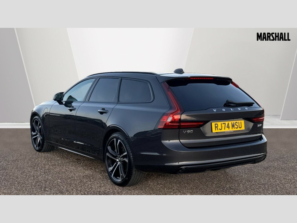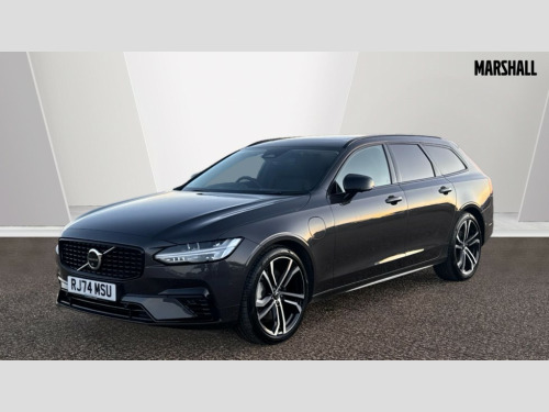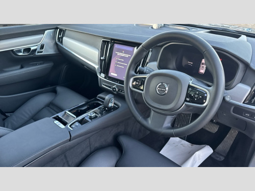 Volvo V90 2.0 T8 [455] PHEV Ultra Dark 5dr AWD Auto 12.3" Progressive Driver Display, 360 degree surround view parking camera with side proximity sensors, 9" centre console touch screen, Adjustable steering wheel force, Apple carplay (wired), Bluetooth handsfree system, Drive mode settings, Driver alert control with lane keeping aid, Driver assistance (pilot assist and adaptive cruise control), Driver awareness - Blind spot system + steer assist, cross traffic alert with autobrake, rear collision warning and mitigation, E-call, Emergency assist, Front and rear park assist, Google automotive services - Enabled entertainment apps, navigation with google maps, voice recognition with google assistant, Handsfree bootlid opening/closing, Intelligent speed assistance, Oncoming Lane Mitigation, Power operated tailgate/boot lid, Speed sensitive steering, Volvo on call app, 3.7 kW monophase on board charger, 6m 3 phase 16amp Type 2 / mode 3 charge cable, 7m 10amp charge cable with 3 pin plug, 8 speed automatic transmission with start/stop + manual change functions, Active four C chassis - Four corner adaptive dampers with two corner rear electronic air suspension, Electric rear axle drive, Lithium-Ion Battery 18.8kWh, On board charger - 6.4 kW 2 phase/3.7kW single phase, Recharging port located in nearside front wing, DAB Radio (Digital Audio Broadcasting), Low speed exterior sound speaker, Premium Sound by Bowers and Wilkins, dirac live, dolby pro logic II surround sound, 18 speakers/1400W output and fresh air subwoofer, Steering wheel remote infotainment controls, Active bending headlights with adaptive shadow technology, Adaptive brake lights with high level LED brake lights, Auto dimming interior + exterior mirrors, Automatic headlight levelling system, Automatic LED Headlights + Active high beam incorporating daytime running lights, Chrome window surround, Colour coordinated auto folding and heated power door mirrors, Dark tinted windows for rear side windows and rear screen, Front and rear power windows, Headlight cleaning system, High gloss black door mirrors and window surround, High gloss black front and rear bumper decoratives, High gloss black mesh front grille and surround, Home safe and approach lighting, Integrated roof rails in high gloss black, Laminated rear and side windows, Power glass tilt and slide panoramic sunroof with sun curtain, Puddle lights, Rain sensor with automatic windscreen wiper activation, Rear LED lights with sequential indicators, Rear side wing doors, Rear wiper, Roof antenna, Roof spoiler, Variable front intermittent wipers, Visible VIN plate, 2 zone electronic climate control with Clean zone air quality system + pollen filter, 3 seat bench in 2nd row, 3 Spoke tailored steering wheel with chrome trim, Air purifier particulate matter (PM) 2.5 filter, Ambient door and instrument panel lighting, B Pillar ventilation, Boot lid/tailgate illumination, Bright metal luggage compartment threshold, Cargo divider with grocery bag holder, Centre console cupholder and storage, Charcoal carpets and floor mats, Driver and front passenger seat power height adjustment, Extended front seat cushions, Front 12V socket tunnel console and cargo area, Front and rear cabin courtesy light, Front and rear footwell and side step illumination, Front and rear reading lights and centre armrest Storage Illumination, Front headrests, Front/rear door pockets and front cupholder illumination, Glovebox compartment with illumination, Heated front seats, Heated rear seats outer positions, Heated steering wheel, Height/reach adjustable steering column, Illuminated luggage compartment, Illuminated recharge aluminium tread plates, Illuminated vanity mirrors + ticket holder, Inner door release handle illumination, Integrated sun curtains in rear doors, ISOFIX attachment on outer rear seats, Load cover, Load protection net, Luggage compartment load hooks, Multi directional lumbar support, Power driver seat with memory for seat and exterior mirrors, Power folding rear headrests, Power passenger seat with memory, Rear armrest with cupholder, Single front passenger seat, Underfloor cargo storage, Versatile split folding rear seat - 60/40, 3x3 point rear seatbelts, Active bonnet, City safety with steering support with Pedestrian + cyclist + front collision warning with full auto brake and rear auto brake, Drivers knee airbag, Dual stage driver/passenger airbags, Front seats SIPS airbags, Hill start assist, IC (Inflatable Curtains) - Full Length, Passenger airbag cut-off switch, Power child locks on rear doors, Power parking brake with auto hold function, Run off Road Mitigation, Run off Road Protection, Seatbelt reminder and pretensioners for all seats, SIPS (Side Impact Protection System), Slippery road and hazard light alert, Stability and Traction Control with Spin control, Engine Drag Control and Corner Traction Control, Tyre pressure monitoring system, Vehicle deceleration control with Anti-lock Brake System, Electronic Brake Distribution and Emergency Brake Assist, Warning triangle and first aid kit, WHIPS whiplash protection system - front, 2x Key integrated remote control central locking + fuel flap with deadlocking system and auto open/close power windows, Anti-theft alarm including immobiliser/volume sensor + level sensor, Care key with user defined top speed, Keyless drive includes keyless entry and keyless start, Locking wheel nuts, Private locking for tailgate, Tailored Instrument Panel and Door Tops with Contrast Stitching, 20'' 5 double spoke diamond cut black alloy wheels, Tyre sealant kit and compressor