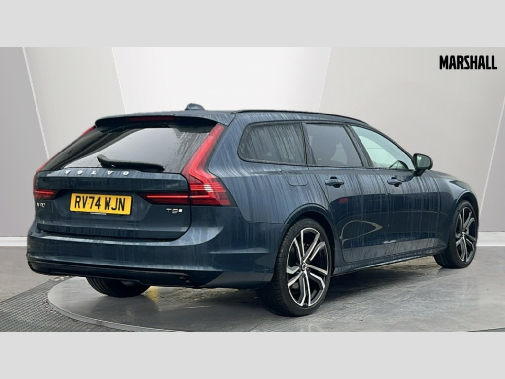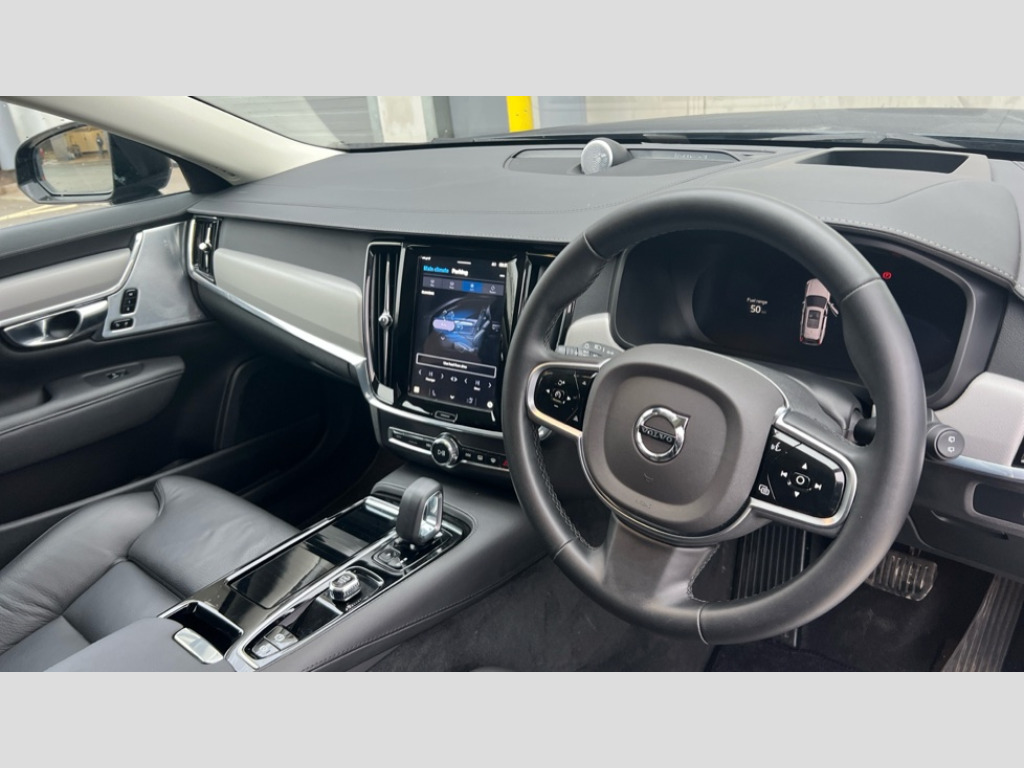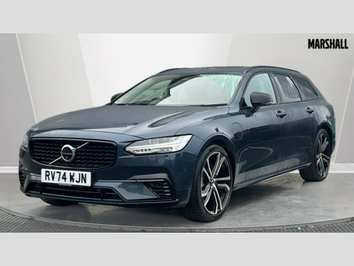 Volvo V90 2.0 T8 [455] PHEV Ultra Dark 5dr AWD Auto 12.3" Progressive Driver Display, 360 degree surround view parking camera with side proximity sensors, 9" centre console touch screen, Adjustable steering wheel force, Apple carplay (wired), Bluetooth handsfree system, Drive mode settings, Driver alert control with lane keeping aid, Driver assistance (pilot assist and adaptive cruise control), Driver awareness - Blind spot system + steer assist, cross traffic alert with autobrake, rear collision warning and mitigation, E-call, Emergency assist, Front and rear park assist, Google automotive services - Enabled entertainment apps, navigation with google maps, voice recognition with google assistant, Handsfree bootlid opening/closing, Intelligent speed assistance, Oncoming Lane Mitigation, Power operated tailgate/boot lid, Speed sensitive steering, Volvo on call app, 3.7 kW monophase on board charger, 6m 3 phase 16amp Type 2 / mode 3 charge cable, 7m 10amp charge cable with 3 pin plug, 8 speed automatic transmission with start/stop + manual change functions, Active four C chassis - Four corner adaptive dampers with two corner rear electronic air suspension, Electric rear axle drive, Lithium-Ion Battery 18.8kWh, On board charger - 6.4 kW 2 phase/3.7kW single phase, Recharging port located in nearside front wing, DAB Radio (Digital Audio Broadcasting), Low speed exterior sound speaker, Premium Sound by Bowers and Wilkins, dirac live, dolby pro logic II surround sound, 18 speakers/1400W output and fresh air subwoofer, Steering wheel remote infotainment controls, Active bending headlights with adaptive shadow technology, Adaptive brake lights with high level LED brake lights, Auto dimming interior + exterior mirrors, Automatic headlight levelling system, Automatic LED Headlights + Active high beam incorporating daytime running lights, Chrome window surround, Colour coordinated auto folding and heated power door mirrors, Dark tinted windows for rear side windows and rear screen, Front and rear power windows, Headlight cleaning system, High gloss black door mirrors and window surround, High gloss black front and rear bumper decoratives, High gloss black mesh front grille and surround, Home safe and approach lighting, Integrated roof rails in high gloss black, Laminated rear and side windows, Power glass tilt and slide panoramic sunroof with sun curtain, Puddle lights, Rain sensor with automatic windscreen wiper activation, Rear LED lights with sequential indicators, Rear side wing doors, Rear wiper, Roof antenna, Roof spoiler, Variable front intermittent wipers, Visible VIN plate, 2 zone electronic climate control with Clean zone air quality system + pollen filter, 3 seat bench in 2nd row, 3 Spoke tailored steering wheel with chrome trim, Air purifier particulate matter (PM) 2.5 filter, Ambient door and instrument panel lighting, B Pillar ventilation, Boot lid/tailgate illumination, Bright metal luggage compartment threshold, Cargo divider with grocery bag holder, Centre console cupholder and storage, Charcoal carpets and floor mats, Driver and front passenger seat power height adjustment, Extended front seat cushions, Front 12V socket tunnel console and cargo area, Front and rear cabin courtesy light, Front and rear footwell and side step illumination, Front and rear reading lights and centre armrest Storage Illumination, Front headrests, Front/rear door pockets and front cupholder illumination, Glovebox compartment with illumination, Heated front seats, Heated rear seats outer positions, Heated steering wheel, Height/reach adjustable steering column, Illuminated luggage compartment, Illuminated recharge aluminium tread plates, Illuminated vanity mirrors + ticket holder, Inner door release handle illumination, Integrated sun curtains in rear doors, ISOFIX attachment on outer rear seats, Load cover, Load protection net, Luggage compartment load hooks, Multi directional lumbar support, Power driver seat with memory for seat and exterior mirrors, Power folding rear headrests, Power passenger seat with memory, Rear armrest with cupholder, Single front passenger seat, Underfloor cargo storage, Versatile split folding rear seat - 60/40, 3x3 point rear seatbelts, Active bonnet, City safety with steering support with Pedestrian + cyclist + front collision warning with full auto brake and rear auto brake, Drivers knee airbag, Dual stage driver/passenger airbags, Front seats SIPS airbags, Hill start assist, IC (Inflatable Curtains) - Full Length, Passenger airbag cut-off switch, Power child locks on rear doors, Power parking brake with auto hold function, Run off Road Mitigation, Run off Road Protection, Seatbelt reminder and pretensioners for all seats, SIPS (Side Impact Protection System), Slippery road and hazard light alert, Stability and Traction Control with Spin control, Engine Drag Control and Corner Traction Control, Tyre pressure monitoring system, Vehicle deceleration control with Anti-lock Brake System, Electronic Brake Distribution and Emergency Brake Assist, Warning triangle and first aid kit, WHIPS whiplash protection system - front, 2x Key integrated remote control central locking + fuel flap with deadlocking system and auto open/close power windows, Anti-theft alarm including immobiliser/volume sensor + level sensor, Care key with user defined top speed, Keyless drive includes keyless entry and keyless start, Locking wheel nuts, Private locking for tailgate, Tailored Instrument Panel and Door Tops with Contrast Stitching, 20'' 5 double spoke diamond cut black alloy wheels, Tyre sealant kit and compressor