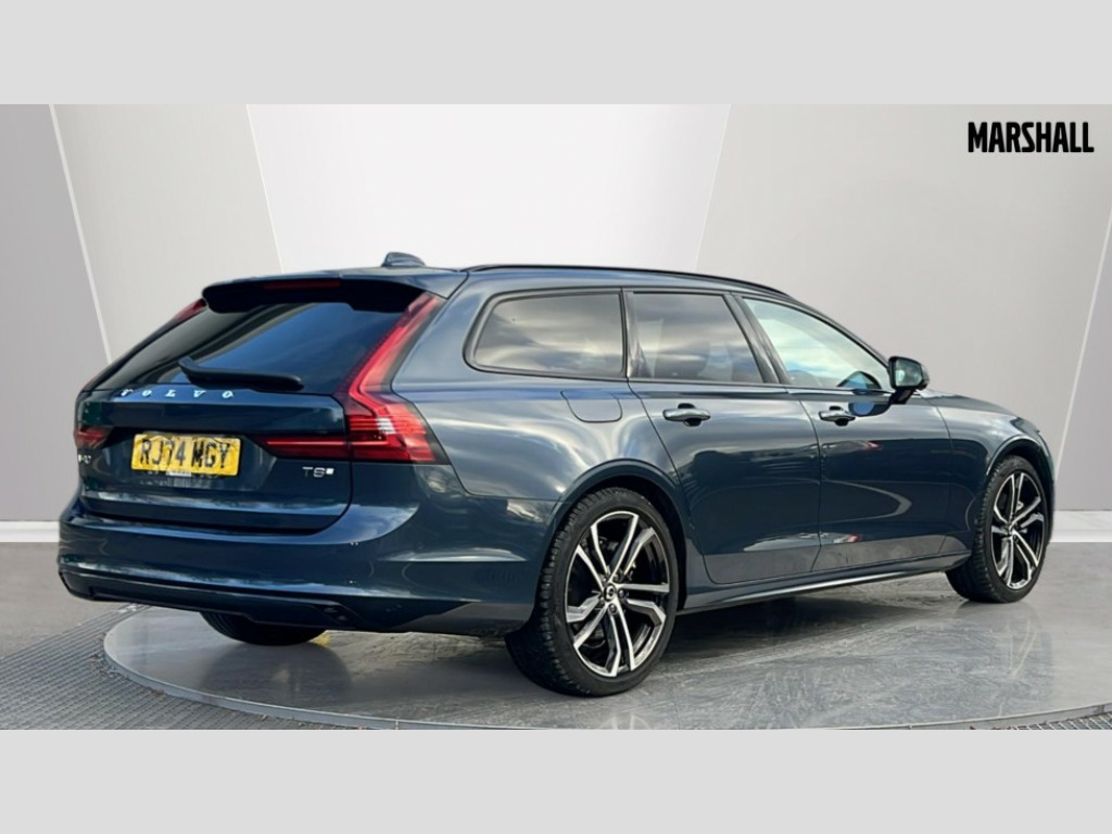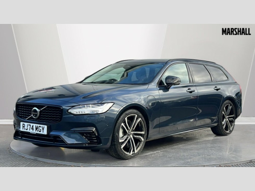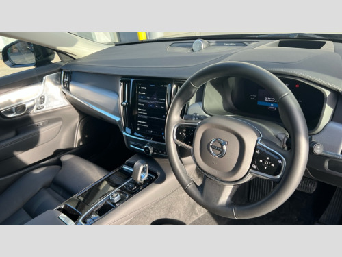 Volvo V90 2.0 T8 [455] PHEV Ultra Dark 5dr AWD Auto 12.3" Progressive Driver Display, 360 degree surround view parking camera with side proximity sensors, 9" centre console touch screen, Adjustable steering wheel force, Apple carplay (wired), Bluetooth handsfree system, Drive mode settings, Driver alert control with lane keeping aid, Driver assistance (pilot assist and adaptive cruise control), Driver awareness - Blind spot system + steer assist, cross traffic alert with autobrake, rear collision warning and mitigation, E-call, Emergency assist, Front and rear park assist, Google automotive services - Enabled entertainment apps, navigation with google maps, voice recognition with google assistant, Handsfree bootlid opening/closing, Intelligent speed assistance, Oncoming Lane Mitigation, Power operated tailgate/boot lid, Speed sensitive steering, Volvo on call app, 3.7 kW monophase on board charger, 6m 3 phase 16amp Type 2 / mode 3 charge cable, 7m 10amp charge cable with 3 pin plug, 8 speed automatic transmission with start/stop + manual change functions, Active four C chassis - Four corner adaptive dampers with two corner rear electronic air suspension, Electric rear axle drive, Lithium-Ion Battery 18.8kWh, On board charger - 6.4 kW 2 phase/3.7kW single phase, Recharging port located in nearside front wing, DAB Radio (Digital Audio Broadcasting), Low speed exterior sound speaker, Premium Sound by Bowers and Wilkins, dirac live, dolby pro logic II surround sound, 18 speakers/1400W output and fresh air subwoofer, Steering wheel remote infotainment controls, Active bending headlights with adaptive shadow technology, Adaptive brake lights with high level LED brake lights, Auto dimming interior + exterior mirrors, Automatic headlight levelling system, Automatic LED Headlights + Active high beam incorporating daytime running lights, Chrome window surround, Colour coordinated auto folding and heated power door mirrors, Dark tinted windows for rear side windows and rear screen, Front and rear power windows, Headlight cleaning system, High gloss black door mirrors and window surround, High gloss black front and rear bumper decoratives, High gloss black mesh front grille and surround, Home safe and approach lighting, Integrated roof rails in high gloss black, Laminated rear and side windows, Power glass tilt and slide panoramic sunroof with sun curtain, Puddle lights, Rain sensor with automatic windscreen wiper activation, Rear LED lights with sequential indicators, Rear side wing doors, Rear wiper, Roof antenna, Roof spoiler, Variable front intermittent wipers, Visible VIN plate, 2 zone electronic climate control with Clean zone air quality system + pollen filter, 3 seat bench in 2nd row, 3 Spoke tailored steering wheel with chrome trim, Air purifier particulate matter (PM) 2.5 filter, Ambient door and instrument panel lighting, B Pillar ventilation, Boot lid/tailgate illumination, Bright metal luggage compartment threshold, Cargo divider with grocery bag holder, Centre console cupholder and storage, Charcoal carpets and floor mats, Driver and front passenger seat power height adjustment, Extended front seat cushions, Front 12V socket tunnel console and cargo area, Front and rear cabin courtesy light, Front and rear footwell and side step illumination, Front and rear reading lights and centre armrest Storage Illumination, Front headrests, Front/rear door pockets and front cupholder illumination, Glovebox compartment with illumination, Heated front seats, Heated rear seats outer positions, Heated steering wheel, Height/reach adjustable steering column, Illuminated luggage compartment, Illuminated recharge aluminium tread plates, Illuminated vanity mirrors + ticket holder, Inner door release handle illumination, Integrated sun curtains in rear doors, ISOFIX attachment on outer rear seats, Load cover, Load protection net, Luggage compartment load hooks, Multi directional lumbar support, Power driver seat with memory for seat and exterior mirrors, Power folding rear headrests, Power passenger seat with memory, Rear armrest with cupholder, Single front passenger seat, Underfloor cargo storage, Versatile split folding rear seat - 60/40, 3x3 point rear seatbelts, Active bonnet, City safety with steering support with Pedestrian + cyclist + front collision warning with full auto brake and rear auto brake, Drivers knee airbag, Dual stage driver/passenger airbags, Front seats SIPS airbags, Hill start assist, IC (Inflatable Curtains) - Full Length, Passenger airbag cut-off switch, Power child locks on rear doors, Power parking brake with auto hold function, Run off Road Mitigation, Run off Road Protection, Seatbelt reminder and pretensioners for all seats, SIPS (Side Impact Protection System), Slippery road and hazard light alert, Stability and Traction Control with Spin control, Engine Drag Control and Corner Traction Control, Tyre pressure monitoring system, Vehicle deceleration control with Anti-lock Brake System, Electronic Brake Distribution and Emergency Brake Assist, Warning triangle and first aid kit, WHIPS whiplash protection system - front, 2x Key integrated remote control central locking + fuel flap with deadlocking system and auto open/close power windows, Anti-theft alarm including immobiliser/volume sensor + level sensor, Care key with user defined top speed, Keyless drive includes keyless entry and keyless start, Locking wheel nuts, Private locking for tailgate, Tailored Instrument Panel and Door Tops with Contrast Stitching, 20'' 5 double spoke diamond cut black alloy wheels, Tyre sealant kit and compressor