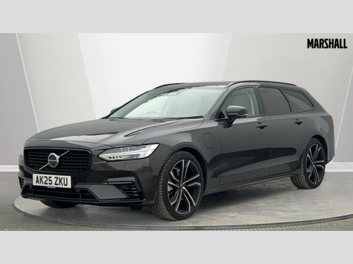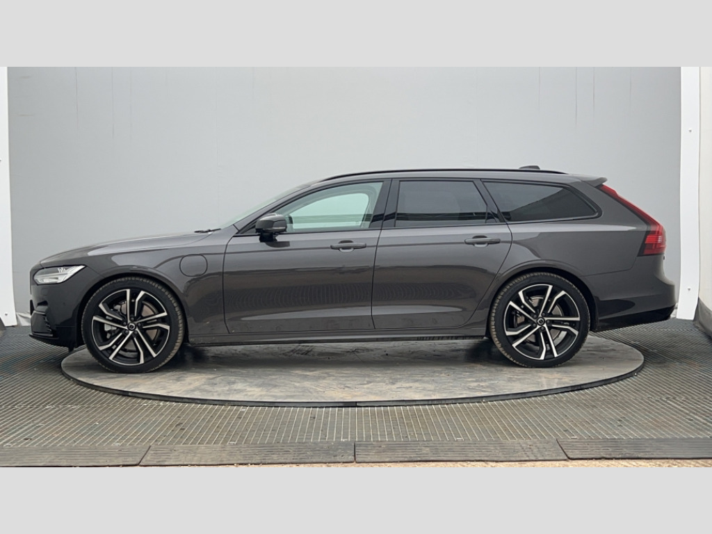 Volvo V90 2.0 T8 [455] PHEV Ultra Dark 5dr AWD Auto 12.3" Progressive Driver Display, 360 degree surround view parking camera with side proximity sensors, 9" centre console touch screen, Adjustable steering wheel force, Apple CarPlay and Android Auto, Bluetooth handsfree system, Drive mode settings, Driver alert control with lane keeping aid, Driver assistance (pilot assist and adaptive cruise control), Driver awareness - Blind spot system + steer assist, cross traffic alert with autobrake, rear collision warning and mitigation, E-call, Emergency assist, Front and rear park assist, Google automotive services - Enabled entertainment apps, navigation with google maps, voice recognition with google assistant, Handsfree bootlid opening/closing, Head up display in windscreen includes road sign information, distance alert, set speed and navigation, Intelligent speed assistance, Oncoming Lane Mitigation, Power operated tailgate/boot lid, Speed sensitive steering, Volvo on call app, 6m 3 phase 16amp Type 2 / mode 3 charge cable, 8 speed automatic transmission with start/stop + manual change functions, Active four C chassis - Four corner adaptive dampers with two corner rear electronic air suspension, Electric rear axle drive, Lithium-Ion Battery 18.8kWh, On board charger - 6.4 kW 2 phase/3.7kW single phase, Recharging port located in nearside front wing, DAB Radio (Digital Audio Broadcasting), Low speed exterior sound speaker, Premium Sound by Bowers and Wilkins, dirac live, dolby pro logic II surround sound, 18 speakers/1400W output and fresh air subwoofer, Steering wheel remote infotainment controls, Active bending headlights with adaptive shadow technology, Adaptive brake lights with high level LED brake lights, Auto dimming interior + exterior mirrors, Automatic headlight levelling system, Automatic LED Headlights + Active high beam incorporating daytime running lights, Dark tinted windows for rear side windows and rear screen, Front and rear power windows, Headlight cleaning system, High gloss black door mirrors and window surround, High gloss black front and rear bumper decoratives, High gloss black mesh front grille and surround, Home safe and approach lighting, Integrated roof rails in high gloss black, Laminated rear and side windows, Power glass tilt and slide panoramic sunroof with sun curtain, Power heated autofolding door mirrors, Puddle lights, Rain sensor with automatic windscreen wiper activation, Rear LED lights with sequential indicators, Rear side wing doors, Rear wiper, Roof antenna, Roof spoiler, Variable front intermittent wipers, Visible VIN plate, 2 zone electronic climate control with Clean zone air quality system + pollen filter, 3 seat bench in 2nd row, 3 Spoke tailored steering wheel with chrome trim, Air purifier particulate matter (PM) 2.5 filter, Ambient door and instrument panel lighting, B Pillar ventilation, Boot lid/tailgate illumination, Bright metal luggage scuff plate, Cargo divider with grocery bag holder, Centre console cupholder and storage, Charcoal carpets and floor mats, Driver and front passenger seat power height adjustment, Extended front seat cushions, Front 12V socket tunnel console and cargo area, Front and rear cabin courtesy light, Front and rear door pocket lights, Front and rear footwell and side step illumination, Front and rear reading lights and centre armrest Storage Illumination, Front headrests, Glovebox compartment with illumination, Heated front seats, Heated rear seats outer positions, Heated steering wheel, Height/reach adjustable steering column, Illuminated luggage compartment, Illuminated recharge aluminium tread plates, Illuminated vanity mirrors + ticket holder, Illumination front tunnel storage, Inner door release handle illumination, Integrated sun curtains in rear doors, ISOFIX attachment on outer rear seats, Load cover, Load protection net, Luggage compartment load hooks, Memory function for drivers seat and exterior mirrors, Multi directional lumbar support, Power folding rear headrests, Power passenger seat with memory, Rear armrest with cupholder, Single front passenger seat, Underfloor cargo storage, Versatile split folding rear seat - 60/40, 3x3 point rear seatbelts, Active bonnet, City safety with steering support with Pedestrian + cyclist + front collision warning with full auto brake and rear auto brake, Driver and front passenger airbags, Drivers knee airbag, Front seats SIPS airbags, Hill start assist, IC (Inflatable Curtains) - Full Length, Passenger airbag cut-off switch, Power child locks on rear doors, Power parking brake with auto hold function, Run off Road Mitigation, Run off Road Protection, Seatbelt reminder and pretensioners for all seats, SIPS (Side Impact Protection System), Slippery road and hazard light alert, Stability and Traction Control with Spin control, Engine Drag Control and Corner Traction Control, Tyre pressure monitoring system, Vehicle deceleration control with Anti-lock Brake System, Electronic Brake Distribution and Emergency Brake Assist, Warning triangle and first aid kit, WHIPS whiplash protection system - front, 2x Key integrated remote control central locking + fuel flap with deadlocking system, auto open/close power windows and sunroof, Anti-theft alarm including immobiliser/volume sensor + level sensor, Care key with user defined top speed, Keyless drive includes keyless entry and keyless start, Locking wheel nuts, Private locking for tailgate, Tailored Instrument Panel and Door Tops with Contrast Stitching, 20'' 5 double spoke diamond cut black alloy wheels, Tyre sealant kit and compressor