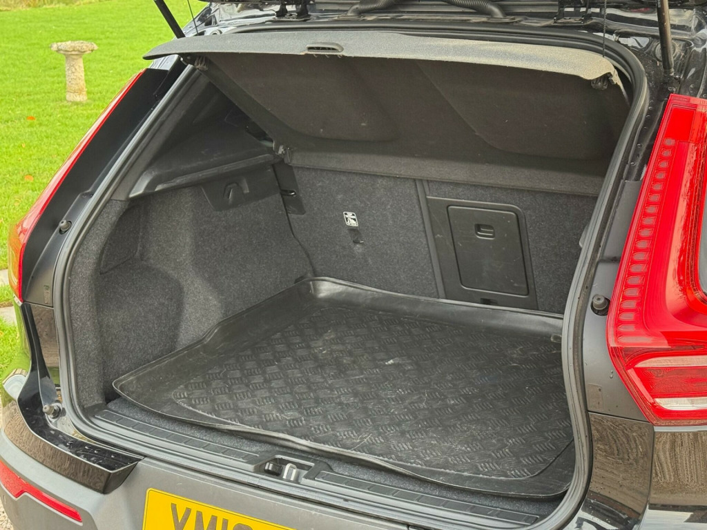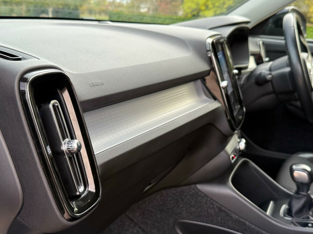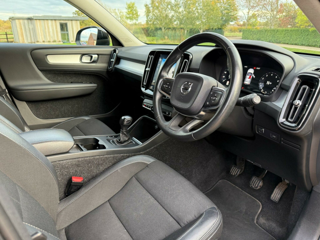 Manor Cars are proud to offer this fantastic example of the Volvo XC40. Finished in Metallic Black with a Black Half Leather Interior. Complete with 2 keys, Full Service History, as well as being in a fantastic condition inside and out. Buy with confidence from our friendly, family run business with flexible viewing times 7 days a week, please call for a viewing. All our vehicles are thoroughly checked HPi clear, complete with a certificate. Comprehensive warranty included. We offer a wide range of finance options with low rates including HP, PCP and can also cater for poor credit circumstances. All major credit/debit cards accepted, All part exchanges are welcome .3in active tft crystal drivers information display, 12v socket - front tunnel console, 18in alloy wheels - 5 spoke, 2-zone electronic climate control with cleanzone air quality system with pollen filter and cooled glovebox, 3 spoke leather steering wheel with chrome trim, 9in centre console portrait touch screen, a-pillar parking ticket holder, adaptive brake lights including high level led brake light, adjustable steering force, anti-theft alarm including immobiliser - volume sensor and level sensor, auto dimming rear view mirror, automatic headlight levelling system, automatic led headlights with active high beam incorporating day running lights, bluetooth handsfree system, centre console cupholders and storage, city safety, colour co-ordinated power adjustable and heated door mirrors, cruise control, dab - digital audio broadcasting radio, dark grey front grille with chrome surround, drive mode settings, driver knee airbag, drivers side lower dashboard credit card storage compartment, dual stage driver and passenger airbags, dynamic chassis, first aid kit, floor mats, front door tread plates, front footwell lighting, front reading lights - theatre lighting and glovebox illumination, front and rear power windows, gear knob - leather, glovebox bag hook, height adjustable passenger seat with multi-directional lumbar support, height and reach adjustable steering column, height and tilt adjustable driver seat with multi-directional lumbar support, high gloss silver front and rear skid plate, hill descent control, hill start assist, home safe and approach lighting, ic - inflatable curtains - full length, isofix attachment - outer rear seats, illuminated vanity mirrors with ticket holder, key integrated remote control central locking including fuel flap with deadlocking system and auto open-close power windows, keyless start, lane keeping aid with driver alert control, locking wheel nuts, luggage compartment illumination, mechanical child locks - rear doors, oncoming lane mitigation, passenger airbag cut-off switch, power parking brake with auto hold function, private locking for tailgate, rain sensor - automatic windscreen wiper activation, rear armrest with storage and cupholders, rear park assist, road sign information display, roof antenna, roof rails - integrated silver, roof spoiler, run-off road mitigation, run-off road protection, sips - side impact protection system, sips airbags - front seats, seatbelt reminder and pretensioners, sensus connect with high performance sound, sensus navigation, speed limiter, speed sensitive steering, stability and traction control, steering wheel remote infotainment controls, tyre pressure monitoring system, tyre sealant kit and compressor, underfloor cargo storage, urban grid aluminium inlays, vehicle deceleration control, versatile split folding rear seats - 60-40, visible vin plate, voice activated control for key functions, volvo on call with app, whips - whiplash protection system - front seats, warning triangle, rear park assist camera, smartphone integration includes apple carplay and android auto - with 2 type a x usb hub, textile-vinyl - charcoal