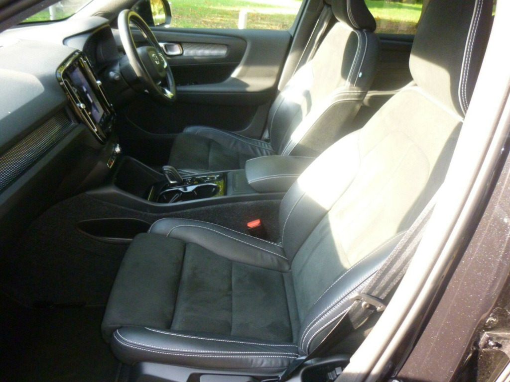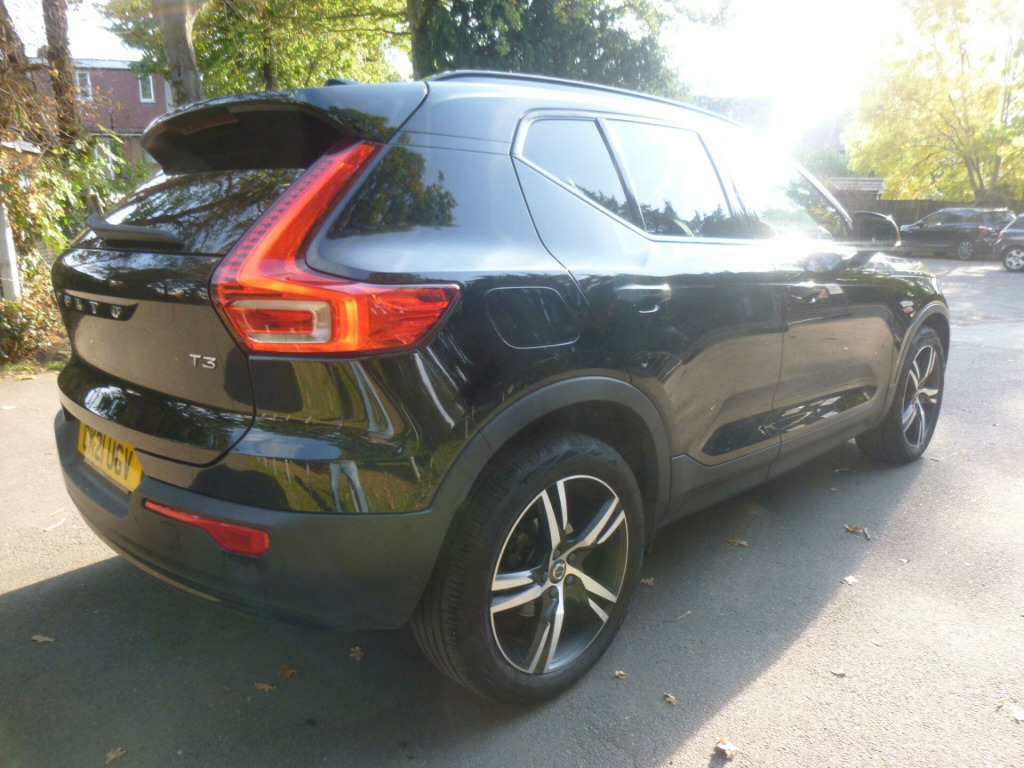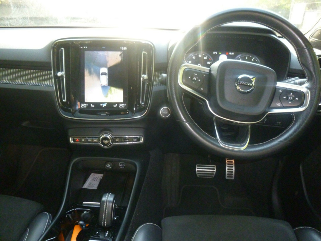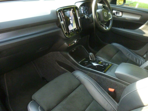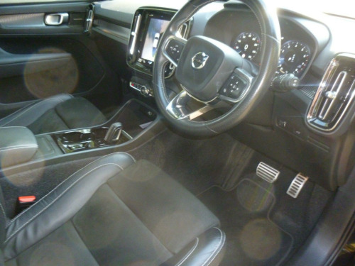 This 2021 Volvo XC40 T3 R Design boasts a clear vehicle history, offering you peace of mind. This stylish SUV is powered by a 1.5 litre Euro 6 petrol engine, delivering a responsive drive with a 0-60mph time of 9.1 seconds. The R Design trim enhances its sporty appeal, and you'll find it equipped with Intellisafe Surround, including Blind Spot Assistance, for added safety. Enjoy an open and airy cabin with the power glass tilt and slide panoramic sunroof, complete with a sun curtain.Inside, the Sensus Connect system features a premium sound system by Harman Kardon, ensuring an exceptional audio experience. The Lounge Pack adds further convenience with Android Auto and Apple CarPlay integration, a fixed panoramic sunroof, and a 360 degree parking camera system alongside front and rear parking sensors. The Versatility Pack includes keyless entry for effortless access. This XC40 also offers generous boot space, making it practical for all your needs, and these features collectively demonstrate how this vehicle offers a superior experience compared to others in its class. unge pack, driver assist, power glass tilt and slide panoramic sunroof with sun curtain, climate pack, intellisafe surround, sensus connect with premium sound by harman kardon, 19in alloy wheels - 5 double spoke - diamond cut - matt black, versatility pack, smartphone integration includes apple carplay and android auto - with 2 type a x usb hub, wireless-inductive mobile phone charging, leather-nubuck - charcoal, parking camera 360 surround view with autodimming exterior rear view mirrors, power operated tailgate, 12.3in active tft crystal drivers information display, 12v socket - front tunnel console and cargo compartment, 2-zone electronic climate control with cooled glovebox and rear air vents, 9in centre console portrait touch screen, abs - anti-lock brake system, adaptive brake lights including high level led brake light, adjustable steering force, ambient door and instrument panel lighting, anti-theft alarm including immobiliser - volume sensor and level sensor, autodimming interior mirror, autofolding heated power door mirrors, automatic headlight levelling system, automatic led headlights with active high beam incorporating day running lights, black headlining, black stone door mirrors, black stone roof, bluetooth handsfree system, care key with user defined top speed, centre console cupholders and storage, city safety, cruise control, cutting edge aluminium inlays, dab - digital audio broadcasting radio, dark tinted windows - rear side windows and cargo area, drive mode settings, driver knee airbag, drivers side lower dashboard credit card storage compartment, dual stage driver and passenger airbags, electronic climate control with cleanzone air quality system with pollen filter, first aid kit, front aluminium tread plates, front door pocket and front cupholder illumination, front footwell illumination, front led foglights, front reading lights and theatre lighting, front seat cushion extensions, front tunnel net pocket and integrated waste bin, front and rear power windows, gear knob - leather, glovebox bag hook, height and reach adjustable steering column, height and tilt adjustable driver seat, high gloss black deco lower front bumper, high gloss black front and rear skid plate, high gloss black mesh front grille with high gloss black surround, high gloss black window trim surround, high gloss centre tunnel deco, hill descent control, hill start assist, home safe and approach lighting, ic - inflatable curtains - full length, isofix attachment - outer rear seats, illuminated vanity mirrors, key integrated remote control central locking including fuel flap with deadlocking system and auto open-close power windows, keyless start, lane keeping aid with driver alert control, load protection net, lockable glovebox compartment with illumination, locking wheel nuts, luggage compartment illumination, mechanical child locks - rear doors, multi-directional lumbar support, multicolour theatre lighting, oncoming lane mitigation, p-sim card - access to 1 year - 100gb of data, passenger airbag cut-off switch, power operated tailgate, power parking brake with auto hold function, private locking for tailgate, rain sensor - automatic windscreen wiper activation, rear armrest with storage and cupholders, rear clothes hook, rear park assist, rear reading and courtesy lights, road sign information display, roof antenna, roof rails - integrated high gloss black, roof spoiler, run-off road mitigation, run-off road protection, sips - side impact protection system, sips airbags - front seats, seatbelt reminder and pretensioners, seats - passenger height adjustment, sensus connect with high performance sound, sensus navigation, slippery road and hazard light alert, speed limiter, speed sensitive steering, sports chassis, sports floor mats, sports leather steering wheel, sports pedals, stability and traction control, steering wheel remote infotainment controls, tailgate illumination, tyre pressure monitoring system, tyre sealant kit and compressor, underfloor cargo storage, vanity mirrors with ticket holder, vehicle deceleration control, versatile split folding rear seats - 60-40, visible vin plate, voice activated control for key functions, volvo on call with app, whips - whiplash protection system - front seats, warning triangle