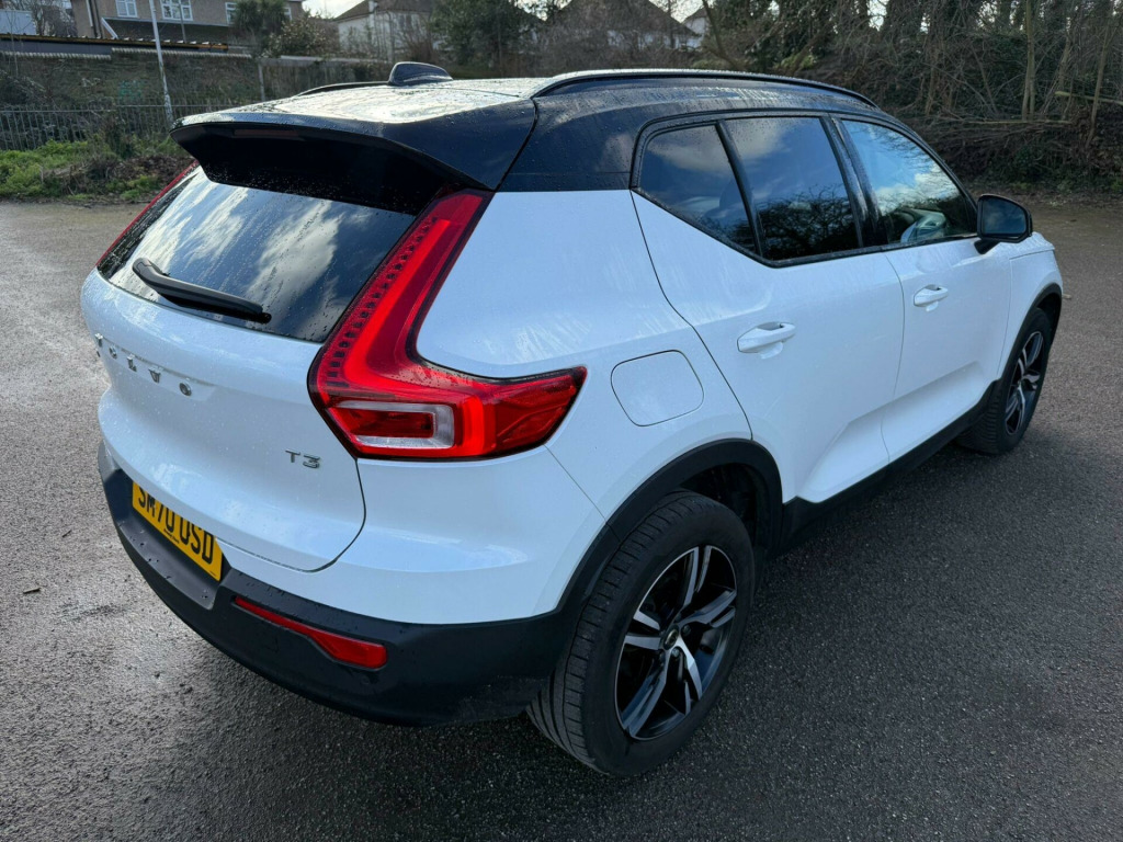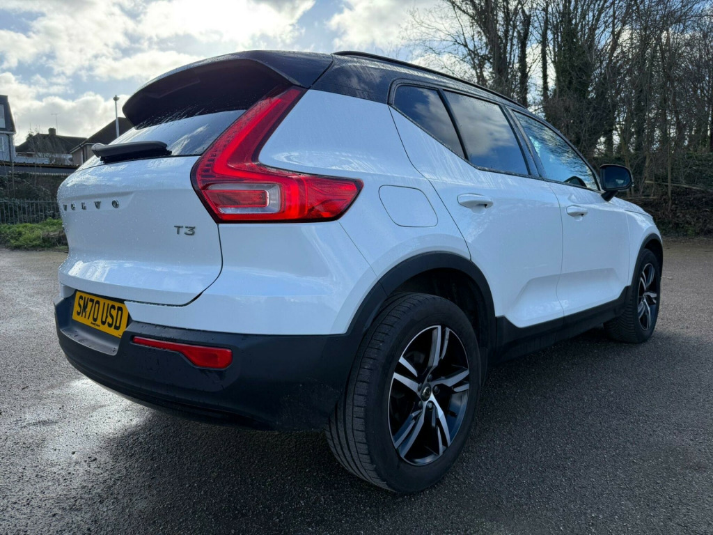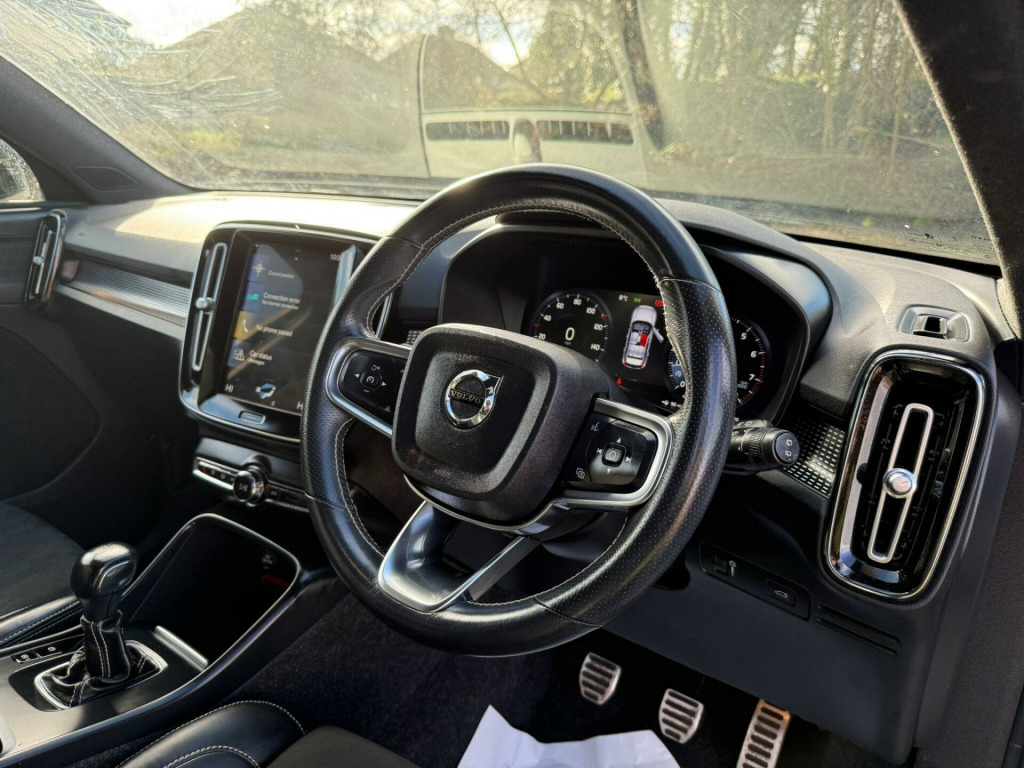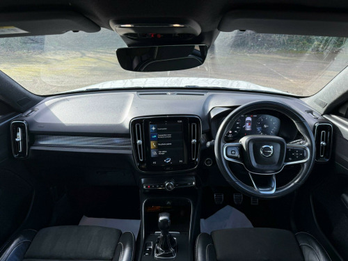 This 2021 Volvo XC40 T3 R Design is a superb example, having been owned by just one careful keeper since new. This stylish SUV boasts a 1.5 litre Euro 6 petrol engine, offering a responsive drive with a 0-60mph time of just 8.8 seconds. Inside, you'll find a host of convenient features designed to enhance your journey, including a Bluetooth handsfree system for seamless connectivity and 2 zone electronic climate control with rear air vents to ensure comfort for all occupants. The R Design trim also includes automatic LED headlights with active high beam and day running lights, providing excellent visibility in all conditions.Parking is made effortless thanks to the comprehensive Park Assist system, which incorporates both a rear camera and rear parking sensors. The XC40 R Design also offers a generously sized boot, providing ample space for shopping, luggage, or any other essentials you need to carry. These features, combined with its impressive acceleration and single owner provenance, clearly set this Volvo XC40 apart from other vehicles in its class, offering a refined and practical driving experience.. 12.3in Active TFT Crystal Drivers Information Display, 12V Socket - Front Tunnel Console and Cargo Compartment, 18in Alloy Wheels - 5 Double Spoke Diamond Cut Matt Black, 2-Zone Electronic Climate Control with Cooled Glovebox and Rear Air Vents, 9in Centre Console Portrait Touch Screen, A-Pillar Parking Ticket Holder, Adaptive Brake Lights including High Level LED Brake Light, Adjustable Steering Force, Ambient Door and Instrument Panel Lighting, Anti-Theft Alarm including Immobiliser - Volume Sensor and Level Sensor, Auto Dimming Rear View Mirror, Autofolding Heated Power Door Mirrors, Automatic Headlight Levelling System, Automatic LED Headlights with Active High Beam incorporating Day Running Lights, Black Headlining, Black Stone Door Mirrors, Black Stone Roof, Bluetooth Handsfree System, Bright Metal Luggage Compartment Threshold, Centre Console Cupholders and Storage, City Safety, Cruise Control, Cutting Edge Aluminium Inlays, DAB - Digital Audio Broadcasting Radio, Dark Tinted Windows - Rear Side Windows and Cargo Area, Drive Mode Settings, Driver Knee Airbag, Drivers Side Lower Dashboard Credit Card Storage Compartment, Dual Integrated Exhaust Pipes with High Gloss Black Surround, Dual Stage Driver and Passenger Airbags, Embossed Rear Side Roof Pillar, First Aid Kit, Front Door Pocket and Front Cupholder Illumination, Front Footwell Lighting, Front LED Foglights, Front Reading Lights - Theatre Lighting and Glovebox Illumination, Front Seat Cushion Extensions, Front and Rear Power Windows, Glovebox Bag Hook, Height Adjustable Passenger Seat with Multi-Directional Lumbar Support, Height and Reach Adjustable Steering Column, Height and Tilt Adjustable Driver Seat with Multi-Directional Lumbar Support, High Gloss Black Deco Lower Front Bumper, High Gloss Black Front and Rear Skid Plate, High Gloss Black Mesh Front Grille with High Gloss Black Surround, High Gloss Black Sensus Surround Deco, High Gloss Black Window Trim Surround, Hill Descent Control, Hill Start Assist, Home Safe and Approach Lighting, IC - Inflatable Curtains - Full Length, ISOFIX Attachment - Outer Rear Seats, Illuminated Vanity Mirrors with Ticket Holder, Interior Trim - R-Design Aluminium, Key Integrated Remote Control Central Locking including Fuel Flap with Deadlocking System and Auto Open-Close Power Windows, Keyless Start, Lane Keeping Aid with Driver Alert Control, Leather Coloured Key Integrated Remote, Load Protection Net, Lockable Glovebox, Locking Wheel Nuts, Luggage Compartment Illumination, Mechanical Child Locks - Rear Doors, Multicolour Theatre Lighting, Oncoming Lane Mitigation, P-SIM Card - Access to 1 Year - 100GB of Data, Passenger Airbag Cut-Off Switch, Perforated Leather Gear Knob, Perforated Leather Steering Wheel, Power Parking Brake with Auto Hold Function, Private Locking for Tailgate, R-Design Front Door Tread Plates, Rain Sensor - Automatic Windscreen Wiper Activation, Rear Armrest with Storage and Cupholders, Rear Clothes Hook, Rear Park Assist, Rear Reading and Courtesy Lights, Road Sign Information Display, Roof Antenna, Roof Rails - Integrated High Gloss Black, Roof Spoiler, Run-Off Road Mitigation, Run-Off Road Protection, SIPS - Side Impact Protection System, SIPS Airbags - Front Seats, Seatbelt Reminder and Pretensioners, Sensus Connect with High Performance Sound, Sensus Navigation, Slippery Road and Hazard Light Alert, Speed Limiter, Speed Sensitive Steering, Sports Chassis, Sports Floor Mats, Sports Pedals, Stability and Traction Control, Steering Wheel Remote Infotainment Controls, Tailgate Illumination, Tyre Pressure Monitoring System, Tyre Sealant Kit and Compressor, Underfloor Cargo Storage, Vehicle Deceleration Control, Versatile Split Folding Rear Seats - 60-40, Visible VIN Plate, Voice Activated Control for Key Functions, Volvo On Call with App, WHIPS - Whiplash Protection System - Front Seats, Warning Triangle, Park Assist, Leather-Nubuck - Charcoal. Full dealership history