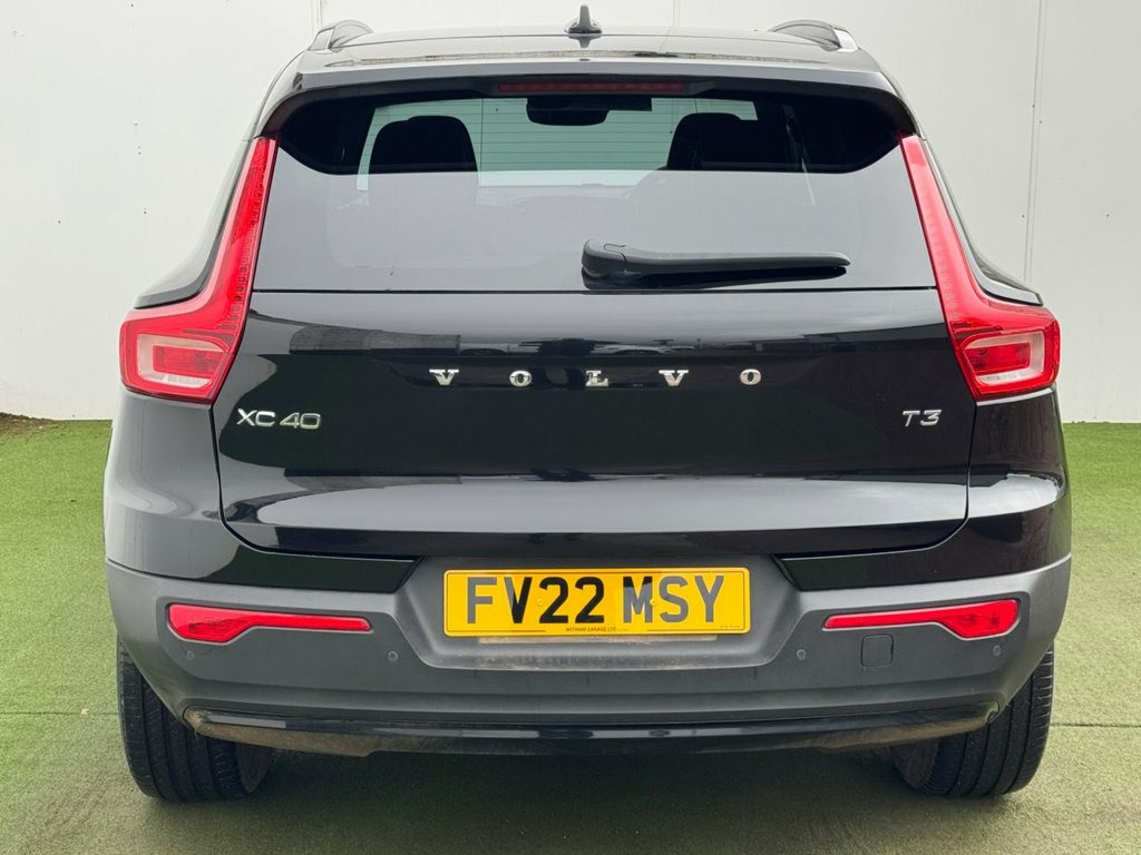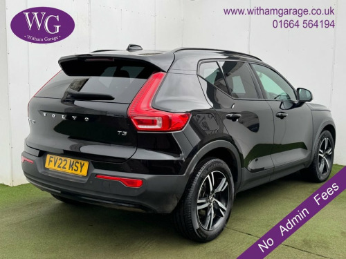 This 2022 Volvo XC40 T3 R Design is a superb example, having been owned by just one careful keeper since new. This stylish SUV is powered by a responsive 1.5 litre petrol engine, meeting Euro 6 emissions standards. Inside, you'll find a host of convenient features designed to enhance your driving experience, including wireless inductive mobile phone charging, and a Climate Pack that offers heated seats and a heated steering wheel for ultimate comfort. Smartphone integration is seamless with Apple CarPlay and Android Auto, supported by a 2 Type A x USB hub. The XC40 T3 R Design also boasts impressive driver assistance technology. The Driver Assist package includes Blind Spot Assistance (BLIS) and Adaptive Cruise Control, making journeys safer and more relaxed. Parking is made simple with the rear camera and parking assistance system. With a brisk 0-60mph acceleration time of just 9.1 seconds, this Volvo XC40 offers a compelling blend of performance, comfort, and advanced technology, setting it apart from other vehicles in its class. 12.3in Active TFT Crystal Drivers Inform, 12V Socket - Front Tunnel Console and Ca, 18in Alloy Wheels - 5 Double Spoke Diamo, 2-Zone Electronic Climate Control with C, 9in Centre Console Portrait Touch Screen, ABS - Anti-Lock Brake System, Adaptive Brake Lights including High Lev, Adjustable Steering Force, Ambient Door and Instrument Panel Lighti, Anti-Theft Alarm including Immobiliser -, Autodimming Interior Mirror, Autofolding Heated Power Door Mirrors, Automatic Headlight Levelling System, Automatic LED Headlights with Active Hig, Black Headlining, Black Stone Door Mirrors, Black Stone Roof, Bluetooth Handsfree System, Care Key with User Defined Top Speed, Centre Console Cupholders and S