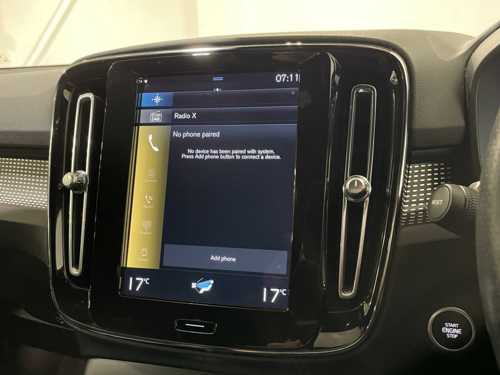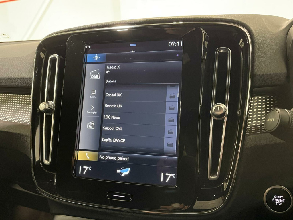 FINANCE & PART EXCHANGE AVAILABLE* - Only 2 registered keepers & 38,238 miles from new, VOLVO MAIN DEALER SERVICE HISTORY, 2 KEYS - this SUPERB PETROL VOLVO XC40 R-DESIGN is finished in stunning sports Onyx black & is complimented with contrasting full black leather & alcantara sports trim and extends itself to the following additional features - Volvo R-Design Sports styling, on board satellite navigation system, dual zone climate control / automatic air conditioning, trip computer, cruise control with speed limiter, leather trimmed multi function steering wheel, rear park distance control, Bluetooth telephone prep, DAB digital radio, media input, voice command, keyless start, start / stop, lane keeping aid, hill start assist, city safety, road sign information display, speed sign assist, collision avoidance, slippery road & hazard light alert, electric tailgate, roof rails, drive mode settings, electric folding & heated exterior mirrors, active high beam, privacy glass, lumbar support, LED auto headlights, rain sensor, power assisted steering, abs, airbags, electric windows, remote central locking, head restraints, Volvo 18'' sports alloy wheels, Volvo anti theft system. ***FINANCE AVAILABLE - subject to status. T&C's apply.***PART EXCHANGE AVAILABLE***ALL VEHICLES ARE HPI & NATIONAL MILEAGE REGISTER CHECKED***THE AA WARRANTY IS SUBJECT TO TERMS & CONDITIONS AND DOES NOT COVER VEHICLES THAT ARE BEING USED FOR TAXI, PRIVATE HIRE, CHAUFFEURING PURPOSES OR FOR REWARD.***Please note, that the specifications/components/features etc. are generic to that vehicle of the type advertised but may not be included in the specific vehicle that is for sale. It is for the intended purchaser to satisfy themselves of the presence or absence of any specifications/components/features before sale. Please ask if you are uncertain of anything and we will see if we can assist.. 12.3in Active TFT Crystal Drivers Information Display, 12V Socket - Front Tunnel Console and Cargo Compartment, 18in Alloy Wheels - 5 Double Spoke Diamond Cut Matt Black, 2-Zone Electronic Climate Control with Cooled Glovebox and Rear Air Vents, 9in Centre Console Portrait Touch Screen, A-Pillar Parking Ticket Holder, Adaptive Brake Lights including High Level LED Brake Light, Adjustable Steering Force, Ambient Door and Instrument Panel Lighting, Anti-Theft Alarm including Immobiliser - Volume Sensor and Level Sensor, Auto Dimming Rear View Mirror, Autofolding Heated Power Door Mirrors, Automatic Headlight Levelling System, Automatic LED Headlights with Active High Beam incorporating Day Running Lights, Black Headlining, Black Stone Door Mirrors, Black Stone Roof, Bluetooth Handsfree System, Bright Metal Luggage Compartment Threshold, Centre Console Cupholders and Storage, City Safety, Cruise Control, Cutting Edge Aluminium Inlays, DAB - Digital Audio Broadcasting Radio, Dark Tinted Windows - Rear Side Windows and Cargo Area, Drive Mode Settings, Driver Knee Airbag, Drivers Side Lower Dashboard Credit Card Storage Compartment, Dual Integrated Exhaust Pipes with High Gloss Black Surround, Dual Stage Driver and Passenger Airbags, Embossed Rear Side Roof Pillar, First Aid Kit, Front Door Pocket and Front Cupholder Illumination, Front Footwell Lighting, Front LED Foglights, Front Reading Lights - Theatre Lighting and Glovebox Illumination, Front Seat Cushion Extensions, Front and Rear Power Windows, Glovebox Bag Hook, Height Adjustable Passenger Seat with Multi-Directional Lumbar Support, Height and Reach Adjustable Steering Column, Height and Tilt Adjustable Driver Seat with Multi-Directional Lumbar Support, High Gloss Black Deco Lower Front Bumper, High Gloss Black Front and Rear Skid Plate, High Gloss Black Mesh Front Grille with High Gloss Black Surround, High Gloss Black Sensus Surround Deco, High Gloss Black Window Trim Surround, Hill Descent Control, Hill Start Assist, Home Safe and Approach Lighting, IC - Inflatable Curtains - Full Length, ISOFIX Attachment - Outer Rear Seats, Illuminated Vanity Mirrors with Ticket Holder, Interior Trim - R-Design Aluminium, Key Integrated Remote Control Central Locking including Fuel Flap with Deadlocking System and Auto Open-Close Power Windows, Keyless Start, Lane Keeping Aid with Driver Alert Control, Leather Coloured Key Integrated Remote, Load Protection Net, Lockable Glovebox, Locking Wheel Nuts, Luggage Compartment Illumination, Mechanical Child Locks - Rear Doors, Multicolour Theatre Lighting, Oncoming Lane Mitigation, P-SIM Card - Access to 1 Year - 100GB of Data, Passenger Airbag Cut-Off Switch, Perforated Leather Gear Knob, Perforated Leather Steering Wheel, Power Parking Brake with Auto Hold Function, Private Locking for Tailgate, R-Design Front Door Tread Plates, Rain Sensor - Automatic Windscreen Wiper Activation, Rear Armrest with Storage and Cupholders, Rear Clothes Hook, Rear Park Assist, Rear Reading and Courtesy Lights, Road Sign Information Display, Roof Antenna, Roof Rails - Integrated High Gloss Black, Roof Spoiler, Run-Off Road Mitigation, Run-Off Road Protection, SIPS - Side Impact Protection System, SIPS Airbags - Front Seats, Seatbelt Reminder and Pretensioners, Sensus Connect with High Performance Sound, Sensus Navigation, Slippery Road and Hazard Light Alert, Speed Limiter, Speed Sensitive Steering, Sports Chassis, Sports Floor Mats, Sports Pedals, Stability and Traction Control, Steering Wheel Remote Infotainment Controls, Tailgate Illumination, Tyre Pressure Monitoring System, Tyre Sealant Kit and Compressor, Underfloor Cargo Storage, Vehicle Deceleration Control, Versatile Split Folding Rear Seats - 60-40, Visible VIN Plate, Voice Activated Control for Key Functions, Volvo On Call with App, WHIPS - Whiplash Protection System - Front Seats, Warning Triangle, ABS - Anti-Lock Brake System, Autodimming Interior Mirror, Care Key with User Defined Top Speed, Elect.