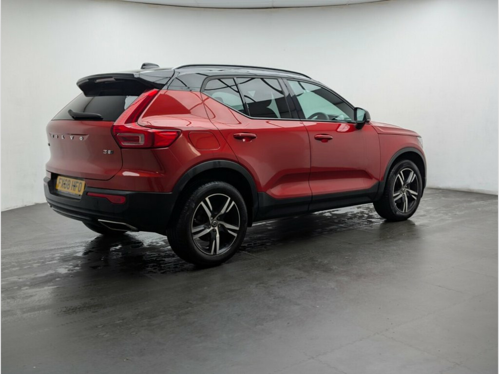18" alloys, Leather seats, Navigation, Cruise control and Parking sensors. 5 services - last service done at 330148 miles on 28/11/2025. This 2018 Volvo XC40 T3 R Design presents an exceptional proposition with its remarkably low mileage of just 33085 miles, a significant advantage for a vehicle of its age. This Euro 6 compliant 1.5 litre petrol model boasts an MOT valid until November 2026 and a clear vehicle history check, offering peace of mind. The R Design trim level enhances its appeal, featuring a high gloss silver front and rear skid plate, autofolding door mirrors, and a 12V socket in the front tunnel console. Experience superior comfort and convenience with features like the heated steering wheel and the 2 zone electronic climate control, which includes the CleanZone Air Quality System with a pollen filter and a cooled glovebox. This XC40 is engineered for responsive performance, achieving 0-60mph in a swift 9.0 seconds, demonstrating its capability compared to other vehicles in its class. These carefully selected features and its excellent condition make this Volvo XC40 a compelling choice. 12.3in Active TFT Crystal Drivers Inform, 12V Socket - Front Tunnel Console, 18in Alloy Wheels - 5 Double Spoke Diamo, 2-Zone Electronic Climate Control with C, 9in Centre Console Portrait Touch Screen, A-Pillar Parking Ticket Holder, Adaptive Brake Lights including High Lev, Adjustable Steering Force, Ambient Door and Instrument Panel Lighti, Anti-Theft Alarm including Immobiliser -, Auto Dimming Rear View Mirror, Autofolding Door Mirrors, Automatic Headlight Levelling System, Automatic LED Headlights with Active Hig, Black Headlining, Black Stone Door Mirrors, Black Stone Roof, Bluetooth Handsfree System, Bright Metal Luggage Compartment Thresho, Centre Console Cupholders and Storage, City