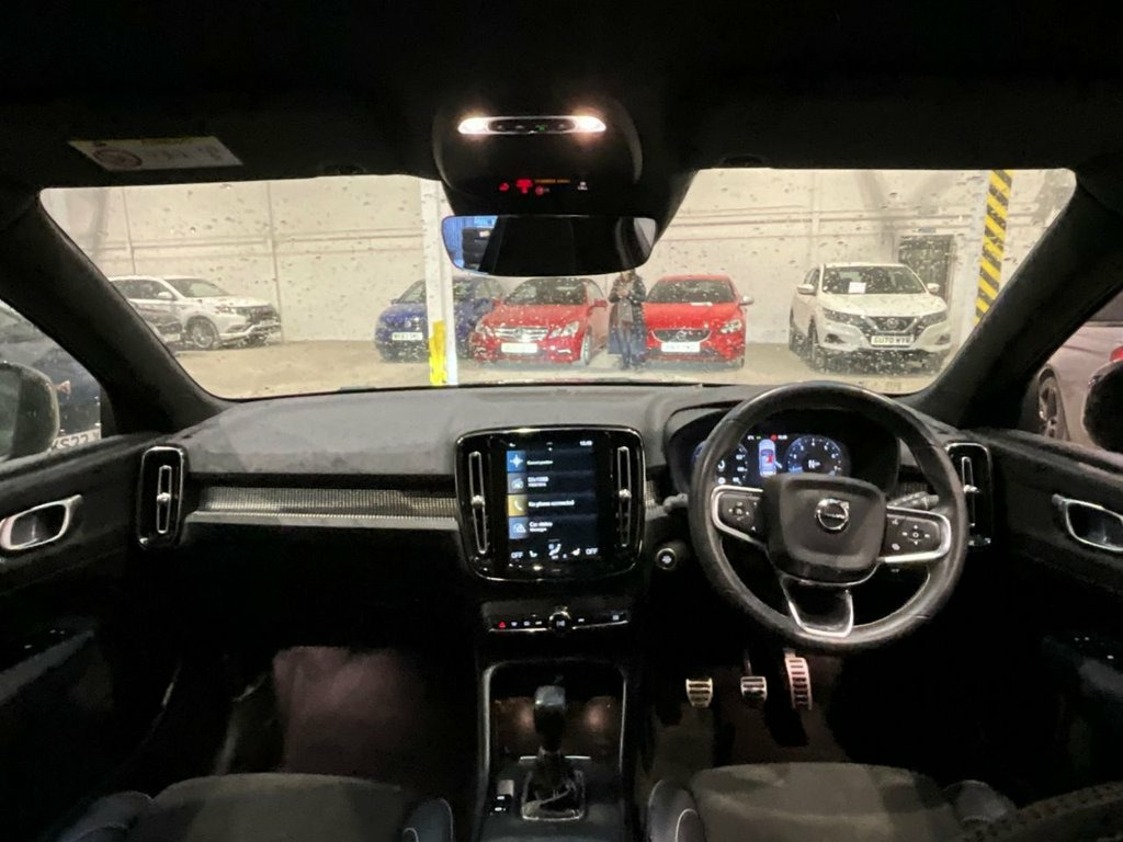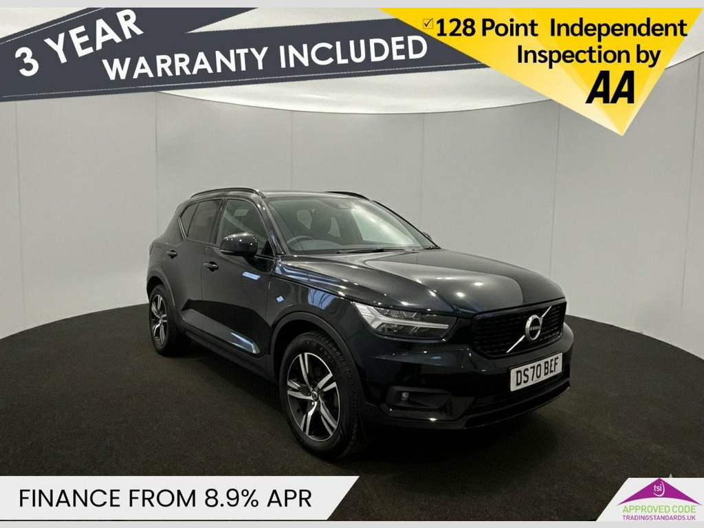 This 2020 Volvo XC40 T3 R Design presents an exceptional ownership proposition with its remarkably low mileage of just 25,434 miles, having been cherished by only one owner since new. This Euro 6 compliant 1.5 litre petrol model boasts a clear vehicle history check, offering peace of mind. Inside, you'll find the desirable Climate Pack, which includes heated seats and a heated steering wheel, complemented by 2 zone electronic climate control and rear air vents for all round comfort. Navigating tight spots is made easier with rear park assist, while automatic LED headlights with active high beam and integrated day running lights ensure excellent visibility. Stay connected on the go with the integrated Bluetooth handsfree system. Experience the responsive performance of this XC40, capable of accelerating from 0 to 60mph in a brisk 8.8 seconds. The generous boot space is a standout feature, offering ample room for all your luggage and shopping needs, indicating its practicality compared to other vehicles in its class. The R Design trim further enhances its appeal, combining sophisticated styling with the renowned Volvo safety and comfort standards. 12.3in Active TFT Crystal Drivers Inform, 12V Socket - Front Tunnel Console and Ca, 18in Alloy Wheels - 5 Double Spoke Diamo, 2-Zone Electronic Climate Control and Re, 9in Centre Console Portrait Touch Screen, A-Pillar Parking Ticket Holder, Adaptive Brake Lights including High Lev, Adjustable Steering Force, Ambient Door and Instrument Panel Lighti, Anti-Theft Alarm including Immobiliser -, Autodimming Interior Mirror, Autofolding Heated Power Door Mirrors, Automatic Headlight Levelling System, Automatic LED Headlights with Active Hig, Black Stone Door Mirrors, Black Stone Roof, Bluetooth Handsfree System, Care Key with User Defined Top Speed, Centre Console Cupholders and Storage, City Saf