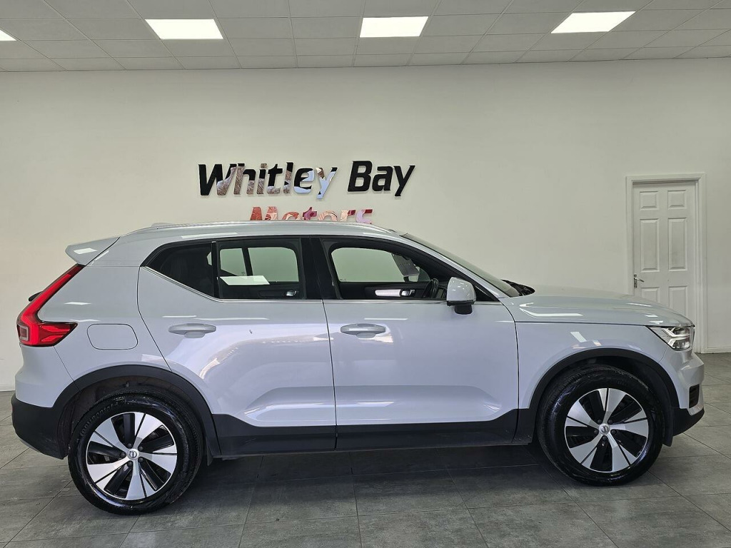 89310 Miles, 1 owner , Volvo Main Dealer service History, Finished in Glacier Silver with Charcoal cloth Upholstery and 18'' Diamond cut Alloy Wheels.The Specification includes; LED Headlights, Reverse parking sensors, Isofix, Front and Rear Heated Seats, Digital Dashboard display, Multi function steering wheel, Electric mirrors/windows, Cruise control, Satellite Navigation, DAB Radio, Apple car play/Android, Bluetooth, Two Remote central locking Keys.Please see the 'Vehicle Equipment' tab on our website for full specification.Please call our experienced sales team on 0191 4153540 for any additional specification query, an in-depth appraisal/video call or maybe we can help fund your new car. All of our vehicles are subject to a £199 Service Support Fee and are therefore supplied with 12 months MOT, Full Pre Delivery Service, 6 Months Complimentary In-House Warranty, Premium Pre-Collection Valet, Fuel for Your First Journey and a HPI Certificate. We offer a wide range of Finance and Warranty packages as well as fantastic trade rates for alloy wheel refurbs/colour changes, window tinting and much more.. 12V Socket - Front Tunnel Console and Cargo Compartment, 9in Centre Console Portrait Touch Screen, Bluetooth Handsfree System, DAB - Digital Audio Broadcasting Radio, P-SIM Card - Access to 1 Year - 100GB of Data, Roof Antenna, Sensus Connect with High Performance Sound, Sensus Navigation, Volvo Cars Services with App, 12.3in Active TFT Crystal Drivers Information Display, Cruise Control, Drive Mode Settings, Rear Park Assist, Road Sign Information Display, Tyre Pressure Monitoring System, Voice Activated Control for Key Functions, 18in Alloy Wheels - 5 Spoke - Diamond Cut - High Gloss Black, Chrome Window Trim, Colour Co-Ordinated Autofolding Heated Power Door Mirrors, Front and Rear Power Windows, High Gloss Black Front Grille with Chrome Inserts, Locking Wheel Nuts, Recharging Port Located in Nearside Front Wing, Roof Rails - Integrated Silver, Roof Spoiler, Tyre Sealant Kit and Compressor, Automatic Headlight Levelling System, Automatic LED Headlights with Active High Beam incorporating Day Running Lights, Home Safe and Approach Lighting, 2-Zone Electronic Climate Control and Rear Air Vents, 3 Spoke Tailored Steering Wheel with Chrome Trim, A-Pillar Parking Ticket Holder, Autodimming Interior Mirror, Centre Console Cupholders and Storage, Floor Mats, Front Footwell Illumination, Front Reading Lights and Theatre Lighting, Front Tunnel Net Pocket and Integrated Waste Bin, Glovebox Bag Hook, Glovebox Compartment Illumination, Height and Reach Adjustable Steering Column, Height and Tilt Adjustable Driver Seat, Illuminated Vanity Mirrors, Keyless Start, Load Protection Net, Luggage Compartment Illumination, Power Operated Tailgate, Rain Sensor - Automatic Windscreen Wiper Activation, Rear Armrest with Storage and Cupholders, Rear Clothes Hook, Rear Reading and Courtesy Lights, Seats - Passenger Height Adjustment, Steering Wheel Remote Infotainment Controls, Tailgate Illumination, Underfloor Cargo Storage, Urban Grid Aluminium Inlays, Vanity Mirrors with Ticket Holder, Versatile Split Folding Rear Seats - 60-40, 7m 10amp Charge Cable with 3-Pin Plug and 7m 1-Phase 16amp Type 2-Mode 3 Charge Cable, Adjustable Steering Force, Dynamic Chassis, Electric Front Axle Drive, Speed Limiter, Speed Sensitive Steering, Adaptive Brake Lights including High Level LED Brake Light, Anti-Theft Alarm including Immobiliser - Volume Sensor and Level Sensor, Care Key with User Defined Top Speed, City Safety, Driver Knee Airbag, Dual Stage Driver and Passenger Airbags, First Aid Kit, High Gloss Silver Front and Rear Skid Plate, Hill Descent Control, Hill Start Assist, IC - Inflatable Curtains - Full Length, ISOFIX Attachment - Outer Rear Seats, Key Integrated Remote Control Central Locking including Fuel Flap with Deadlocking System and Auto Open-Close Power Windows, Lane Keeping Aid with Driver Alert Control, Low Speed Exterior Sound Speaker, Mechanical Child Locks - Rear Doors, Oncoming Lane Mitigation, Passenger Airbag Cut-Off Switch, Power Parking Brake with Auto Hold Function, Private Locking for Tailgate, Run-Off Road Mitigation, Run-Off Road Protection, Seatbelt Reminder and Pretensioners, SIPS - Side Impact Protection System, SIPS Airbags - Front Seats, Slippery Road and Hazard Light Alert, Stability and Traction Control, Vehicle Deceleration Control, Visible VIN Plate, Warning Triangle, WHIPS - Whiplash Protection System - Front Seats, Climate Pack, Glacier Silver, Textile-Vinyl - Grey Malange.