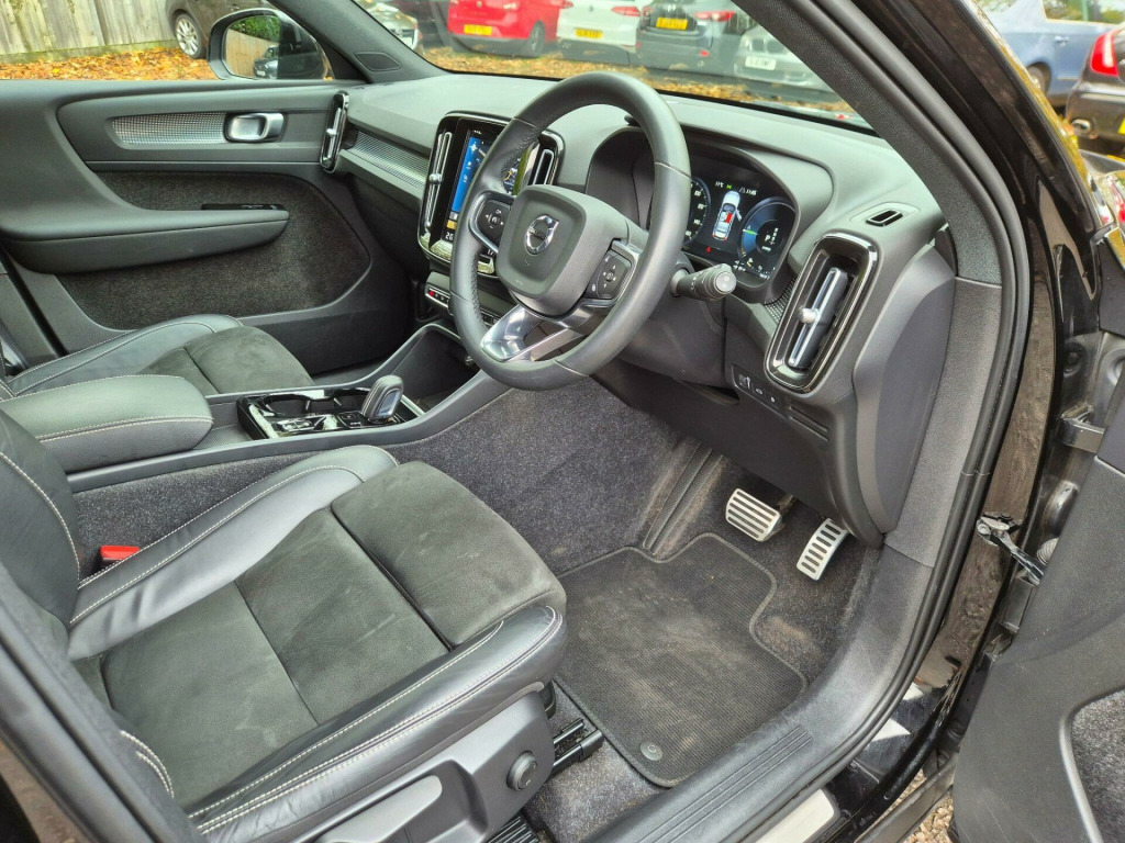 Competitive finance available, full service history. 12.3in Active TFT Crystal Drivers Information Display, 12V Socket - Front Tunnel Console and Cargo Compartment, 19in Alloy Wheels - 5 Double Spoke - Diamond Cut - Matt Black, 2-Zone Electronic Climate Control with Cooled Glovebox and Rear Air Vents, 7m Charge Cable with 3 Pin Plug, 9in Centre Console Portrait Touch Screen, ABS - Anti-Lock Brake System, Adaptive Brake Lights including High Level LED Brake Light, Adjustable Steering Force, Ambient Door and Instrument Panel Lighting, Anti-Theft Alarm including Immobiliser - Volume Sensor and Level Sensor, Autodimming Interior Mirror, Autofolding Heated Power Door Mirrors, Automatic Headlight Levelling System, Automatic LED Headlights with Active High Beam incorporating Day Running Lights, Black Headlining, Black Stone Door Mirrors, Black Stone Roof, Bluetooth Handsfree System, Care Key with User Defined Top Speed, Centre Console Cupholders and Storage, City Safety, Cruise Control, Cutting Edge Aluminium Inlays, DAB - Digital Audio Broadcasting Radio, Dark Tinted Windows - Rear Side Windows and Cargo Area, Drive Mode Settings, Driver Knee Airbag, Drivers Side Lower Dashboard Credit Card Storage Compartment, Dual Stage Driver and Passenger Airbags, Electric Front Axle Drive, Electronic Climate Control with CleanZone Air Quality System with Pollen Filter, First Aid Kit, Front Aluminium Tread Plates, Front Door Pocket and Front Cupholder Illumination, Front Footwell Illumination, Front LED Foglights, Front Reading Lights and Theatre Lighting, Front Seat Cushion Extensions, Front and Rear Power Windows, Gear Knob - Leather, Glovebox Bag Hook, Height and Reach Adjustable Steering Column, Height and Tilt Adjustable Driver Seat, High Gloss Black Deco Lower Front Bumper, High Gloss Black Front and Rear Skid Plate, High Gloss Black Mesh Front Grille with High Gloss Black Surround, High Gloss Black Window Trim Surround, High Gloss Centre Tunnel Deco, Hill Descent Control, Hill Start Assist, Home Safe and Approach Lighting, IC - Inflatable Curtains - Full Length, ISOFIX Attachment - Outer Rear Seats, Illuminated Vanity Mirrors, Key Integrated Remote Control Central Locking including Fuel Flap with Deadlocking System and Auto Open-Close Power Windows, Keyless Start, Lane Keeping Aid with Driver Alert Control, Load Protection Net, Lockable Glovebox Compartment with Illumination, Locking Wheel Nuts, Luggage Compartment Illumination, Mechanical Child Locks - Rear Doors, Multi-Directional Lumbar Support, Multicolour Theatre Lighting, Oncoming Lane Mitigation, P-SIM Card - Access to 1 Year - 100GB of Data, Passenger Airbag Cut-Off Switch, Power Operated Tailgate, Power Parking Brake with Auto Hold Function, Private Locking for Tailgate, Rain Sensor - Automatic Windscreen Wiper Activation, Rear Armrest with Storage and Cupholders, Rear Clothes Hook, Rear Park Assist, Rear Reading and Courtesy Lights, Recharging Port Located in Nearside Front Wing, Road Sign Information Display, Roof Antenna, Roof Rails - Integrated High Gloss Black, Roof Spoiler, Run-Off Road Mitigation, Run-Off Road Protection, SIPS - Side Impact Protection System, SIPS Airbags - Front Seats, Seatbelt Reminder and Pretensioners, Seats - Passenger Height Adjustment, Sensus Connect with High Performance Sound, Sensus Navigation, Slippery Road and Hazard Light Alert, Speed Limiter, Speed Sensitive Steering, Sports Chassis, Sports Floor Mats, Sports Leather Steering Wheel, Sports Pedals, Stability and Traction Control, Steering Wheel Remote Infotainment Controls, Tailgate Illumination, Tyre Pressure Monitoring System, Tyre Sealant Kit and Compressor, Underfloor Cargo Storage, Vanity Mirrors with Ticket Holder, Vehicle Deceleration Control, Versatile Split Folding Rear Seats - 60-40, Visible VIN Plate, Voice Activated Control for Key Functions, Volvo On Call with App, WHIPS - Whiplash Protection System - Front Seats, Warning Triangle, Leather-Nubuck - Charcoal. Full service history
