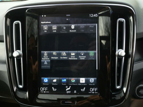 2 Owners, Full Volvo Service History, 9.9% APR Finance Available. Buy This Car Online Using Our Simple Click & Collect Service Or Free Home Delivery Within A 60 Mile Radius (Longer distance Delivery Charges Apply) All Vehicles Are Sanitised Before Collection Or Delivery. .3in active tft crystal drivers information display, 7m 10amp charge cable with 3-pin plug and 7m 1-phase 16amp type 2-mode 3 charge cable, adjustable steering force, drive mode settings, dynamic chassis, electric front axle drive, front park assist, parking camera 360 surround view, rear park assist, road sign information display, single phase on-board charger - 3.7kw, speed limiter, speed sensitive steering, tyre pressure monitoring system, voice activated control for key functions, 12v socket - front tunnel console and luggage compartment, 9in centre console portrait touch screen, bluetooth handsfree system, dab - digital audio broadcasting radio, p-sim card - access to 1 year - 100gb of data, premium sound by harman kardon, sensus navigation, smartphone integration includes apple carplay and android auto, volvo cars services with app, wireless-inductive mobile phone charging, autodimming exterior rear view mirrors, c-pillar recharge logo, chrome window trim, colour co-ordinated autofolding heated power door mirrors, dark tinted windows - rear side windows and rear screen, front and rear power windows, high gloss black front grille with chrome inserts, locking wheel nuts, power glass tilt and slide panoramic sunroof with sun curtain, recharging port located in nearside front wing, roof rails - integrated silver, tyre sealant kit and compressor, 2-zone electronic climate control with cleanzone air quality system with pollen filter, 3 spoke tailored steering wheel with chrome trim, a-pillar parking ticket holder, ambient front door and instrument panel lighting, autodimming interior mirror, bright metal luggage compartment threshold, centre console cupholders and storage, climate pack, front door pocket and front cupholder illumination, front footwell illumination, front reading lights and theatre lighting, front seat cushion extensions, front tunnel pocket, glovebox bag hook, glovebox compartment illumination, handsfree tailgate opening-closing, heated front seats, height and reach adjustable steering column, high gloss black centre screen surround deco, high gloss centre tunnel deco, illuminated vanity mirrors with ticket holder, load protection net, luggage compartment illumination, multi-directional lumbar support, power driver seat with memory for seat and exterior mirrors, power folding rear seat headrests, power passenger seat, rain sensor - automatic windscreen wiper activation, rear armrest with cupholders, rear reading and courtesy lights, recharge aluminium tread plates - front, steering wheel remote infotainment controls, tailgate illumination, topography inlays, underfloor luggage compartment storage, versatile split folding rear seats - 60-40, active bending pixel led headlights with adaptive shadow technology, automatic headlight levelling system, front led foglights, headlight cleaning system, home safe and approach lighting, puddle lights, adaptive brake lights including high level led brake light, anti-theft alarm including immobiliser - volume sensor and level sensor, care key with user defined top speed, city safety, driver assistance - pilot assist and adaptive cruise control, driver awareness, driver knee airbag, dual stage driver and passenger airbags, first aid kit, high gloss silver front and rear skid plate, hill descent control, hill start assist, ic - inflatable curtains - full length, isofix attachment - outer rear seats, key integrated remote control central locking including fuel flap with deadlocking system and auto open-close power windows, keyless drive - keyless entry and keyless start, lane keeping aid with driver alert control, low speed exterior sound speaker, oncoming lane mitigation, passenger airbag cut-off switch, power child locks - rear doors, power parking brake with auto hold function, private locking for tailgate, run-off road mitigation, run-off road protection, sips - side impact protection system, sips airbags - front seats, seatbelt reminder and pretensioners, slippery road and hazard light alert, stability and traction control, vehicle deceleration control, whips - whiplash protection system - front seats, warning triangle