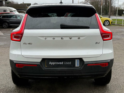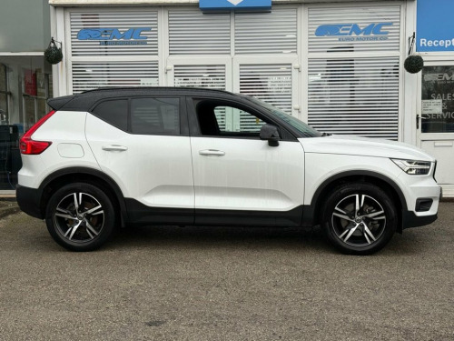 FANTASTIC, VOLVO XC40 2.0 B4 MHEV R-DESIGN SUV PETROL HYBRID AUTO, 197 BHP. Finished in CRYSTAL WHITE MET with contrasting EBONY HEATED LEATHER/ALCANTARA TRIM. This Volvo XC40 is a spacious small SUV with smart styling and a comfortable drive. In short it is a bit of a cracker with a sophisticated look and an upmarket feel. Features include Sat Nav, DAB, B/Tooth, Leather Seats, Power Electric Boot, 18" Alloys, Tints, Cruise and more. Volvo Dealer serviced at 14239 miles, 44913 miles, 59116 miles on arrival. EMC IS A FAMILY RUN BUSINESS, EST IN 1989. OUR AIM IS TO PROVIDE A SIMPLE, EASY AND CARING BUYING EXPERIENCE. Please call JEFF or BEN to reserve this wonderful example today. Crystal White, 18in Alloy Wheels - 5 Double Spoke Diamo, Black Headlining, Bluetooth Handsfree System, Cruise Control, DAB - Digital Audio Broadcasting Radio, Front LED Foglights, Keyless Start, Power Operated Tailgate