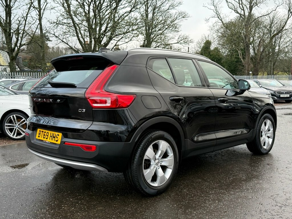 The 2019 Volvo XC40 2.0 D3 Momentum is a stylish and practical premium compact SUV, offering a refined drive and confident performance. Powered by a 2.0-litre diesel engine producing 150 bhp and paired with a smooth automatic gearbox, it delivers effortless cruising and efficient motorway performance while remaining comfortable in town traffic. Finished in Momentum specification, this XC40 features a high-quality interior with excellent build standards and intuitive ergonomics. The cabin benefits from comfortable seating, touchscreen infotainment with smartphone connectivity (Apple CarPlay/Android Auto), climate control and practical storage solutions throughout. Its raised driving position and well-weighted steering make it easy to drive and enjoyable on longer journeys. The SUV body style provides a generous boot and flexible passenger space, ideal for families, commuters or anyone needing everyday practicality without compromising on style or refinement. Volvo's strong focus on safety is evident with a comprehensive suite of driver assistance and protection systems included as standard. A refined, well-equipped and versatile SUV that combines everyday usability with premium quality and peace of mind. Textile-Vinyl - Charcoal, 12.3in Active TFT Crystal Drivers Inform, 12V Socket - Front Tunnel Console and Ca, 18in Alloy Wheels - 5 Spoke, 2-Zone Electronic Climate Control with C, 3 Spoke Leather Steering Wheel with Chro, 9in Centre Console Portrait Touch Screen, A-Pillar Parking Ticket Holder, Adaptive Brake Lights including High Lev, Adjustable Steering Force, Anti-Theft Alarm including Immobiliser -, Auto Dimming Rear View Mirror, Automatic Headlight Levelling System, Automatic LED Headlights with Active Hig, Bluetooth Handsfree System, Centre Console Cupholders and Storage, City Safety, Colour Co-Ordinated Autofolding Heated P, Cruise Control, DAB - Digital Audio Broadcasting Radio, Dar