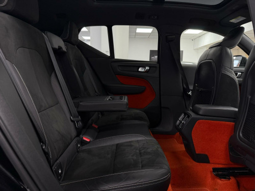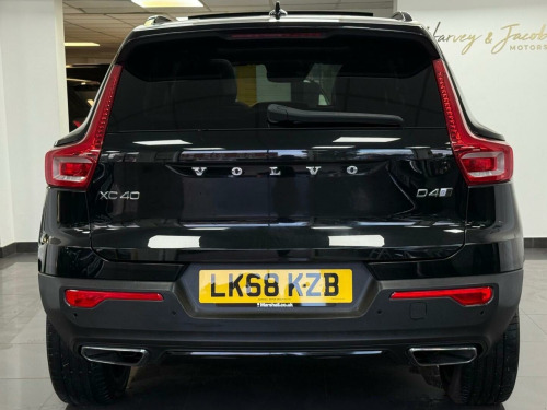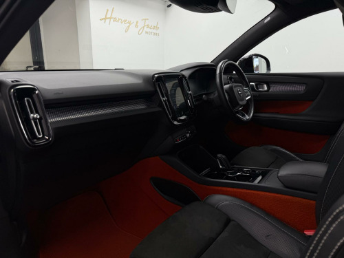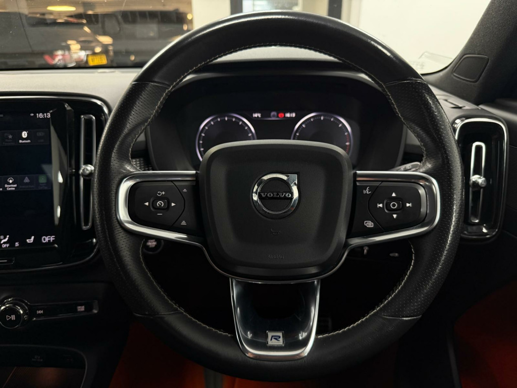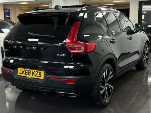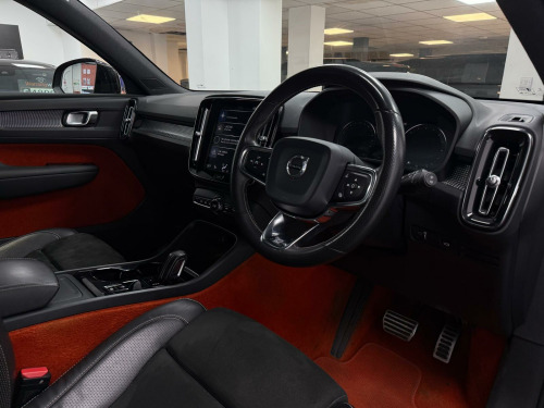 This 2018 Volvo XC40 D4 R Design Pro is a Euro 6 compliant model, offering a compelling blend of performance and efficiency.  Powered by a 2.0 litre diesel engine and featuring Four Wheel Drive, this R Design Pro trim level is equipped with the desirable Xenium Pack. This pack includes a power glass tilt and slide panoramic sunroof with a sun curtain, providing an open and airy cabin, alongside a 360 degree camera system for effortless parking assistance.  Further enhancing its appeal, Intellisafe Surround with Blind Spot Assistance offers an extra layer of safety.The XC40 D4 R Design Pro demonstrates its capabilities with an impressive 0-60mph acceleration time of just 7.5 seconds, a highlight that sets it apart from many similar vehicles. Its low CO2 emissions also indicate a more environmentally conscious choice compared to other cars in its class. The distinctive Lava Orange carpet adds a unique touch to the interior, complementing the overall sophisticated and practical design of this capable Volvo SUV. nium pack, power glass tilt and slide panoramic sunroof with sun curtain, parking camera 360 degree surround view, intellisafe surround, lava orange carpet, leather-nubuck - charcoal, 12.3in active tft crystal drivers information display, 12v socket - front tunnel console, 2-zone electronic climate control with cleanzone air quality system with pollen filter and cooled glovebox, 20in alloy wheels - 5 double spoke diamond cut - matt black, 9in centre console portrait touch screen, a-pillar parking ticket holder, adaptive brake lights including high level led brake light, adjustable steering force, ambient door and instrument panel lighting, anti-theft alarm including immobiliser - volume sensor and level sensor, auto dimming rear view mirror, autofolding door mirrors, automatic headlight levelling system, automatic led headlights with active high beam incorporating day running lights, black headlining, black stone door mirrors, black stone roof, bluetooth handsfree system, bright metal luggage compartment threshold, centre console cupholders and storage, city safety, cruise control, cutting edge aluminium inlays, dab - digital audio broadcasting radio, dark tinted windows - rear side windows and cargo area, drive mode settings, driver knee airbag, drivers side lower dashboard credit card storage compartment, dual integrated exhaust pipes with high gloss black surround, dual stage driver and passenger airbags, embossed rear side roof pillar, first aid kit, front door pocket and front cupholder illumination, front footwell lighting, front led fog lights with cornering function, front reading lights - theatre lighting and glovebox illumination, front seat cushion extensions, front tunnel net pocket and integrated waste bin, front and rear power windows, glovebox bag hook, headlight cleaning system, headlights - active bending, heated front seats, heated windscreen, heated windscreen washer nozzles, height adjustable passenger seat with multi-directional lumbar support, height and reach adjustable steering column, height and tilt adjustable driver seat with multi-directional lumbar support, high gloss black deco lower front bumper, high gloss black mesh front grille with high gloss black surround, high gloss black window trim surround, high gloss centre tunnel deco, high gloss silver front and rear skid plate, hill descent control, hill start assist, home safe and approach lighting, ic - inflatable curtains - full length, isofix attachment - outer rear seats, illuminated vanity mirrors with ticket holder, key integrated remote control central locking including fuel flap with deadlocking system and auto open-close power windows, keyless start, lane keeping aid with driver alert control, locking wheel nuts, luggage compartment illumination, mechanical child locks - rear doors, multicolour theatre lighting, oncoming lane mitigation, passenger airbag cut-off switch, perforated leather gear knob, perforated leather key integrated remote, perforated leather steering wheel, power driver seat with memory for seat and exterior mirrors, power parking brake with auto hold function, private locking for tailgate, r-design front door tread plates, rain sensor - automatic windscreen wiper activation, rear armrest with storage and cupholders, rear park assist, rear reading and courtesy lights, road sign information display, roof antenna, roof rails - integrated high gloss black, roof spoiler, run-off road mitigation, run-off road protection, sips - side impact protection system, sips airbags - front seats, seatbelt reminder and pretensioners, sensus connect with high performance sound, sensus navigation, speed limiter, speed sensitive steering, sports chassis, sports floor mats, sports pedals, stability and traction control, steering wheel remote infotainment controls, tailgate illumination, tyre pressure monitoring system, tyre sealant kit and compressor, underfloor cargo storage, vehicle deceleration control, versatile split folding rear seats - 60-40, visible vin plate, voice activated control for key functions, volvo on call with app, whips - whiplash protection system - front seats, warning triangle, winter pack with heated front windscreen