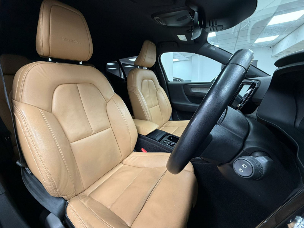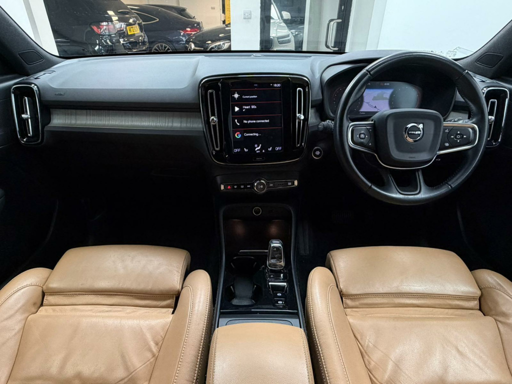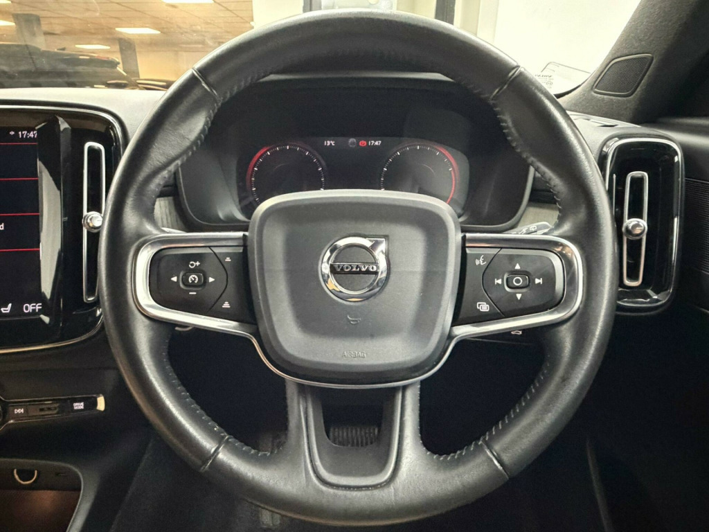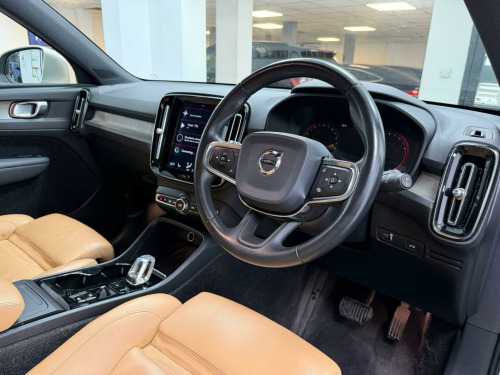 This 2019 Volvo XC40 T4 Inscription Pro offers a refined driving experience with its capable Four Wheel Drive system and a responsive 2.0L Petrol Engine. As a Euro 6 compliant vehicle, it meets modern emissions standards. The Inscription Pro trim level ensures a premium feel, enhanced by features such as a 360 degree surround view parking camera for effortless manoeuvring and Intellisafe Surround, which includes Blind Spot Assistance to provide an extra layer of safety. Inside, you'll appreciate the comfort of the 2-Zone Electronic Climate Control, complete with a CleanZone Air Quality System and a cooled glovebox, while the power driver's seat with memory function allows for personalised comfort for multiple drivers. Automatic LED headlights with Active High Beam adapt to your surroundings, ensuring optimal visibility.The Volvo XC40 T4 Inscription Pro boasts impressive performance, accelerating from 0 to 60mph in just 8.2 seconds, demonstrating its dynamic capabilities. This acceleration figure highlights its advantage over many similar vehicles in its class. Furthermore, the generous boot space provides ample room for luggage, shopping, or sports equipment, making it a practical choice for everyday life and longer journeys. The combination of its advanced safety features, comfortable interior, and strong performance makes this XC40 a compelling option for those seeking a versatile and well equipped compact SUV. .3in active tft crystal drivers information display, 12v socket - front tunnel console, 19in alloy wheels - 5 double spoke - diamond cut - black, 2-zone electronic climate control with cleanzone air quality system with pollen filter and cooled glovebox, 3 spoke leather steering wheel with chrome trim, 9in centre console portrait touch screen, a-pillar parking ticket holder, adaptive brake lights including high level led brake light, adjustable steering force, ambient door and instrument panel lighting, anti-theft alarm including immobiliser - volume sensor and level sensor, auto dimming rear view mirror, autofolding door mirrors, automatic headlight levelling system, automatic led headlights with active high beam incorporating day running lights, bluetooth handsfree system, bright metal luggage compartment threshold, centre console cupholders and storage, chrome window trim, city safety, cruise control, dab - digital audio broadcasting radio, drift wood inlays, drive mode settings, driver knee airbag, drivers side lower dashboard credit card storage compartment, dual integrated exhaust pipes, dual stage driver and passenger airbags, dynamic chassis, embossed rear side roof pillar, first aid kit, front door pocket and front cupholder illumination, front footwell lighting, front led fog lights with cornering function, front park assist, front reading lights - theatre lighting and glovebox illumination, front seat cushion extensions, front tunnel net pocket and integrated waste bin, front and rear power windows, glovebox bag hook, headlight cleaning system, headlights - active bending, heated front seats, heated windscreen, heated windscreen washer nozzles, height adjustable passenger seat with multi-directional lumbar support, height and reach adjustable steering column, height and tilt adjustable driver seat with multi-directional lumbar support, high gloss black front grille with chrome inserts, high gloss centre tunnel deco, hill descent control, hill start assist, home safe and approach lighting, ic - inflatable curtains - full length, isofix attachment - outer rear seats, illuminated vanity mirrors with ticket holder, inscription front door tread plates, key integrated remote control central locking including fuel flap with deadlocking system and auto open-close power windows, keyless start, lane keeping aid with driver alert control, leather coloured key integrated remote, locking wheel nuts, luggage compartment illumination, luxury floor mats, matt silver front and rear skid plate, mechanical child locks - rear doors, multicolour theatre lighting, oncoming lane mitigation, orrefors crystal gear lever knob, passenger airbag cut-off switch, power driver seat with memory for seat and exterior mirrors, power operated tailgate, power parking brake with auto hold function, power passenger seat, private locking for tailgate, rain sensor - automatic windscreen wiper activation, rear armrest with storage and cupholders, rear park assist, rear reading and courtesy lights, road sign information display, roof antenna, roof rails - integrated silver, roof spoiler, run-off road mitigation, run-off road protection, sips - side impact protection system, sips airbags - front seats, seatbelt reminder and pretensioners, sensus connect with high performance sound, sensus navigation, speed limiter, speed sensitive steering, stability and traction control, steering wheel remote infotainment controls, tailgate illumination, tyre pressure monitoring system, tyre sealant kit and compressor, underfloor cargo storage, vehicle deceleration control, versatile split folding rear seats - 60-40, visible vin plate, voice activated control for key functions, volvo on call with app, whips - whiplash protection system - front seats, warning triangle, winter pack with heated front windscreen, parking camera 360 degree surround view, intellisafe surround, tempa spare wheel and jack, leather-faced - amber