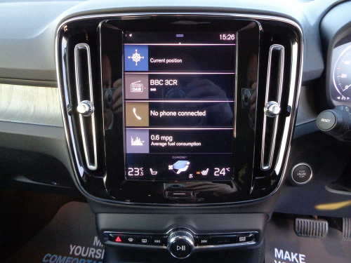 A 2 Owner XC40 with Full Volvo History from new (See Pictures), Specification includes Satellite Navigation, Reverse Parking Camera, LED Interchangeable Dash, Front & Rear Parking Sensors, DAB Radio, Bluetooth Phone, Bluetooth Audio, Leather Seats, Heated Seats, Heated Screen, Electric Memory Seats, Electric Power Fold Mirrors, Electric Windows, Electric Tailgate, Front & Rear Armrest, Cruise Control, Digital Climate Control, Multifunction Steering Wheel, Alloy Wheels…………………. See Below For Further Specification................. The additional specification details below are provided by Autotrader not by Free Spirit. They are a general guide for the most recent model of this vehicle but may not be precisely correct for this actual vehicle so please don’t rely on them. We will happily assist you in carefully checking that this vehicle’s specification is in line with your requirements.Free Spirit Automotive have been trading since 2004. We fund cars with BMW Alphera Finance & have access to multiple lenders offering different lending criteria to accommodate all customer credit scores. All vehicles are fully Health Checked in our purpose-built workshop prior to delivery & are Serviced & MOT’d as required. Every vehicle comes with a Warranty as standard. We stock between 70-100 cars and have more vehicles stocked than advertised. Part Exchange welcome. We have sold & delivered over 10,000 cars since we opened in 2004.. 12V Socket - Front Tunnel Console and Cargo Compartment, 9in Centre Console Portrait Touch Screen, Bluetooth Handsfree System, DAB - Digital Audio Broadcasting Radio, P-SIM Card - Access to 1 Year - 100GB of Data, Roof Antenna, Sensus Connect with High Performance Sound, Sensus Navigation, Volvo On Call with App, 12.3in Active TFT Crystal Drivers Information Display, Cruise Control, Drive Mode Settings, Front Park Assist, Rear Park Assist, Road Sign Information Display, Slippery Road and Hazard Light Alert, Tyre Pressure Monitoring System, Voice Activated Control for Key Functions, 19in Alloy Wheels - 5 Double Spoke - Diamond Cut - Black, Chrome Window Trim, Colour Co-Ordinated Autofolding Heated Power Door Mirrors, Dual Integrated Exhaust Pipes, Embossed Rear Side Roof Pillar, Front and Rear Power Windows, Heated Windscreen, Heated Windscreen Washer Nozzles, High Gloss Black Front Grille with Chrome Inserts, High Gloss Black Sensus Surround Deco, Locking Wheel Nuts, Roof Rails - Integrated Silver, Roof Spoiler, Tyre Sealant Kit and Compressor, Automatic Headlight Levelling System, Automatic LED Headlights with Active High Beam incorporating Day Running Lights, Front LED Fog Lights with Cornering Function, Headlight Cleaning System, Headlights - Active Bending, Home Safe and Approach Lighting, 2-Zone Electronic Climate Control with Cooled Glovebox and Rear Air Vents, 3 Spoke Leather Steering Wheel with Chrome Trim, Ambient Door and Instrument Panel Lighting, A-Pillar Parking Ticket Holder, Auto Dimming Rear View Mirror, Bright Metal Luggage Compartment Threshold, Centre Console Cupholders and Storage, Drift Wood Inlays, Drivers Side Lower Dashboard Credit Card Storage Compartment, Front Door Pocket and Front Cupholder Illumination, Front Footwell Lighting, Front Reading Lights - Theatre Lighting and Glovebox Illumination, Front Seat Cushion Extensions, Front Tunnel Net Pocket and Integrated Waste Bin, Glovebox Bag Hook, Heated Front Seats, Height Adjustable Passenger Seat with Multi-Directional Lumbar Support, Height and Reach Adjustable Steering Column, Height and Tilt Adjustable Driver Seat with Multi-Directional Lumbar Support, High Gloss Centre Tunnel Deco, Illuminated Vanity Mirrors with Ticket Holder, Inscription Front Door Tread Plates, Interior Trim - Driftwood, Keyless Start, Load Protection Net, Lockable Glovebox, Luggage Compartment Illumination, Luxury Floor Mats, Multicolour Theatre Lighting, Orrefors Crystal Gear Lever Knob, Power Driver Seat with Memory for Seat and Exterior Mirrors, Power Operated Tailgate, Power Passenger Seat, Rain Sensor - Automatic Windscreen Wiper Activation, Rear Armrest with Storage and Cupholders, Rear Clothes Hook, Rear Reading and Courtesy Lights, Steering Wheel Remote Infotainment Controls, Tailgate Illumination, Underfloor Cargo Storage, Versatile Split Folding Rear Seats - 60-40, Winter Pack, Adjustable Steering Force, Dynamic Chassis, Speed Limiter, Speed Sensitive Steering, Adaptive Brake Lights including High Level LED Brake Light, Anti-Theft Alarm including Immobiliser - Volume Sensor and Level Sensor, City Safety, Driver Knee Airbag, Dual Stage Driver and Passenger Airbags, First Aid Kit, Hill Descent Control, Hill Start Assist, IC - Inflatable Curtains - Full Length, ISOFIX Attachment - Outer Rear Seats, Key Integrated Remote Control Central Locking including Fuel Flap with Deadlocking System and Auto Open-Close Power Windows, Lane Keeping Aid with Driver Alert Control, Leather Coloured Key Integrated Remote, Matt Silver Front and Rear Skid Plate, Mechanical Child Locks - Rear Doors, Oncoming Lane Mitigation, Passenger Airbag Cut-Off Switch, Power Parking Brake with Auto Hold Function, Private Locking for Tailgate, Run-Off Road Mitigation, Run-Off Road Protection, Seatbelt Reminder and Pretensioners, SIPS - Side Impact Protection System, SIPS Airbags - Front Seats, Stability and Traction Control, Vehicle Deceleration Control, Visible VIN Plate, Warning Triangle, WHIPS - Whipl.