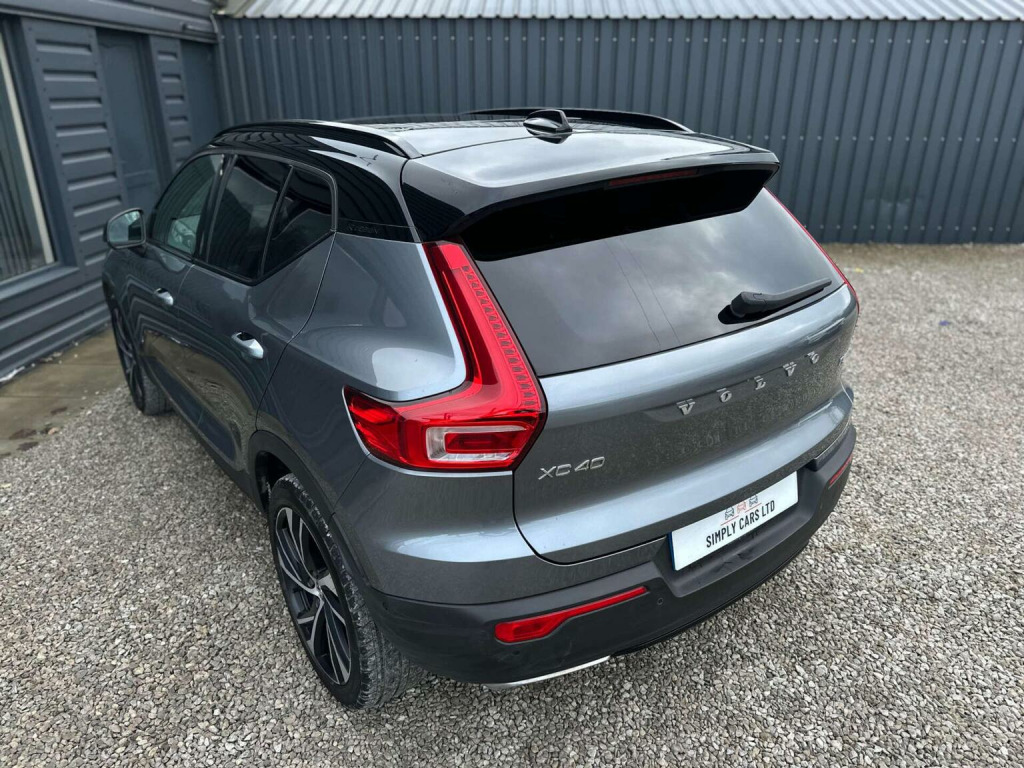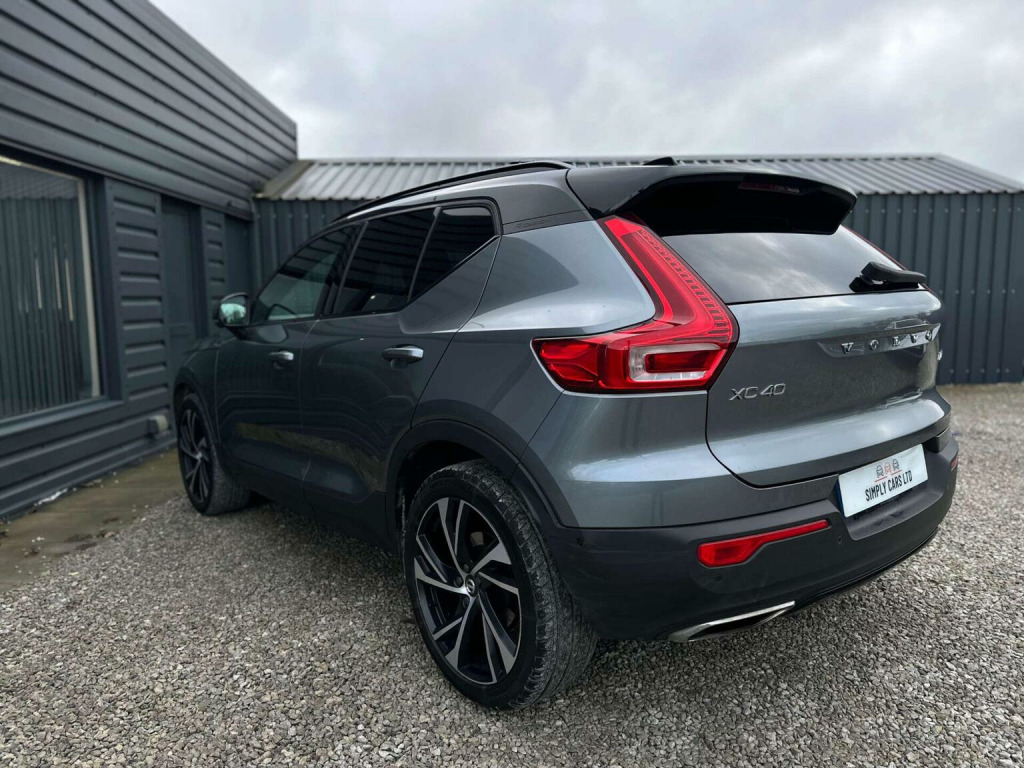 We are delighted to offer this 1 owner from new automatic Volvo XC40 R-Design Pro with 46k miles. This is an excellent example provided with service history and MOT until January 2027. Great specification including, Reversing camera, satnav, Pan roof, electric tailgate, electric memory seat and heated seats. Supplied with 3 months warranty, extended warranty available upon request. Great features include:, 360 camera, Parking sensors, Alloys , Auto lights , Multifunctional steering wheel, Cruise control , Ulez, Hpi clear , Finance, part exchange & delivery available. Please contact for any questions.
