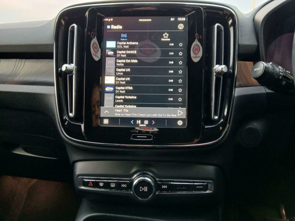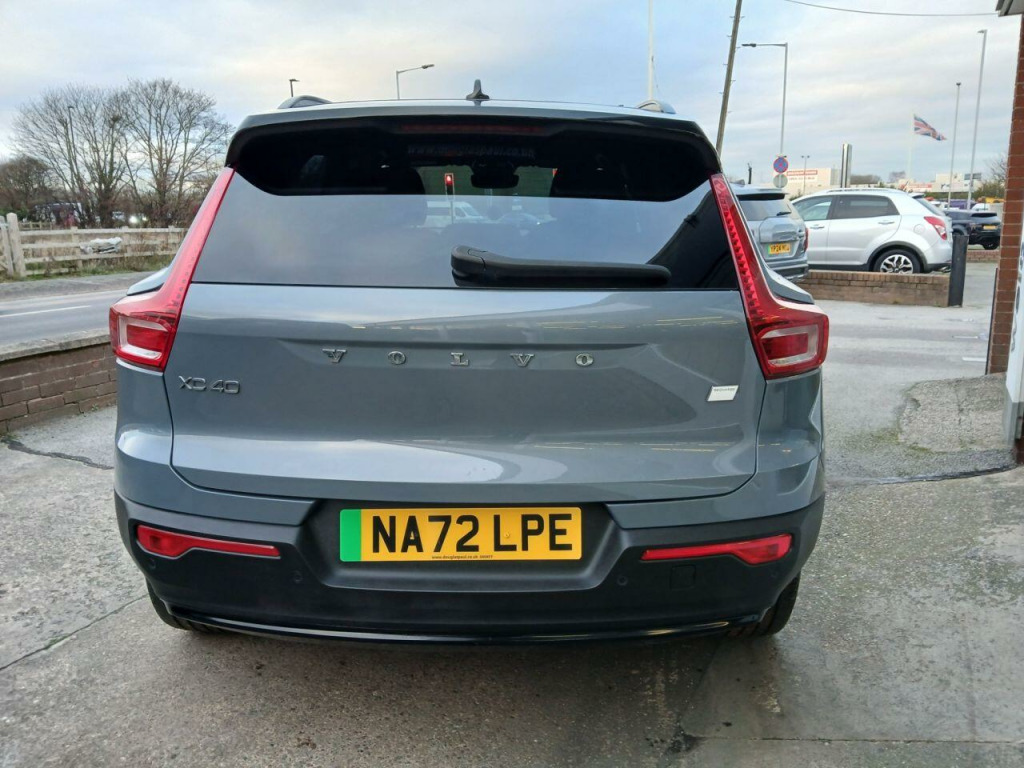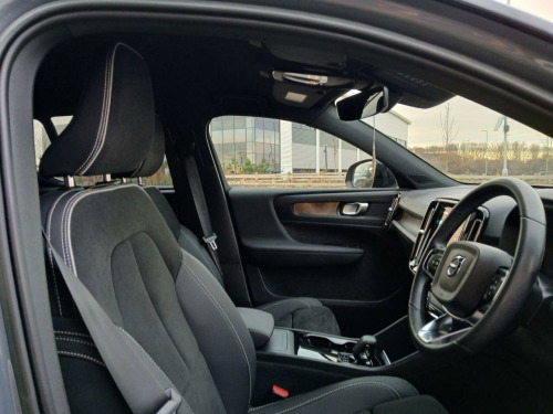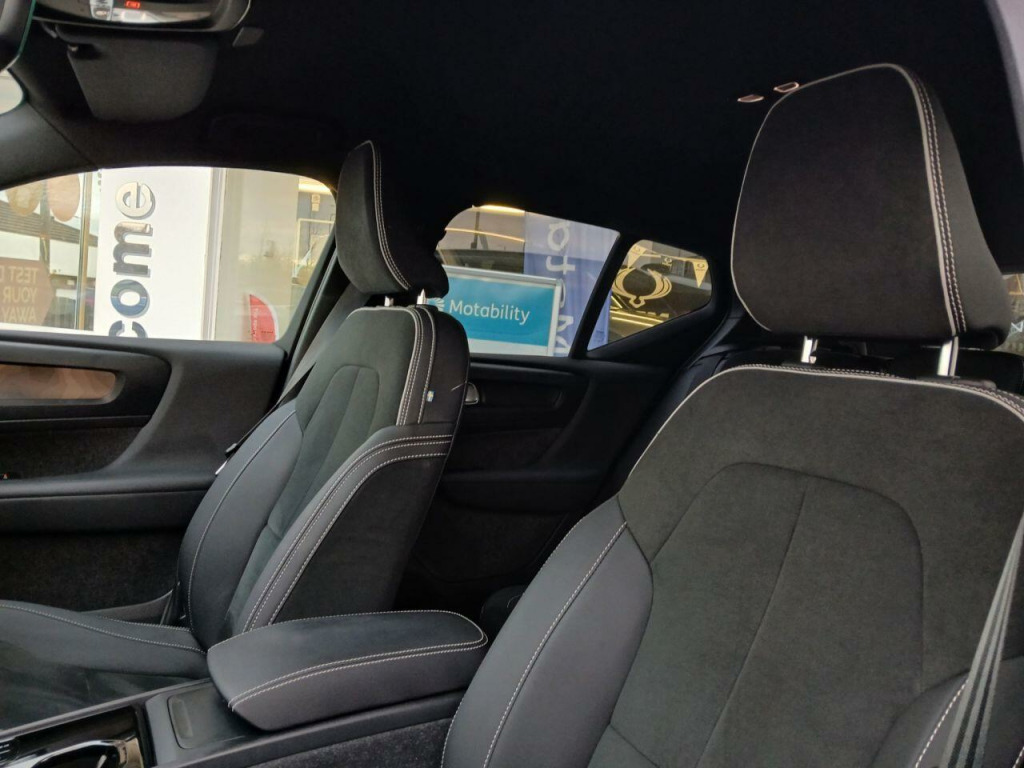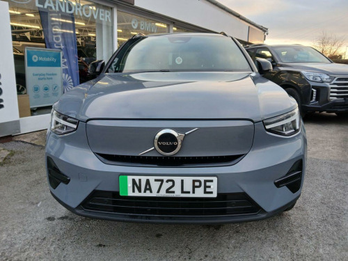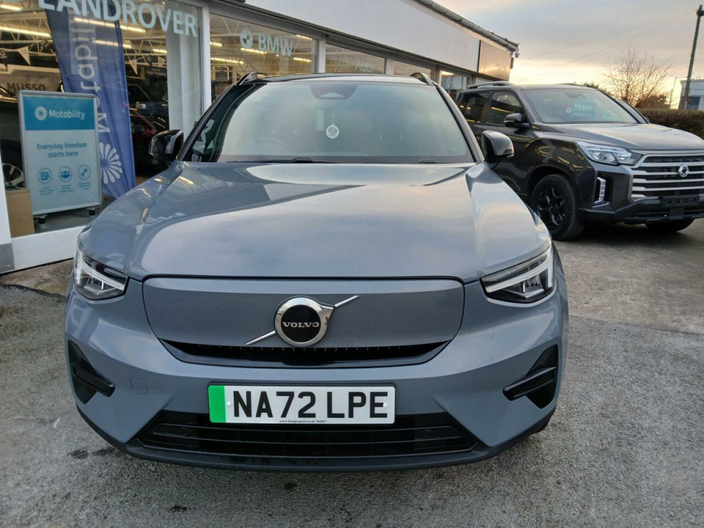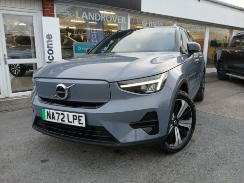 . 12.3in Progressive Driver Display, 12v Socket - Front Tunnel Console and Luggage Compartment, 19in Alloy Wheels - 5 Double Spoke - Diamond Cut - Black, 2-Zone Electronic Climate Control with Rear Air Vents - CleanZone Air Quality System with Pollen Filter, 3-Spoke Tailored Sports Steering Wheel, 7m 10amp Charge Cable with 3-Pin Plug and 4.5m 3-Phase 32 amp Type 2 - Mode 3 Charge Cable, 9in Centre Console Portrait Touch Screen, A-Pillar Parking Ticket Holder, Adaptive Brake Lights including High Level LED Brake Light, Adjustable Steering Force, Anti-Theft Alarm including Immobiliser - Volume Sensor and Level Sensor, Autodimming Interior Mirror, Autofolding Heated Power Door Mirrors, Automatic Headlight Levelling System, Automatic LED Headlights with Active High Beam incorporating Day Running Lights, Black Stone - Pillars - Roof and Door Mirrors, Bluetooth Handsfree System, Care Key with User Defined Top Speed, Centre Console Cupholders and Storage, City Safety, Colour Co-Ordinated Front Covered Grille, Convenient Entry and Start, Cruise Control, DAB - Digital Audio Broadcasting Radio, Dark Tinted Windows - Rear Side Windows and Rear Screen, Driver Knee Airbag, Dual Stage Driver and Passenger Airbags, Electric Front Axle Drive, First Aid Kit, Fixed Rear Seat Headrests, Floor Mats, Front Footwell Illumination, Front Load Compartment - 31 Litres, Front Reading Lights and Theatre Lighting, Front Seat Cushion Extensions, Front Tunnel Pocket and Integrated Waste Bin, Front and Rear Power Windows, Glovebox Bag Hook, Glovebox Compartment Illumination, Google Automotive Services, Height Adjustable Passenger Seat, Height and Reach Adjustable Steering Column, Height and Tilt Adjustable Driver Seat, High Gloss Black Centre Tunnel and Centre Screen Surround Deco, High Gloss Black Window Trim - Front and Rear Skidplate and Deco Lower Front Bumper, High Performance Sound, Hill Descent Control, Hill Start Assist, Home Safe and Approach Lighting, IC - Inflatable Curtains - Full Length, ISOFIX Attachment - Front Passenger and Outer Rear Seats, Illuminated Vanity Mirrors with Ticket Holder, Key Integrated Remote Control Central Locking including Fuel Flap with Deadlocking System and Auto Open-Close Power Windows, Lane Keeping Aid with Driver Alert Control, Load Protection Net, Locking Wheel Nuts, Low Speed Exterior Sound Speaker, Luggage Compartment Illumination, Multi-Directional Lumbar Support, Oncoming Lane Mitigation, Origin Inlay, Passenger Airbag Cut-Off Switch, Power Child Locks - Rear Doors, Power Operated Tailgate, Private Locking for Tailgate, Rain Sensor - Automatic Windscreen Wiper Activation, Rear Armrest with Cupholders, Rear Park Assist, Recharge Embossed Rear Side Roof Pillar, Recharge Tread Plates - Front, Road Sign Information Display, Roof Antenna, Roof Rails - Integrated High Gloss Black, Roof Spoiler, Run-Off Road Mitigation, Run-Off Road Protection, SIPS - Side Impact Protection System, SIPS Airbags - Front Seats, Seatbelt Reminder and Pretensioners, Slippery Road and Hazard Light Alert, Speed Limiter, Speed Sensitive Steering, Stability and Traction Control, Steering Wheel Remote Infotainment Controls, Touring Chassis, Tyre Pressure Monitoring System, Tyre Sealant Kit and Compressor, Underfloor Luggage Compartment Storage, Vehicle Deceleration Control, Versatile Split Folding Rear Seats - 60-40, Visible VIN Plate, Volvo Cars Services with App, WHIPS - Whiplash Protection System - Front Seats, Warning Triangle, Wireless-Inductive Mobile Phone Charging, Connect Textile-Microtech - Charcoal, Thunder Grey.