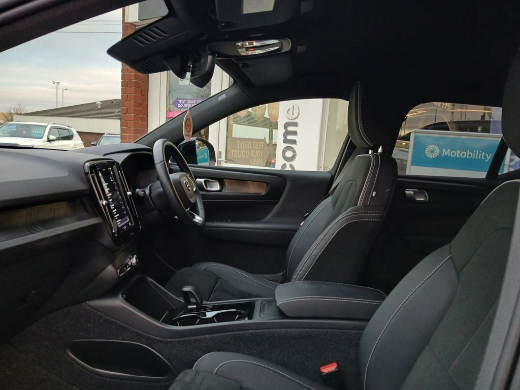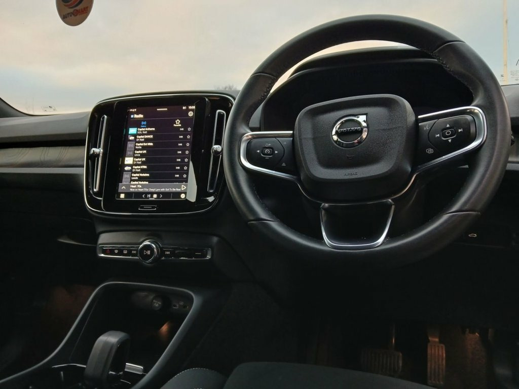 Experience premium electric driving with this Volvo XC40 Recharge 69kWh Core SUV, a stylish, safe, and forward-thinking fully electric vehicle that delivers comfort and performance in equal measure. With 41,500 miles from new and just one owner, this XC40 has been well cared for and is presented in excellent condition throughout. Powered by a smooth and responsive electric motor producing 231bhp, the XC40 Recharge offers effortless acceleration and a refined driving experience. The 69kWh battery provides an impressive driving range of up to 263 miles on a full charge, making it perfectly suited to daily commuting as well as longer journeys. Supplied with two charging cables, this vehicle is ready for both home and public charging convenience. This example benefits from £1,500 of factory-fitted extras and is finished in striking Thunder Grey paintwork, which perfectly complements the XC40's bold and modern SUV design. Sitting on stylish 19" alloy wheels and enhanced by privacy glass, it has a strong road presence while maintaining Volvo's understated elegance. Inside, the cabin is stunning, combining Scandinavian design with high-quality materials. The Connect Textile/Microtech upholstery is paired with a half leather interior, offering both durability and comfort. Climate control ensures a pleasant environment for all occupants, while automatic lights add to the ease of everyday driving. Technology and safety are at the heart of this XC40 Recharge. Sa 12.3in Progressive Driver Display, 12v Socket - Front Tunnel Console and Lu, 19in Alloy Wheels - 5 Double Spoke - Dia, 2-Zone Electronic Climate Control with R, 3-Spoke Tailored Sports Steering Wheel, 7m 10amp Charge Cable with 3-Pin Plug an, 9in Centre Console Portrait Touch Screen, A-Pillar Parking Ticket Holder, Adaptive Brake Lights including High Lev, Adjustable Steering Force, Anti-Theft Alarm including Immobiliser -, Autodimming Interior Mirror, Autofolding Heated Power Door Mirrors, Automatic Headlight Levelling System, Automatic LED Headlights with Active Hig, Black Stone - Pillars - Roof and Door Mi, Bluetooth Handsfree System, Care Key with User Defined Top Speed, Centre Console C