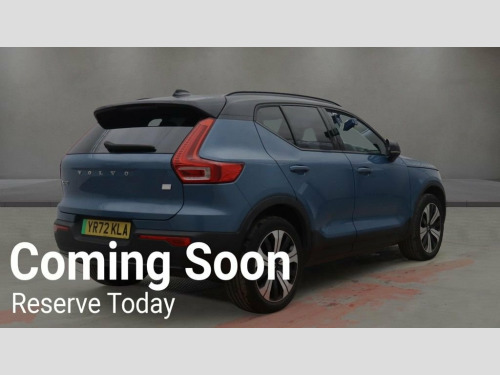 This 2022 Volvo XC40 Plus is a superb example, having had only one owner since new, service history 1 service at 4, 326 miles Dec 2024, Mot till Sept 2026, warranty. This electric all wheel drive SUV offers a substantial 69 kWh battery, providing a maximum range of 262 miles when fully charged. Charging at home using a 7kW charger will take approximately 11 hours, while rapid public charging can replenish the battery from empty to 80% in as little as 36 minutes. Inside, you'll find comfortable Cloth textile upholstery in Charcoal, complemented by a 2 Zone Electronic Climate Control system featuring rear air vents and the CleanZone Air Quality System for a healthier cabin environment. Heated seats, Heated steering wheel. The XC40 Plus also boasts Keyless Drive with handsfree tailgate opening and closing, making loading and unloading effortless. For added convenience, it includes wireless inductive mobile phone charging and front park assist to aid with parking manoeuvres. Performance is a strong point, with an impressive 0 to 60 mph acceleration time of just 7.4 seconds, demonstrating a dynamic driving experience that sets it apart from many other electric vehicles in its class. Autoinfusion Ltd, is a family run business with over 30 years motoring experience. On our website you will find our vehicles are generally advertised with upto 100 exterior and interior pictures, 360 interior images, exterior panoramic views and web video showcasing our stock. As an AA approved 12.3in Progressive Driver Display, 12v Socket - Front Tunnel Console and Lu, 19in Alloy Wheels - 5 Double Spoke - Dia, 2-Zone Electronic Climate Control with R, 3-Spoke Tailored Sports Steering Wheel, 7m 10amp Charge Cable with 3-Pin Plug an, 9in Centre Console Portrait Touch Screen, A-Pillar Parking Ticket Holder, Adaptive Brake Lights including High Lev, Adjustable Steering Force, Advanced Interior Air Cleaner PM 2.5, Anti-Theft Alarm including Immobiliser -, Autodimming Exterior Rear View Mirrors, Autodimming Interior Mirror, Autofolding Heated Power Door Mirrors, Automatic Headlight Levelling System, Automatic LED Headlights with Active Hig, Black Stone - Pillars - Roof and Door Mi, Blue