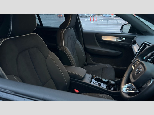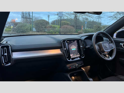 Volvo XC40 2.0 B3P Plus Black Edition 5dr Auto 12.3" Progressive Driver Display, 9" centre console portrait touch screen, Adjustable steering wheel force, Android auto (Wired), Apple carplay (wired), Bluetooth handsfree system, Driver alert control, Driver assistance (pilot assist and adaptive cruise control), Driver awareness - Blind spot information system with steer assist, cross traffic alert with autobrake and rear collision warning and mitigation, E-call, Front and rear parking sensors, Front park assist, Google automotive services - Enabled entertainment apps, navigation with google maps, voice recognition with google assistant, Hands free power tailgate, Intelligent speed assistance, Lane keeping aid, Oncoming Lane Mitigation, Speed sensitive steering, Volvo cars services with app - Driving journal, emergency and breakdown call, engine remote start, remote door locking/unlocking and vehicle dashboard, Wireless/Inductive Mobile Phone Charging, Automatic transmission with start/stop and manual change functions, Dynamic chassis, DAB Digital radio, Steering wheel mounted remote controls, Adaptive brake lights with high level LED brake lights, Auto dimming feature for exterior door mirrors, Auto dimming interior mirror, Auto folding and heated power door mirrors, Automatic headlamp levelling, Automatic LED Headlights + Active high beam incorporating daytime running lights, Dark tinted windows - rear side windows and rear screen, Front aluminium tread plates, Front and rear electric windows, High gloss black front and rear skid plate, High gloss black front bumper deco, High gloss black front grille strikethrough and ironmark, High gloss black rear model, engine and volvo logo badges, High gloss black window trim, Home safe and approach lighting, Integrated roof rails in high gloss black, LED front fog lights, Puddle lights, Rain sensor with automatic windscreen wiper activation, Rear side wing doors, Rear wiper, Roof antenna, Roof spoiler, Visible VIN plate, 12V socket in front tunnel console and luggage compartment, 2-Zone electronic climate control with CleanZone air quality system and pollen filter, 3 seat bench in 2nd row, 3 Spoke tailored steering wheel with chrome trim, 60/40 versatile split folding rear seat, Centre console cupholders and storage, Charcoal carpet and floor mats, Charcoal headlining, Connect suede textile/microtech upholstery, Flexible load floor and grocery bag holder, Front headrests, Front seat cushion extensions, Glovebox bag hook, Heated front seats, Height adjustable passenger seat, Height/reach adjustable steering column, High gloss centre tunnel deco, High level illumination - Front door pocket, front side step (under door), tailgate, instrument panel, front door inlay, rear courtesy&reading lights, Integrated waste bin, Isofix attachments on outer rear seats, Load cover, Load protection net, Mid level illumination - Front footwell, luggage & glovebox compartment,front cabin courtesy & reading lights,illuminated vanity mirrors+ticket holder, Multi directional lumbar support for driver and passenger seat, Power driver seat with memory + exterior mirrors memory, Rear armrest with cupholders, Rear headrests, Single front passenger seat, Underfloor luggage compartment storage, Climate pack without heated front seats - XC40, 3x3 point rear seatbelts, City safety with steering support with Pedestrian + cyclist + front collision warning with full auto brake and rear auto brake, Driver and passenger airbags, Drivers knee airbag, Electronic parking brake with auto hold, First aid kit, Front and outer rear seatbelt reminder and pretensioners, Front seats SIPS airbags, Hill descent control - Off-road drive mode, Hill start assist, IC (Inflatable Curtains) - Full Length, Passenger airbag cut-off device, Power child locks on rear doors, Road sign information display, Run off Road Protection, SIPS (Side Impact Protection System), Slippery road and hazard light alert, Stability and Traction Control with Spin control, Engine Drag Control and Corner Traction Control, Tyre pressure monitoring system, Vehicle deceleration control with Anti-lock Brake System, Electronic Brake Distribution and Emergency Brake Assist, Warning triangle, WHIPS whiplash protection system - front, 2 x Key integrated remote control central locking including with deadlocking system and auto open/close windows, Anti-theft alarm including immobiliser/volume sensor + level sensor, Keyless drive includes keyless entry and keyless start, Locking wheel nuts, 20" 5 spoke high gloss black alloy wheels
