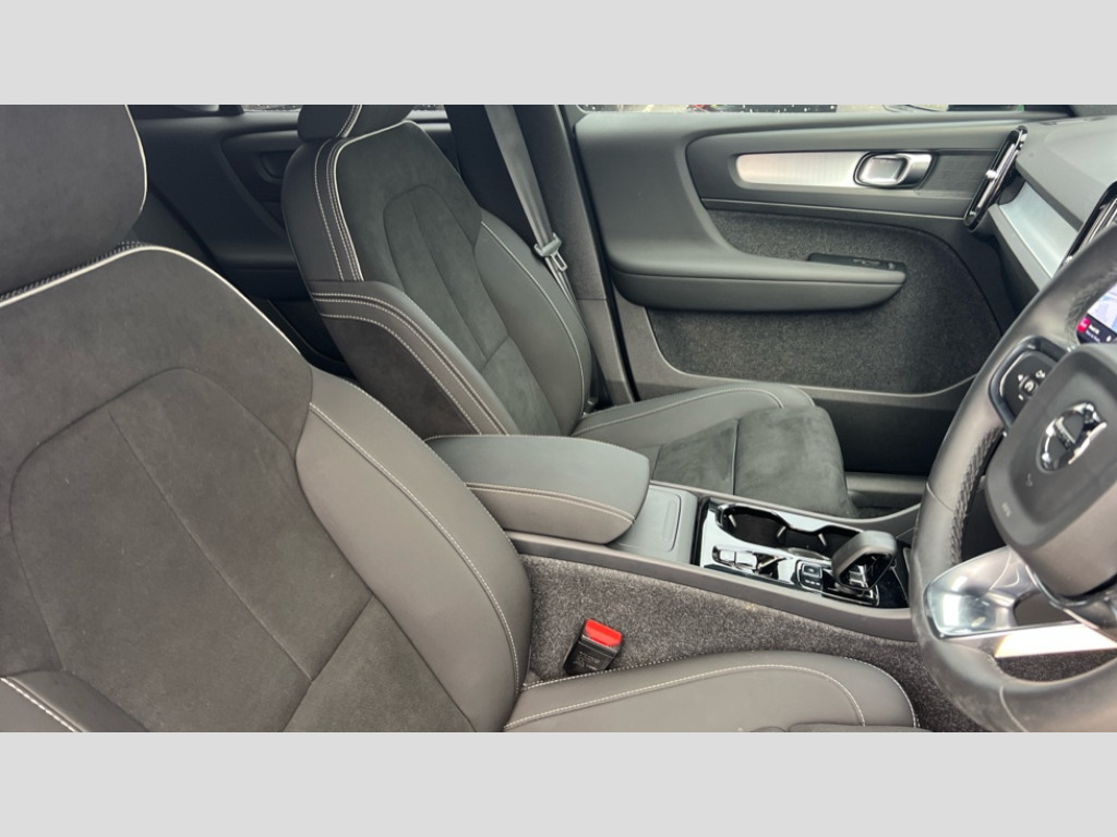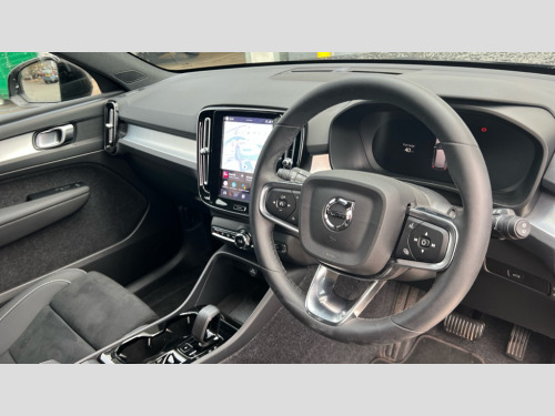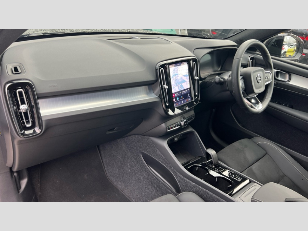 Volvo XC40 2.0 B3P Plus Black Edition 5dr Auto 12.3" Progressive Driver Display, 9" centre console portrait touch screen, Adjustable steering wheel force, Android auto (Wired), Apple carplay (wired), Bluetooth handsfree system, Driver alert control, Driver assistance (pilot assist and adaptive cruise control), Driver awareness - Blind spot information system with steer assist, cross traffic alert with autobrake and rear collision warning and mitigation, E-call, Front and rear parking sensors, Front park assist, Google automotive services - Enabled entertainment apps, navigation with google maps, voice recognition with google assistant, Hands free power tailgate, Intelligent speed assistance, Lane keeping aid, Oncoming Lane Mitigation, Speed sensitive steering, Volvo cars services with app - Driving journal, emergency and breakdown call, engine remote start, remote door locking/unlocking and vehicle dashboard, Wireless/Inductive Mobile Phone Charging, Automatic transmission with start/stop and manual change functions, Dynamic chassis, DAB Digital radio, Steering wheel mounted remote controls, Adaptive brake lights with high level LED brake lights, Auto dimming feature for exterior door mirrors, Auto dimming interior mirror, Auto folding and heated power door mirrors, Automatic headlamp levelling, Automatic LED Headlights + Active high beam incorporating daytime running lights, Dark tinted windows - rear side windows and rear screen, Front aluminium tread plates, Front and rear electric windows, High gloss black front and rear skid plate, High gloss black front bumper deco, High gloss black front grille strikethrough and ironmark, High gloss black rear model, engine and volvo logo badges, High gloss black window trim, Home safe and approach lighting, Integrated roof rails in high gloss black, LED front fog lights, Puddle lights, Rain sensor with automatic windscreen wiper activation, Rear side wing doors, Rear wiper, Roof antenna, Roof spoiler, Visible VIN plate, 12V socket in front tunnel console and luggage compartment, 2-Zone electronic climate control with CleanZone air quality system and pollen filter, 3 seat bench in 2nd row, 3 Spoke tailored steering wheel with chrome trim, 60/40 versatile split folding rear seat, Centre console cupholders and storage, Charcoal carpet and floor mats, Charcoal headlining, Connect suede textile/microtech upholstery, Flexible load floor and grocery bag holder, Front headrests, Front seat cushion extensions, Glovebox bag hook, Heated front seats, Height adjustable passenger seat, Height/reach adjustable steering column, High gloss centre tunnel deco, High level illumination - Front door pocket, front side step (under door), tailgate, instrument panel, front door inlay, rear courtesy&reading lights, Integrated waste bin, Isofix attachments on outer rear seats, Load cover, Load protection net, Mid level illumination - Front footwell, luggage & glovebox compartment,front cabin courtesy & reading lights,illuminated vanity mirrors+ticket holder, Multi directional lumbar support for driver and passenger seat, Power driver seat with memory + exterior mirrors memory, Rear armrest with cupholders, Rear headrests, Single front passenger seat, Underfloor luggage compartment storage, Climate pack without heated front seats - XC40, 3x3 point rear seatbelts, City safety with steering support with Pedestrian + cyclist + front collision warning with full auto brake and rear auto brake, Driver and passenger airbags, Drivers knee airbag, Electronic parking brake with auto hold, First aid kit, Front and outer rear seatbelt reminder and pretensioners, Front seats SIPS airbags, Hill descent control - Off-road drive mode, Hill start assist, IC (Inflatable Curtains) - Full Length, Passenger airbag cut-off device, Power child locks on rear doors, Road sign information display, Run off Road Protection, SIPS (Side Impact Protection System), Slippery road and hazard light alert, Stability and Traction Control with Spin control, Engine Drag Control and Corner Traction Control, Tyre pressure monitoring system, Vehicle deceleration control with Anti-lock Brake System, Electronic Brake Distribution and Emergency Brake Assist, Warning triangle, WHIPS whiplash protection system - front, 2 x Key integrated remote control central locking including with deadlocking system and auto open/close windows, Anti-theft alarm including immobiliser/volume sensor + level sensor, Keyless drive includes keyless entry and keyless start, Locking wheel nuts, 20" 5 spoke high gloss black alloy wheels
