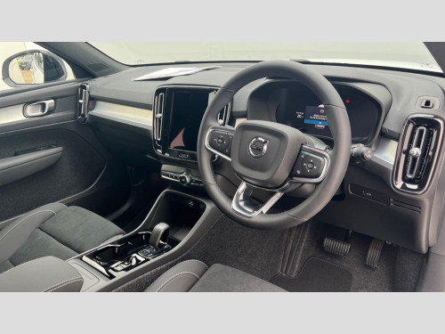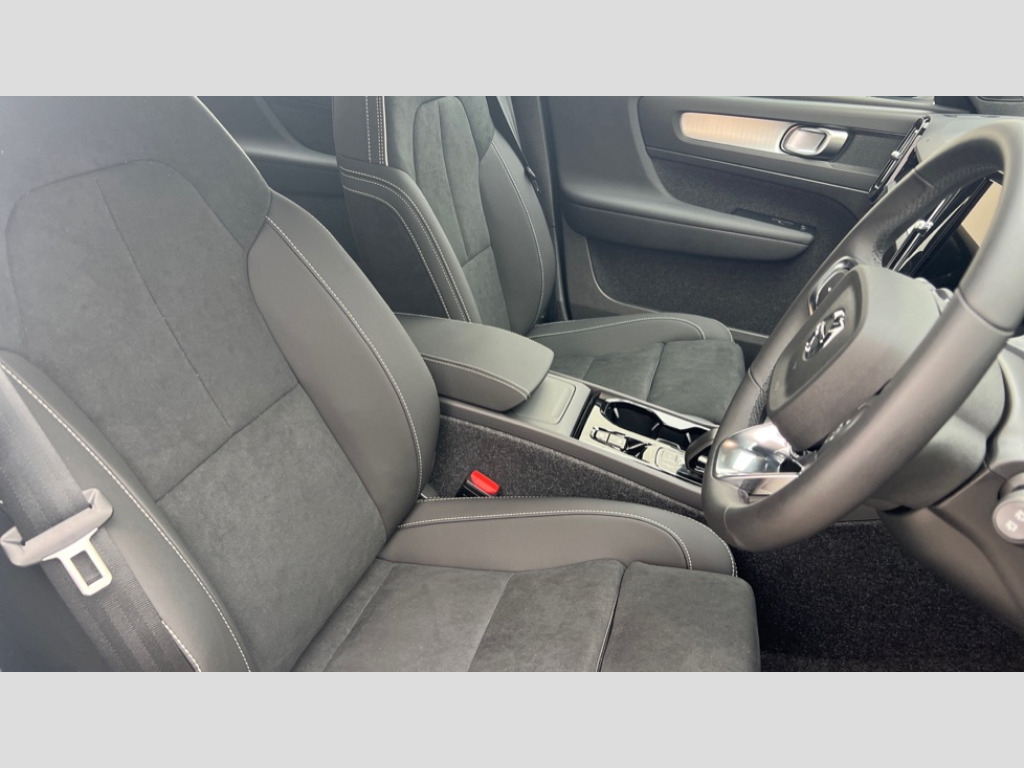 Volvo XC40 2.0 B3P Plus Dark 5dr Auto 12.3" Progressive Driver Display, 9" centre console portrait touch screen, Adjustable steering wheel force, Android auto (Wired), Apple carplay (wired), Bluetooth handsfree system, Driver alert control, Driver assistance (pilot assist and adaptive cruise control), Driver awareness - Blind spot information system with steer assist, cross traffic alert with autobrake and rear collision warning and mitigation, E-call, Front and rear parking sensors, Front park assist, Google automotive services - Enabled entertainment apps, navigation with google maps, voice recognition with google assistant, Hands free power tailgate, Intelligent speed assistance, Lane keeping aid, Oncoming Lane Mitigation, Speed sensitive steering, Volvo cars services with app - Driving journal, emergency and breakdown call, engine remote start, remote door locking/unlocking and vehicle dashboard, Wireless/Inductive Mobile Phone Charging, Automatic transmission with start/stop and manual change functions, Dynamic chassis, DAB Digital radio, Steering wheel mounted remote controls, Adaptive brake lights with high level LED brake lights, Auto dimming feature for exterior door mirrors, Auto dimming interior mirror, Auto folding and heated power door mirrors, Automatic headlamp levelling, Automatic LED Headlights + Active high beam incorporating daytime running lights, Front aluminium tread plates, Front and rear electric windows, High gloss black front and rear skid plate, High gloss black front bumper deco, High gloss black mesh front grille with high gloss black surround, High gloss black window trim, Home safe and approach lighting, Integrated roof rails in high gloss black, LED front fog lights, Puddle lights, Rain sensor with automatic windscreen wiper activation, Rear side wing doors, Rear wiper, Roof antenna, Roof spoiler, Visible VIN plate, 12V socket in front tunnel console and luggage compartment, 2-Zone electronic climate control with CleanZone air quality system and pollen filter, 3 seat bench in 2nd row, 3 Spoke tailored steering wheel with chrome trim, 60/40 versatile split folding rear seat, Centre console cupholders and storage, Charcoal carpet and floor mats, Charcoal headlining, Connect suede textile/microtech upholstery, Flexible load floor and grocery bag holder, Front headrests, Front seat cushion extensions, Glovebox bag hook, Heated front seats, Height adjustable passenger seat, Height/reach adjustable steering column, High gloss centre tunnel deco, High level illumination - Front door pocket, front side step (under door), tailgate, instrument panel, front door inlay, rear courtesy&reading lights, Integrated waste bin, Isofix attachments on outer rear seats, Load cover, Load protection net, Mid level illumination - Front footwell, luggage & glovebox compartment,front cabin courtesy & reading lights,illuminated vanity mirrors+ticket holder, Multi directional lumbar support for driver and passenger seat, Power driver seat with memory + exterior mirrors memory, Rear armrest with cupholders, Rear headrests, Single front passenger seat, Underfloor luggage compartment storage, Climate pack without heated front seats - XC40, 3x3 point rear seatbelts, City safety with steering support with Pedestrian + cyclist + front collision warning with full auto brake and rear auto brake, Driver and passenger airbags, Drivers knee airbag, Electronic parking brake with auto hold, First aid kit, Front and outer rear seatbelt reminder and pretensioners, Front seats SIPS airbags, Hill descent control - Off-road drive mode, Hill start assist, IC (Inflatable Curtains) - Full Length, Passenger airbag cut-off device, Power child locks on rear doors, Road sign information display, Run off Road Protection, SIPS (Side Impact Protection System), Slippery road and hazard light alert, Stability and Traction Control with Spin control, Engine Drag Control and Corner Traction Control, Tyre pressure monitoring system, Vehicle deceleration control with Anti-lock Brake System, Electronic Brake Distribution and Emergency Brake Assist, Warning triangle, WHIPS whiplash protection system - front, 2 x Key integrated remote control central locking including with deadlocking system and auto open/close windows, Anti-theft alarm including immobiliser/volume sensor + level sensor, Keyless drive includes keyless entry and keyless start, Locking wheel nuts