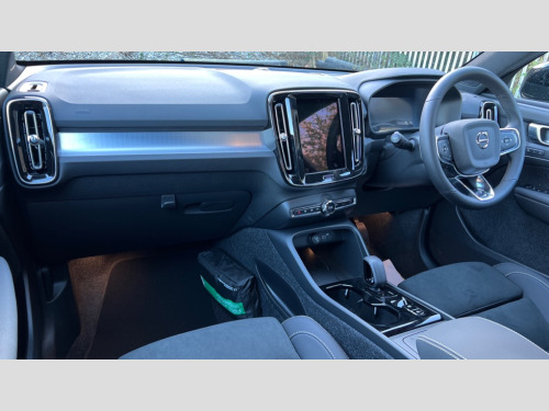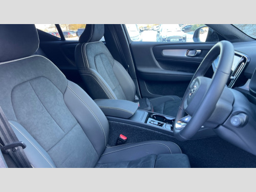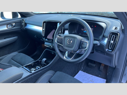 Volvo XC40 2.0 B4P Plus Black Edition 5dr Auto 12.3" Progressive Driver Display, 9" centre console portrait touch screen, Adjustable steering wheel force, Android auto (Wired), Apple carplay (wired), Bluetooth handsfree system, Driver alert control, Driver assistance (pilot assist and adaptive cruise control), Driver awareness - Blind spot information system with steer assist, cross traffic alert with autobrake and rear collision warning and mitigation, E-call, Front and rear parking sensors, Front park assist, Google automotive services - Enabled entertainment apps, navigation with google maps, voice recognition with google assistant, Hands free power tailgate, Intelligent speed assistance, Lane keeping aid, Oncoming Lane Mitigation, Speed sensitive steering, Volvo cars services with app - Driving journal, emergency and breakdown call, engine remote start, remote door locking/unlocking and vehicle dashboard, Wireless/Inductive Mobile Phone Charging, Automatic transmission with start/stop and manual change functions, Dynamic chassis, DAB Digital radio, Steering wheel mounted remote controls, Adaptive brake lights with high level LED brake lights, Auto dimming feature for exterior door mirrors, Auto dimming interior mirror, Auto folding and heated power door mirrors, Automatic headlamp levelling, Automatic LED Headlights + Active high beam incorporating daytime running lights, Dark tinted windows - rear side windows and rear screen, Front aluminium tread plates, Front and rear electric windows, High gloss black front and rear skid plate, High gloss black front bumper deco, High gloss black front grille strikethrough and ironmark, High gloss black rear model, engine and volvo logo badges, High gloss black window trim, Home safe and approach lighting, Integrated roof rails in high gloss black, LED front fog lights, Puddle lights, Rain sensor with automatic windscreen wiper activation, Rear side wing doors, Rear wiper, Roof antenna, Roof spoiler, Visible VIN plate, 12V socket in front tunnel console and luggage compartment, 2-Zone electronic climate control with CleanZone air quality system and pollen filter, 3 seat bench in 2nd row, 3 Spoke tailored steering wheel with chrome trim, 60/40 versatile split folding rear seat, Centre console cupholders and storage, Charcoal carpet and floor mats, Charcoal headlining, Connect suede textile/microtech upholstery, Flexible load floor and grocery bag holder, Front headrests, Front seat cushion extensions, Glovebox bag hook, Heated front seats, Height adjustable passenger seat, Height/reach adjustable steering column, High gloss centre tunnel deco, High level illumination - Front door pocket, front side step (under door), tailgate, instrument panel, front door inlay, rear courtesy&reading lights, Integrated waste bin, Isofix attachments on outer rear seats, Load cover, Load protection net, Mid level illumination - Front footwell, luggage & glovebox compartment,front cabin courtesy & reading lights,illuminated vanity mirrors+ticket holder, Multi directional lumbar support for driver and passenger seat, Power driver seat with memory + exterior mirrors memory, Rear armrest with cupholders, Rear headrests, Single front passenger seat, Underfloor luggage compartment storage, Climate pack without heated front seats - XC40, 3x3 point rear seatbelts, City safety with steering support with Pedestrian + cyclist + front collision warning with full auto brake and rear auto brake, Driver and passenger airbags, Drivers knee airbag, Electronic parking brake with auto hold, First aid kit, Front and outer rear seatbelt reminder and pretensioners, Front seats SIPS airbags, Hill descent control - Off-road drive mode, Hill start assist, IC (Inflatable Curtains) - Full Length, Passenger airbag cut-off device, Power child locks on rear doors, Road sign information display, Run off Road Protection, SIPS (Side Impact Protection System), Slippery road and hazard light alert, Stability and Traction Control with Spin control, Engine Drag Control and Corner Traction Control, Tyre pressure monitoring system, Vehicle deceleration control with Anti-lock Brake System, Electronic Brake Distribution and Emergency Brake Assist, Warning triangle, WHIPS whiplash protection system - front, 2 x Key integrated remote control central locking including with deadlocking system and auto open/close windows, Anti-theft alarm including immobiliser/volume sensor + level sensor, Keyless drive includes keyless entry and keyless start, Locking wheel nuts, 20" 5 spoke high gloss black alloy wheels
