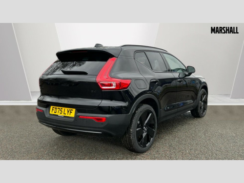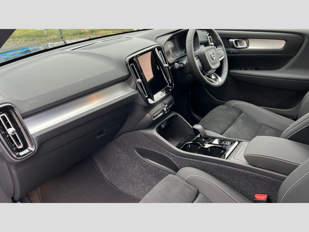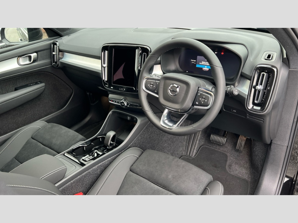 Volvo XC40 2.0 B4P Plus Black Edition 5dr Auto 12.3" Progressive Driver Display, 9" centre console portrait touch screen, Adjustable steering wheel force, Android auto (Wired), Apple carplay (wired), Bluetooth handsfree system, Driver alert control, Driver assistance (pilot assist and adaptive cruise control), Driver awareness - Blind spot information system with steer assist, cross traffic alert with autobrake and rear collision warning and mitigation, E-call, Front and rear parking sensors, Front park assist, Google automotive services - Enabled entertainment apps, navigation with google maps, voice recognition with google assistant, Hands free power tailgate, Intelligent speed assistance, Lane keeping aid, Oncoming Lane Mitigation, Speed sensitive steering, Volvo cars services with app - Driving journal, emergency and breakdown call, engine remote start, remote door locking/unlocking and vehicle dashboard, Wireless/Inductive Mobile Phone Charging, Automatic transmission with start/stop and manual change functions, Dynamic chassis, DAB Digital radio, Steering wheel mounted remote controls, Adaptive brake lights with high level LED brake lights, Auto dimming feature for exterior door mirrors, Auto dimming interior mirror, Auto folding and heated power door mirrors, Automatic headlamp levelling, Automatic LED Headlights + Active high beam incorporating daytime running lights, Dark tinted windows - rear side windows and rear screen, Front aluminium tread plates, Front and rear electric windows, High gloss black front and rear skid plate, High gloss black front bumper deco, High gloss black front grille strikethrough and ironmark, High gloss black rear model, engine and volvo logo badges, High gloss black window trim, Home safe and approach lighting, Integrated roof rails in high gloss black, LED front fog lights, Puddle lights, Rain sensor with automatic windscreen wiper activation, Rear side wing doors, Rear wiper, Roof antenna, Roof spoiler, Visible VIN plate, 12V socket in front tunnel console and luggage compartment, 2-Zone electronic climate control with CleanZone air quality system and pollen filter, 3 seat bench in 2nd row, 3 Spoke tailored steering wheel with chrome trim, 60/40 versatile split folding rear seat, Centre console cupholders and storage, Charcoal carpet and floor mats, Charcoal headlining, Connect suede textile/microtech upholstery, Flexible load floor and grocery bag holder, Front headrests, Front seat cushion extensions, Glovebox bag hook, Heated front seats, Height adjustable passenger seat, Height/reach adjustable steering column, High gloss centre tunnel deco, High level illumination - Front door pocket, front side step (under door), tailgate, instrument panel, front door inlay, rear courtesy&reading lights, Integrated waste bin, Isofix attachments on outer rear seats, Load cover, Load protection net, Mid level illumination - Front footwell, luggage & glovebox compartment,front cabin courtesy & reading lights,illuminated vanity mirrors+ticket holder, Multi directional lumbar support for driver and passenger seat, Power driver seat with memory + exterior mirrors memory, Rear armrest with cupholders, Rear headrests, Single front passenger seat, Underfloor luggage compartment storage, Climate pack without heated front seats - XC40, 3x3 point rear seatbelts, City safety with steering support with Pedestrian + cyclist + front collision warning with full auto brake and rear auto brake, Driver and passenger airbags, Drivers knee airbag, Electronic parking brake with auto hold, First aid kit, Front and outer rear seatbelt reminder and pretensioners, Front seats SIPS airbags, Hill descent control - Off-road drive mode, Hill start assist, IC (Inflatable Curtains) - Full Length, Passenger airbag cut-off device, Power child locks on rear doors, Road sign information display, Run off Road Protection, SIPS (Side Impact Protection System), Slippery road and hazard light alert, Stability and Traction Control with Spin control, Engine Drag Control and Corner Traction Control, Tyre pressure monitoring system, Vehicle deceleration control with Anti-lock Brake System, Electronic Brake Distribution and Emergency Brake Assist, Warning triangle, WHIPS whiplash protection system - front, 2 x Key integrated remote control central locking including with deadlocking system and auto open/close windows, Anti-theft alarm including immobiliser/volume sensor + level sensor, Keyless drive includes keyless entry and keyless start, Locking wheel nuts, 20" 5 spoke high gloss black alloy wheels