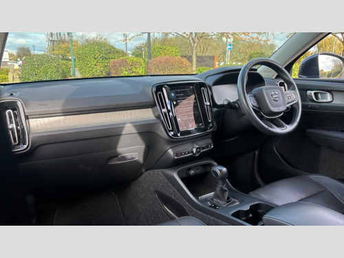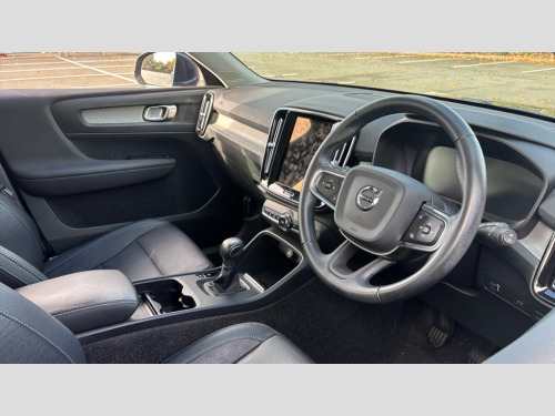 Volvo XC40 1.5 T3 [163] Inscription 5dr 12.3" Active TFT crystal driver's instrument display, 9" centre console portrait touch screen, Adjustable steering wheel force, Bluetooth hands free telephone kit, Drive mode selector, Lane keep assist with driver alert control, Oncoming Lane Mitigation, Sensus navigation with European mapping and traffic information, Speed limiter, Speed sensitive steering, Voice activated control for key functions, Volvo on call, Dynamic chassis, DAB Digital radio, Steering wheel mounted remote controls, Adaptive brake lights with high level LED brake lights, Auto dimming interior mirror, Automatic headlamp levelling, Chrome window surround, Colour coordinated auto folding and heated power door mirrors, Dual exhaust pipes, Front aluminium tread plates, Front and rear electric windows, High gloss black front grille with chrome inserts, High gloss black sensus surround deco, High Gloss silver front and rear skid plate, Home safe and approach lighting, LED front fog lights, LED Headlights + Active high beam incorporating daytime running lights, Rain sensor with automatic windscreen wiper activation, Rear side wing doors, Rear wiper, Roof antenna, Roof spoiler, Silver roof rails, Visible VIN plate, 12V socket in front tunnel console and luggage compartment, 2 zone electronic climate control and rear air vent, 3 seat bench in 2nd row, 3 spoke leather steering wheel with chrome trim, 60/40 split folding rear seat, Ambient front door and instrumental panel lighting, Bright metal luggage threshold, Centre console cupholders and storage, Driver's side lower dashboard credit card storage compartment, Front door pocket and front cupholder illumination, Front footwell illumination, Front headrests, Front reading light and theatre lighting, Glovebox bag hook, Height/reach adjustable steering column, Illuminated glovebox, Illuminated luggage compartment, Illuminated tailgate, Illuminated vanity mirrors, Isofix attachments on outer rear seats, Key integrated remote, Leather faced upholstery, Leather gearknob, Load protection net, Luxury floor mats, Multi directional lumbar support, Multicolour theatre lights, Rear armrest / integral cup holders / storage tray, Rear coat hook, Rear reading and courtesy lights, Single front passenger seat, Underfloor cargo storage, 3x3 point rear seatbelts, City safety includes pedestrian, cyclist and large animal detection and front collision warning with full auto brake, Drivers knee airbag, Dual stage driver/passenger airbags, Electronic parking brake with auto hold, First aid kit, Front and outer rear seatbelt reminder and pretensioners, Front seats SIPS airbags, Hill descent control, Hill start assist, Inflatable curtain, Passenger airbag cut-off device, Road sign information display, Run off Road Mitigation, Run off Road Protection, SIPS (Side Impact Protection System), Slippery road and hazard light alert, Stability and Traction Control with Spin control, Engine Drag Control and Corner Traction Control, Tyre pressure monitoring system, Vehicle deceleration control with Anti-lock Brake System, Electronic Brake Distribution and Emergency Brake Assist, Warning triangle, WHIPS whiplash protection system - front, Anti-theft alarm including immobiliser/volume sensor + level sensor, Care key with user defined top speed, Key integrated remote control central locking + fuel flap with deadlocking system and auto open/close power windows, Locking wheel nuts, Private locking for tailgate, Driftwood inlays