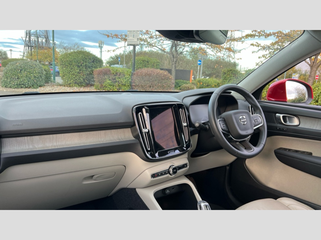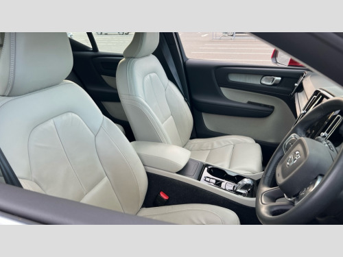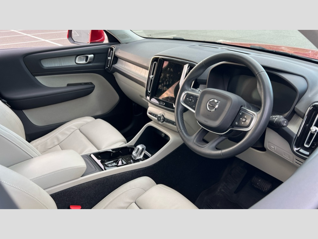 Volvo XC40 1.5 T3 [163] Inscription 5dr Geartronic 12.3" Active TFT crystal driver's instrument display, 9" centre console portrait touch screen, Adjustable steering wheel force, Bluetooth hands free telephone kit, Drive mode selector, E-call, Lane keep assist with driver alert control, Oncoming Lane Mitigation, Power operated tailgate, Sensus navigation with European mapping and traffic information, Speed limiter, Speed sensitive steering, Voice activated control for key functions, Volvo on call, Dynamic chassis, DAB Digital radio, Steering wheel mounted remote controls, Adaptive brake lights with high level LED brake lights, Auto dimming interior mirror, Automatic headlamp levelling, Chrome window surround, Colour coordinated auto folding and heated power door mirrors, Front aluminium tread plates, Front and rear electric windows, High gloss black front grille with chrome inserts, High gloss black sensus surround deco, High Gloss silver front and rear skid plate, Home safe and approach lighting, Integrated roof rails in silver, LED Headlights + Active high beam incorporating daytime running lights, Rain sensor with automatic windscreen wiper activation, Rear side wing doors, Rear wiper, Roof antenna, Roof spoiler, Visible VIN plate, 12V socket in front tunnel console and luggage compartment, 2 zone electronic climate control and rear air vent, 3 seat bench in 2nd row, 3 Spoke tailored steering wheel with chrome trim, 60/40 versatile split folding rear seat, A-pillar parking ticket holder, Bright metal luggage threshold, Centre console cupholders and storage, Floor mats, Front footwell illumination, Front headrests, Front reading light and theatre lighting, Front tunnel net pocket and integrated waste bin, Glovebox bag hook, Height/reach adjustable steering column, Height/tilt adjustable driver's seat, High gloss centre tunnel deco, Illuminated glovebox, Illuminated luggage compartment, Illuminated vanity mirrors, Isofix attachments on outer rear seats, Leather faced upholstery, Load protection net, Multi directional lumbar support, Orrefors Crystal gear lever knob, Power driver seat with memory + exterior mirrors memory, Rear armrest / integral cup holders / storage tray, Rear coat hook, Single front passenger seat, Underfloor cargo storage, Vanity mirror with ticket holder, Park assist pack - XC40, 3x3 point rear seatbelts, City safety includes pedestrian, cyclist and large animal detection and front collision warning with full auto brake, Drivers knee airbag, Dual stage driver/passenger airbags, Electronic parking brake with auto hold, First aid kit, Front and outer rear seatbelt reminder and pretensioners, Front seats SIPS airbags, Hill descent control, Hill start assist, Inflatable curtain, Passenger airbag cut-off device, Road sign information display, Run off Road Mitigation, Run off Road Protection, SIPS (Side Impact Protection System), Slippery road and hazard light alert, Stability and Traction Control with Spin control, Engine Drag Control and Corner Traction Control, Tyre pressure monitoring system, Vehicle deceleration control with Anti-lock Brake System, Electronic Brake Distribution and Emergency Brake Assist, Warning triangle, WHIPS whiplash protection system - front, Anti-theft alarm including immobiliser/volume sensor + level sensor, Care key with user defined top speed, Key integrated remote control central locking + fuel flap with deadlocking system and auto open/close power windows, Locking wheel nuts, Private locking for tailgate, Driftwood inlays