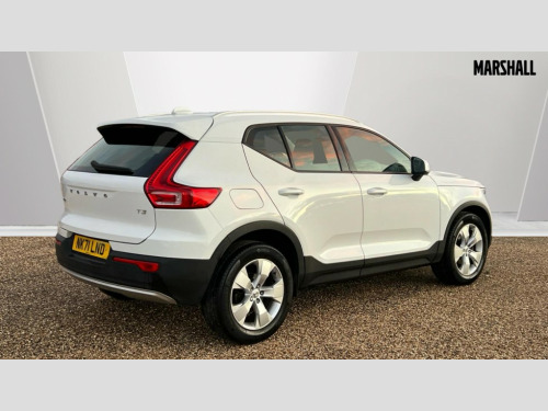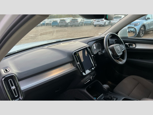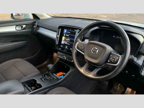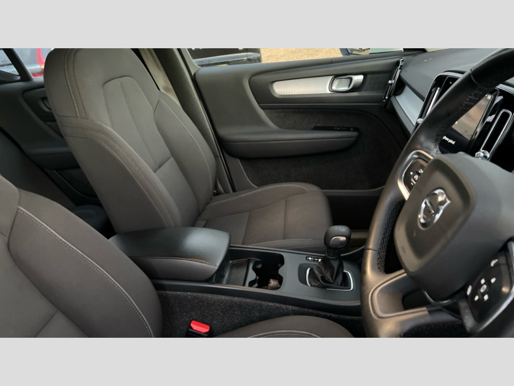 Volvo XC40 1.5 T3 [163] Momentum 5dr 12.3" Active TFT crystal driver's instrument display, 9" centre console portrait touch screen, Adjustable steering wheel force, Bluetooth hands free telephone kit, Drive mode selector, E-call, Lane keep assist with driver alert control, Oncoming Lane Mitigation, Sensus navigation with European mapping and traffic information, Speed limiter, Speed sensitive steering, Voice activated control for key functions, Volvo on call, Dynamic chassis, DAB Digital radio, Steering wheel mounted remote controls, Adaptive brake lights with high level LED brake lights, Auto dimming interior mirror, Automatic headlamp levelling, Colour coordinated auto folding and heated power door mirrors, Dark grey front grille with chrome surround, Front and rear electric windows, High gloss black sensus surround deco, High Gloss silver front and rear skid plate, Home safe and approach lighting, Integrated roof rails in silver, LED Headlights + Active high beam incorporating daytime running lights, Rain sensor with automatic windscreen wiper activation, Rear side wing doors, Rear wiper, Roof antenna, Roof spoiler, Silver roof rails, Visible VIN plate, 12V socket in front tunnel console and luggage compartment, 2 zone electronic climate control and rear air vent, 3 seat bench in 2nd row, 3 Spoke tailored steering wheel with chrome trim, 60/40 versatile split folding rear seat, A-pillar parking ticket holder, Centre console cupholders and storage, Floor mats, Front footwell illumination, Front headrests, Front reading light and theatre lighting, Glovebox bag hook, Height/reach adjustable steering column, Illuminated glovebox, Illuminated luggage compartment, Illuminated vanity mirrors, Isofix attachments on outer rear seats, Load protection net, Rear armrest / integral cup holders / storage tray, Rear coat hook, Single front passenger seat, Tailored gearknob, Underfloor cargo storage, Vanity mirror with ticket holder, 3x3 point rear seatbelts, City safety includes pedestrian, cyclist and large animal detection and front collision warning with full auto brake, Drivers knee airbag, Dual stage driver/passenger airbags, Electronic parking brake with auto hold, First aid kit, Front and outer rear seatbelt reminder and pretensioners, Front seats SIPS airbags, Hill descent control, Hill start assist, Inflatable curtain, Passenger airbag cut-off device, Road sign information display, Run off Road Mitigation, Run off Road Protection, SIPS (Side Impact Protection System), Slippery road and hazard light alert, Stability and Traction Control with Spin control, Engine Drag Control and Corner Traction Control, Tyre pressure monitoring system, Vehicle deceleration control with Anti-lock Brake System, Electronic Brake Distribution and Emergency Brake Assist, Warning triangle, WHIPS whiplash protection system - front, Anti-theft alarm including immobiliser/volume sensor + level sensor, Care key with user defined top speed, Key integrated remote control central locking + fuel flap with deadlocking system and auto open/close power windows, Locking wheel nuts, Private locking for tailgate, Urban grid aluminium inlay