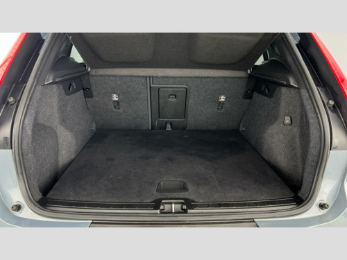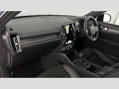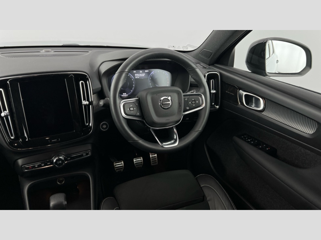 Volvo XC40 1.5 T3 [163] R DESIGN 5dr 12.3" Active TFT crystal driver's instrument display, 9" centre console portrait touch screen, Adjustable steering wheel force, Bluetooth hands free telephone kit, Drive mode selector, E-call, Lane keep assist with driver alert control, Oncoming Lane Mitigation, Power operated tailgate, Sensus navigation with European mapping and traffic information, Speed limiter, Speed sensitive steering, Voice activated control for key functions, Volvo on call, Sports chassis, DAB Digital radio, Steering wheel mounted remote controls, Adaptive brake lights with high level LED brake lights, Auto dimming interior mirror, Automatic headlamp levelling, Dark tinted windows for rear door side windows and cargo compartment, Electric adjustable/heated/auto folding door mirrors, Front aluminium tread plates, Front and rear electric windows, High gloss black front and rear skid plate, High gloss black lower front bumper, High gloss black mesh front grille with high gloss black surround, High gloss black sensus surround deco, High gloss black window trim, Home safe and approach lighting, Integrated roof rails in high gloss black, LED Headlights + Active high beam incorporating daytime running lights, Rain sensor with automatic windscreen wiper activation, Rear side wing doors, Rear wiper, Roof antenna, Roof spoiler, Visible VIN plate, 12V socket in front tunnel console and luggage compartment, 2 zone electronic climate control and rear air vent, 3 seat bench in 2nd row, 60/40 versatile split folding rear seat, A-pillar parking ticket holder, Centre console cupholders and storage, Charcoal headlining, Front footwell illumination, Front headrests, Front reading light and theatre lighting, Front seat cushion extensions, Glovebox bag hook, Height/reach adjustable steering column, Illuminated glovebox, Illuminated luggage compartment, Illuminated vanity mirrors, Isofix attachments on outer rear seats, Leather gearknob, Load protection net, Multi directional lumbar support, Rear armrest / integral cup holders / storage tray, Rear coat hook, Single front passenger seat, Sports floor mats, Sports pedals, Sports tailored steering wheel, Underfloor cargo storage, Vanity mirror with ticket holder, 3x3 point rear seatbelts, City safety includes pedestrian, cyclist and large animal detection and front collision warning with full auto brake, Drivers knee airbag, Dual stage driver/passenger airbags, Electronic parking brake with auto hold, First aid kit, Front and outer rear seatbelt reminder and pretensioners, Front seats SIPS airbags, Hill descent control, Hill start assist, Inflatable curtain, Passenger airbag cut-off device, Road sign information display, Run off Road Mitigation, Run off Road Protection, SIPS (Side Impact Protection System), Slippery road and hazard light alert, Stability and Traction Control with Spin control, Engine Drag Control and Corner Traction Control, Tyre pressure monitoring system, Vehicle deceleration control with Anti-lock Brake System, Electronic Brake Distribution and Emergency Brake Assist, Warning triangle, WHIPS whiplash protection system - front, Anti-theft alarm including immobiliser/volume sensor + level sensor, Care key with user defined top speed, Key integrated remote control central locking + fuel flap with deadlocking system and auto open/close power windows, Locking wheel nuts, Private locking for tailgate, Cutting edge aluminium inlay, Lower dashboard, tunnel console and door panel in charcoal