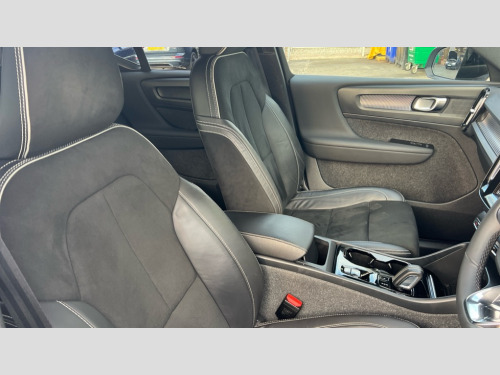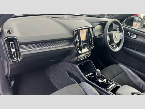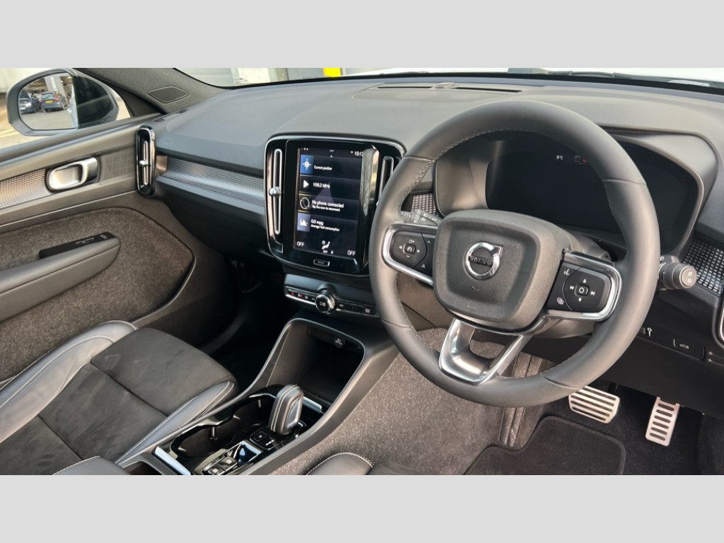 Volvo XC40 1.5 T3 [163] R DESIGN 5dr Geartronic 12.3" Active TFT crystal driver's instrument display, 9" centre console portrait touch screen, Adjustable steering wheel force, Bluetooth hands free telephone kit, Drive mode selector, E-call, Lane keep assist with driver alert control, Oncoming Lane Mitigation, Power operated tailgate, Sensus navigation with European mapping and traffic information, Speed limiter, Speed sensitive steering, Voice activated control for key functions, Volvo on call, Sports chassis, DAB Digital radio, Steering wheel mounted remote controls, Adaptive brake lights with high level LED brake lights, Auto dimming interior mirror, Automatic headlamp levelling, Automatic LED Headlights + Active high beam incorporating daytime running lights, Dark tinted windows for rear door side windows and cargo compartment, Electric adjustable/heated/auto folding door mirrors, Front aluminium tread plates, Front and rear electric windows, High gloss black front and rear skid plate, High gloss black lower front bumper, High gloss black mesh front grille with high gloss black surround, High gloss black sensus surround deco, High gloss black window trim, Home safe and approach lighting, Integrated roof rails in high gloss black, Rain sensor with automatic windscreen wiper activation, Rear side wing doors, Rear wiper, Roof antenna, Roof spoiler, Visible VIN plate, 12V socket in front tunnel console and luggage compartment, 2 zone electronic climate control and rear air vent, 3 seat bench in 2nd row, 60/40 versatile split folding rear seat, A-pillar parking ticket holder, Centre console cupholders and storage, Charcoal headlining, Front footwell illumination, Front headrests, Front reading light and theatre lighting, Front seat cushion extensions, Front tunnel net pocket and integrated waste bin, Glovebox bag hook, Height adjustable passenger seat, Height/reach adjustable steering column, Height/tilt adjustable driver's seat, High gloss centre tunnel deco, Illuminated glovebox, Illuminated luggage compartment, Illuminated vanity mirrors, Isofix attachments on outer rear seats, Leather gearknob, Load protection net, Multi directional lumbar support, Rear armrest / integral cup holders / storage tray, Rear coat hook, Rear headrests, Single front passenger seat, Sports floor mats, Sports pedals, Sports tailored steering wheel, Underfloor cargo storage, Vanity mirror with ticket holder, 3x3 point rear seatbelts, City safety includes pedestrian, cyclist and large animal detection and front collision warning with full auto brake, Drivers knee airbag, Dual stage driver/passenger airbags, Electronic parking brake with auto hold, First aid kit, Front and outer rear seatbelt reminder and pretensioners, Front seats SIPS airbags, Hill descent control, Hill start assist, Inflatable curtain, Passenger airbag cut-off device, Road sign information display, Run off Road Mitigation, Run off Road Protection, SIPS (Side Impact Protection System), Slippery road and hazard light alert, Stability and Traction Control with Spin control, Engine Drag Control and Corner Traction Control, Tyre pressure monitoring system, Vehicle deceleration control with Anti-lock Brake System, Electronic Brake Distribution and Emergency Brake Assist, Warning triangle, WHIPS whiplash protection system - front, Anti-theft alarm including immobiliser/volume sensor + level sensor, Care key with user defined top speed, Key integrated remote control central locking + fuel flap with deadlocking system and auto open/close power windows, Locking wheel nuts, Private locking for tailgate, Cutting edge aluminium inlay, Lower dashboard, tunnel console and door panel in charcoal