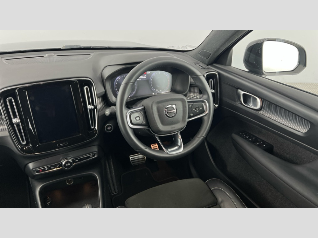 Volvo XC40 1.5 T3 [163] R DESIGN 5dr Geartronic 12.3" Active TFT crystal driver's instrument display, 9" centre console portrait touch screen, Adjustable steering wheel force, Bluetooth hands free telephone kit, Drive mode selector, E-call, Lane keep assist with driver alert control, Oncoming Lane Mitigation, Power operated tailgate, Sensus navigation with European mapping and traffic information, Speed limiter, Speed sensitive steering, Voice activated control for key functions, Volvo on call, Sports chassis, DAB Digital radio, Steering wheel mounted remote controls, Adaptive brake lights with high level LED brake lights, Auto dimming interior mirror, Automatic headlamp levelling, Automatic LED Headlights + Active high beam incorporating daytime running lights, Dark tinted windows for rear door side windows and cargo compartment, Electric adjustable/heated/auto folding door mirrors, Front aluminium tread plates, Front and rear electric windows, High gloss black front and rear skid plate, High gloss black lower front bumper, High gloss black mesh front grille with high gloss black surround, High gloss black sensus surround deco, High gloss black window trim, Home safe and approach lighting, Integrated roof rails in high gloss black, Rain sensor with automatic windscreen wiper activation, Rear side wing doors, Rear wiper, Roof antenna, Roof spoiler, Visible VIN plate, 12V socket in front tunnel console and luggage compartment, 2 zone electronic climate control and rear air vent, 3 seat bench in 2nd row, 60/40 versatile split folding rear seat, A-pillar parking ticket holder, Centre console cupholders and storage, Charcoal headlining, Front footwell illumination, Front headrests, Front reading light and theatre lighting, Front seat cushion extensions, Front tunnel net pocket and integrated waste bin, Glovebox bag hook, Height adjustable passenger seat, Height/reach adjustable steering column, Height/tilt adjustable driver's seat, High gloss centre tunnel deco, Illuminated glovebox, Illuminated luggage compartment, Illuminated vanity mirrors, Isofix attachments on outer rear seats, Leather gearknob, Load protection net, Multi directional lumbar support, Rear armrest / integral cup holders / storage tray, Rear coat hook, Rear headrests, Single front passenger seat, Sports floor mats, Sports pedals, Sports tailored steering wheel, Underfloor cargo storage, Vanity mirror with ticket holder, 3x3 point rear seatbelts, City safety includes pedestrian, cyclist and large animal detection and front collision warning with full auto brake, Drivers knee airbag, Dual stage driver/passenger airbags, Electronic parking brake with auto hold, First aid kit, Front and outer rear seatbelt reminder and pretensioners, Front seats SIPS airbags, Hill descent control, Hill start assist, Inflatable curtain, Passenger airbag cut-off device, Road sign information display, Run off Road Mitigation, Run off Road Protection, SIPS (Side Impact Protection System), Slippery road and hazard light alert, Stability and Traction Control with Spin control, Engine Drag Control and Corner Traction Control, Tyre pressure monitoring system, Vehicle deceleration control with Anti-lock Brake System, Electronic Brake Distribution and Emergency Brake Assist, Warning triangle, WHIPS whiplash protection system - front, Anti-theft alarm including immobiliser/volume sensor + level sensor, Care key with user defined top speed, Key integrated remote control central locking + fuel flap with deadlocking system and auto open/close power windows, Locking wheel nuts, Private locking for tailgate, Cutting edge aluminium inlay, Lower dashboard, tunnel console and door panel in charcoal