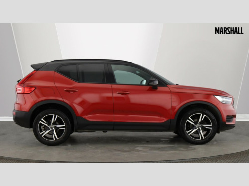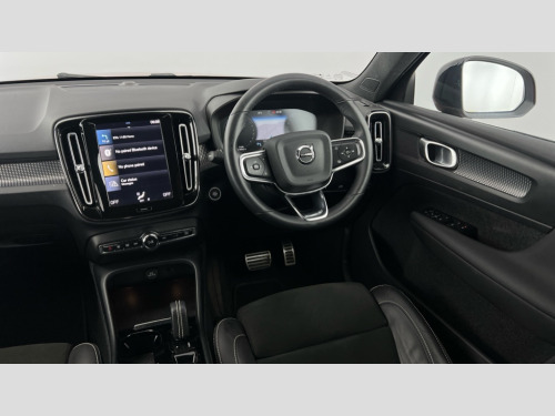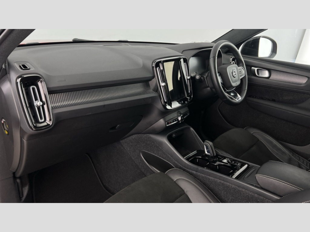 Volvo XC40 1.5 T3 [163] R DESIGN 5dr Geartronic 12.3" Active TFT crystal driver's instrument display, 9" centre console portrait touch screen, Adjustable steering wheel force, Bluetooth hands free telephone kit, Drive mode selector, E-call, Lane keep assist with driver alert control, Oncoming Lane Mitigation, Power operated tailgate, Sensus navigation with European mapping and traffic information, Speed limiter, Speed sensitive steering, Voice activated control for key functions, Volvo on call, Sports chassis, DAB Digital radio, Steering wheel mounted remote controls, Adaptive brake lights with high level LED brake lights, Auto dimming interior mirror, Automatic headlamp levelling, Automatic LED Headlights + Active high beam incorporating daytime running lights, Dark tinted windows for rear door side windows and cargo compartment, Electric adjustable/heated/auto folding door mirrors, Front aluminium tread plates, Front and rear electric windows, High gloss black front and rear skid plate, High gloss black lower front bumper, High gloss black mesh front grille with high gloss black surround, High gloss black sensus surround deco, High gloss black window trim, Home safe and approach lighting, Integrated roof rails in high gloss black, Rain sensor with automatic windscreen wiper activation, Rear side wing doors, Rear wiper, Roof antenna, Roof spoiler, Visible VIN plate, 12V socket in front tunnel console and luggage compartment, 2 zone electronic climate control and rear air vent, 3 seat bench in 2nd row, 60/40 versatile split folding rear seat, A-pillar parking ticket holder, Centre console cupholders and storage, Charcoal headlining, Front footwell illumination, Front headrests, Front reading light and theatre lighting, Front seat cushion extensions, Front tunnel net pocket and integrated waste bin, Glovebox bag hook, Height adjustable passenger seat, Height/reach adjustable steering column, Height/tilt adjustable driver's seat, High gloss centre tunnel deco, Illuminated glovebox, Illuminated luggage compartment, Illuminated vanity mirrors, Isofix attachments on outer rear seats, Leather gearknob, Load protection net, Multi directional lumbar support, Rear armrest / integral cup holders / storage tray, Rear coat hook, Rear headrests, Single front passenger seat, Sports floor mats, Sports pedals, Sports tailored steering wheel, Underfloor cargo storage, Vanity mirror with ticket holder, 3x3 point rear seatbelts, City safety includes pedestrian, cyclist and large animal detection and front collision warning with full auto brake, Drivers knee airbag, Dual stage driver/passenger airbags, Electronic parking brake with auto hold, First aid kit, Front and outer rear seatbelt reminder and pretensioners, Front seats SIPS airbags, Hill descent control, Hill start assist, Inflatable curtain, Passenger airbag cut-off device, Road sign information display, Run off Road Mitigation, Run off Road Protection, SIPS (Side Impact Protection System), Slippery road and hazard light alert, Stability and Traction Control with Spin control, Engine Drag Control and Corner Traction Control, Tyre pressure monitoring system, Vehicle deceleration control with Anti-lock Brake System, Electronic Brake Distribution and Emergency Brake Assist, Warning triangle, WHIPS whiplash protection system - front, Anti-theft alarm including immobiliser/volume sensor + level sensor, Care key with user defined top speed, Key integrated remote control central locking + fuel flap with deadlocking system and auto open/close power windows, Locking wheel nuts, Private locking for tailgate, Cutting edge aluminium inlay, Lower dashboard, tunnel console and door panel in charcoal